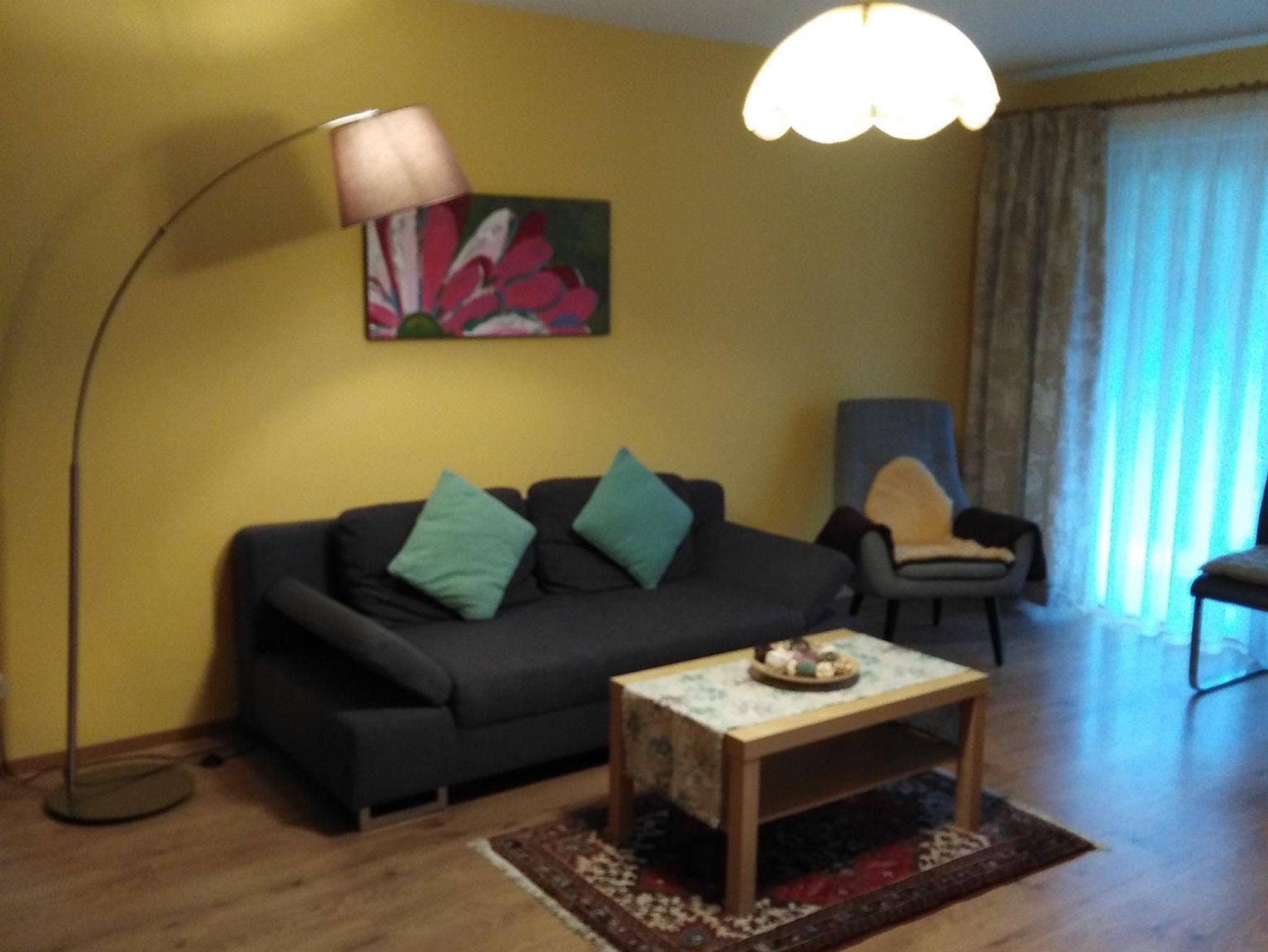 Die Ferienwohnung bietet nicht nur viel Raum auf Wohnfläche ca. 71qm, sondern punktet auch mit einer liebevoll eingerichteten Ausstattung. Sie hat Platz für 2 Gäste und verfügt über eine Küche, ein Schlafzimmer, ein Badezimmer sowie ein Wohnzimmer. Das Schlafzimmer hat ein Doppelbett, die Matratzen sind getrennt, die Fußenden des Bettes sind offen. Des Weiteren ist im Schlafzimmer ein Schrank und ein Schreibtisch. Über das Fenster haben Sie Zugang zum Südbalkon. Den Balkon erreichen Sie auch über das Wohnzimmer. Das Wohnzimmer ist ausgestattet mit einer Couch, einem Fernseher sowie einem Esstisch sowie einem Wohnzimmerschrank. Die Küche ist voll ausgestattet und verfügt über einen 4-Platten Herd mit Backofen, Geschirrspüler, Mikrowelle, Kühlschrank mit Gefrierfach. Außerdem gibt es in der Küche einen Wasserkocher, Kaffeekocher, Toaster. Das neu renovierte Badezimmer verfügt über eine Badewanne mit integrierter Dusche, Waschbecken, WC und Fußbodenheizung. Auch ein Fenster ist im Badezimmer. Wlan ist in der Wohnung nicht verfügbar. Ein Autostellplatz vor der Wohnung steht kostenfrei zur Verfügung.