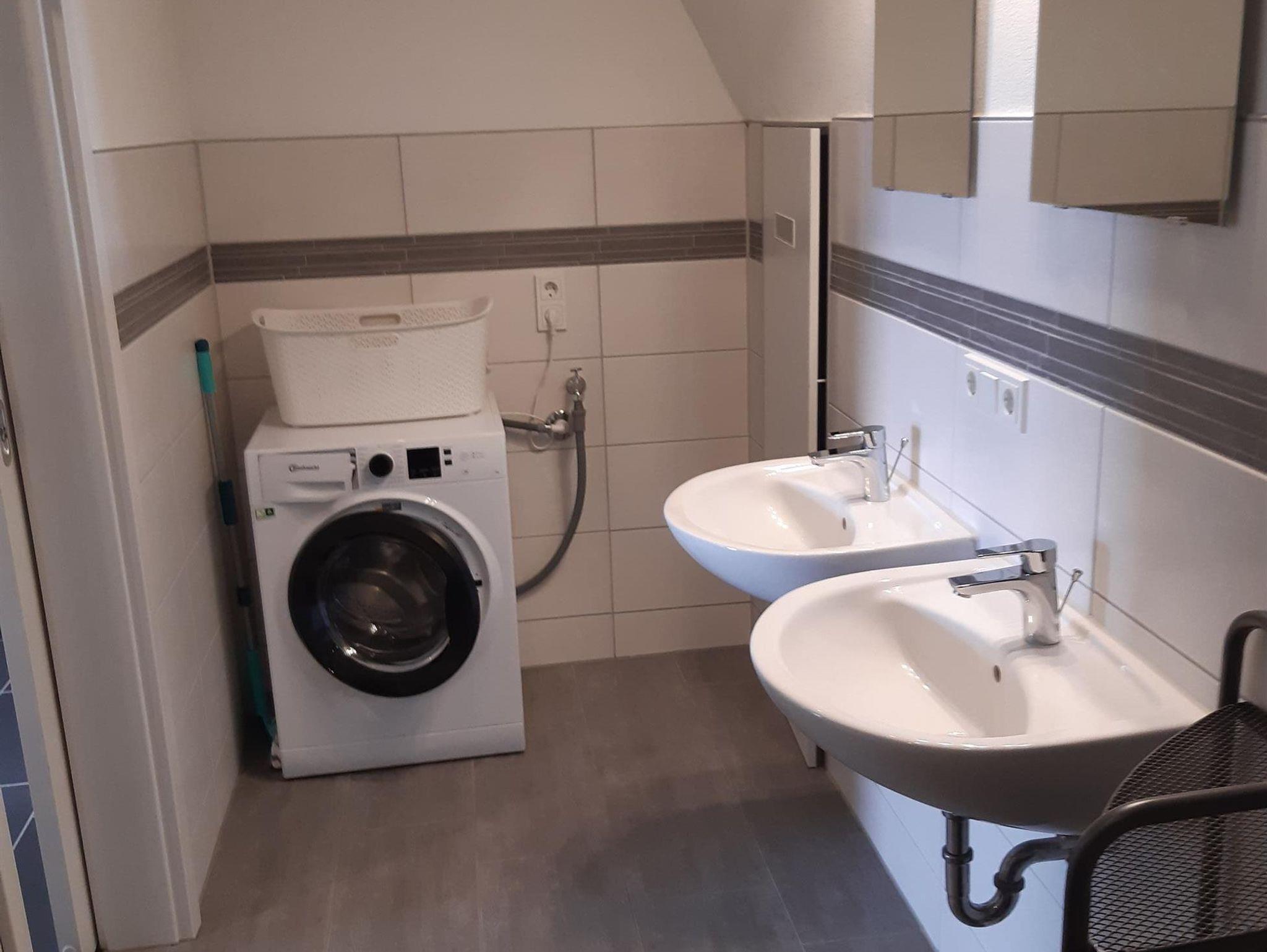 Die Bäder sind sehr weiträumig und die große Dusche ist frei begehbar. Die voll ausgestattete Küche ist offen und mit dem Wohnraum verbunden. Die Wohnräume sind aufgrund der großen Fenster lichtdurchflutet, es handelt sich um ein Niedrigenergie-Haus mit 3-fach Verglasung und Fußbodenheizung, das Panoramafenster im Wohnbereich hat eine 2 Meter breite Schiebetür, welche Zugang zur großen Terrasse ist.