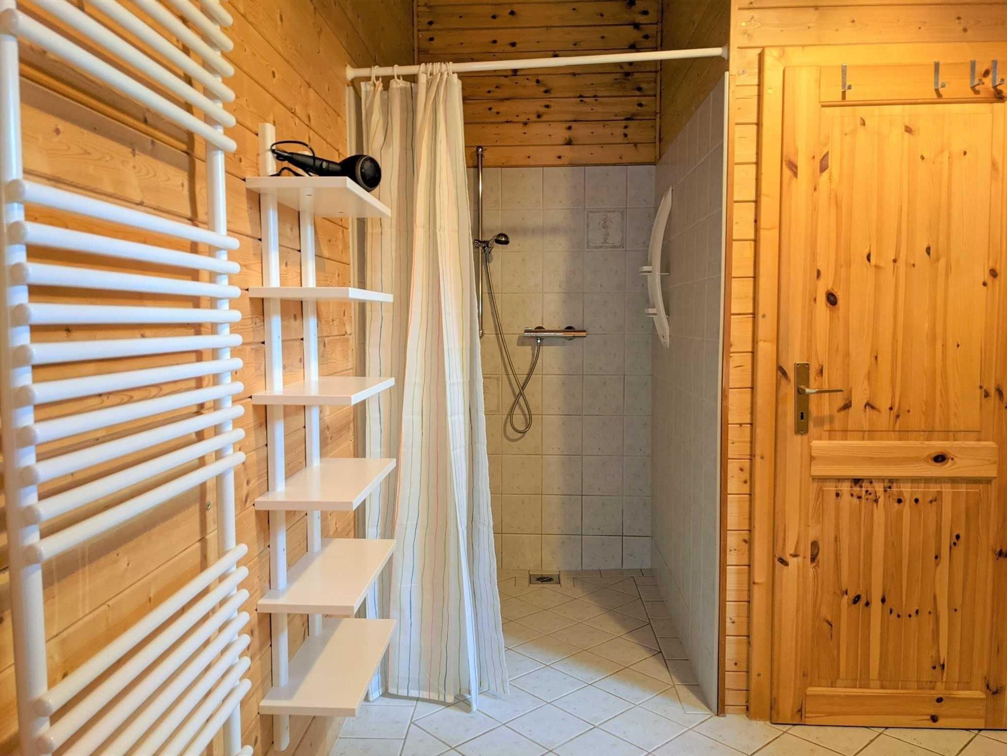 Das Holzhaus ist folgendermaßen ausgestattet: Komplett ausgestattete offene Küche (u. a. mit Induktionsherd und Backofen, Geschirrspüler, Kühlschrank, Kaffeemaschine, Wasserkocher, Toaster, Mikrowelle), gemütliche Essecke, Sofaecke mit Fernseher und Bücherregal, Schlafzimmer mit Doppelbett (1,80m x 2,00m), Schlafempore mit Doppelbett (1,60m x 2,00m) über eine Raumspartreppe erreichbar, großzügiges Bad mit ebenerdiger Dusche, Terrasse mit Sitzgelegenheit, großer Garten mit Sitzecke und Holzkohlegrill und Parkplatz auf dem eingezäunten Grundstück. Haustiere sind im Bungalow nicht erlaubt. Das Wäschepaket (Bettwäsche und Handtücher) kann für 25,00 EUR pro Person hinzugebucht werden.