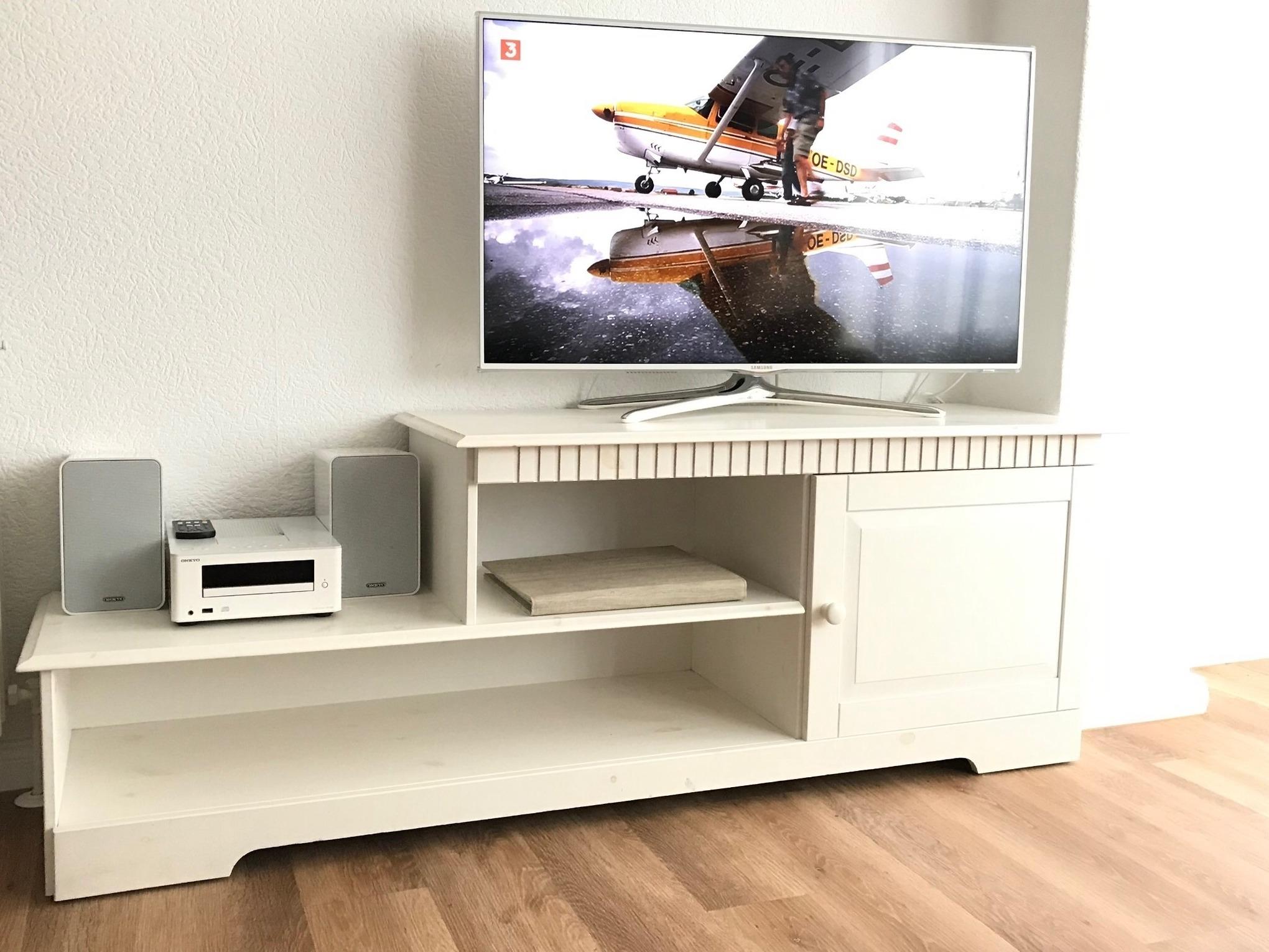 Der Wohnraum mit integrierter Küchenzeile und Essecke ist ein Ort für Gemütlichkeit und gesellige Stunden. Genießen Sie in dem lichtdurchfluteten Erker den Blick in den Garten und den angrenzenden Kurpark vom Frühstückstisch aus. Die maritim gestaltete Sitzecke mit Eckcouch, Sessel und 40'' (102 cm) Flachbildschirm lädt zum Faulenzen ein, während in der Küche, die durch einen Tresen vom Wohnraum getrennt ist, das Abendessen zubereitet wird. NEU ! Eine nagelneue Einbauküche mit Geschirrspüler etc. - gleicher Preis :)