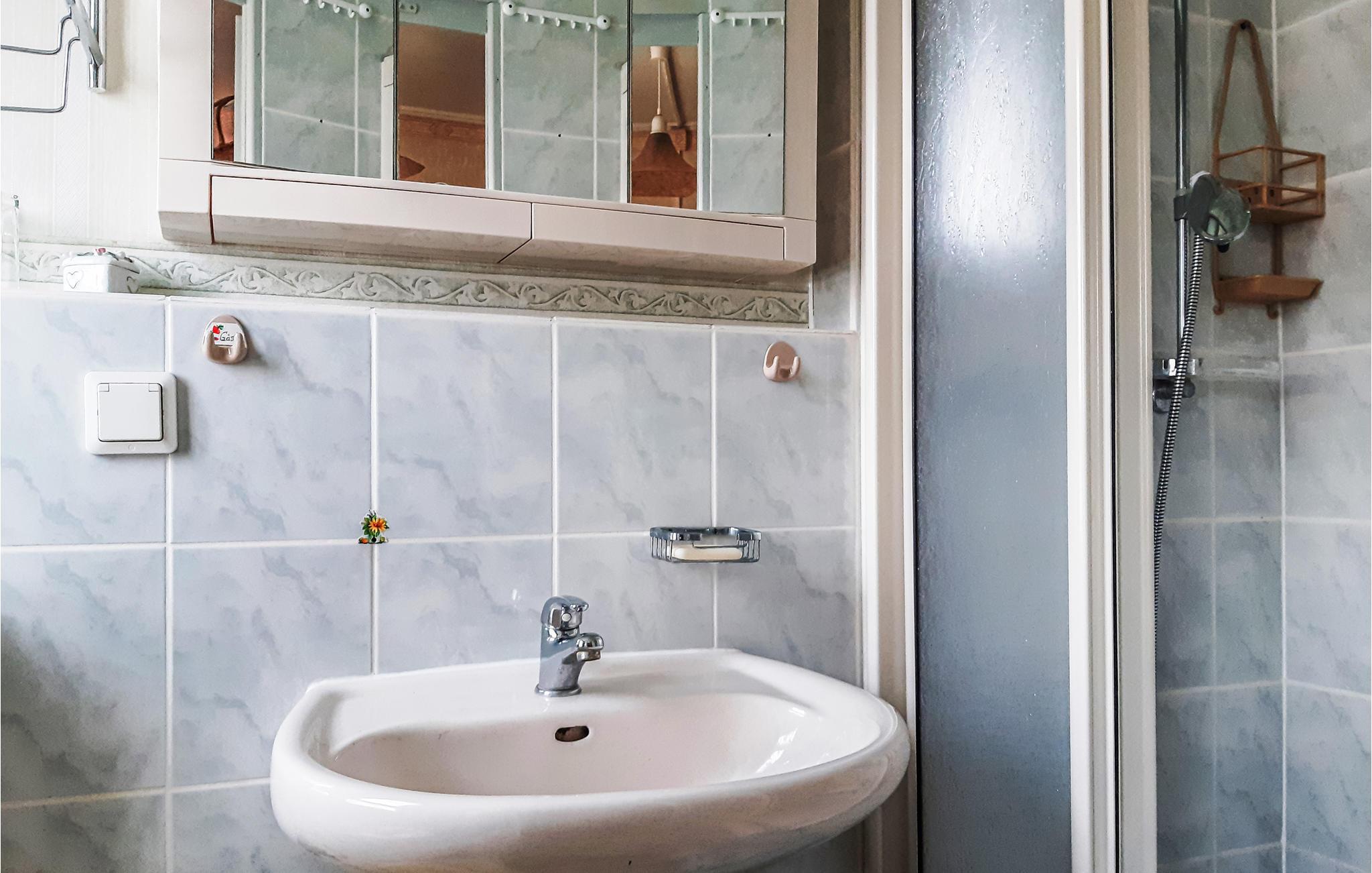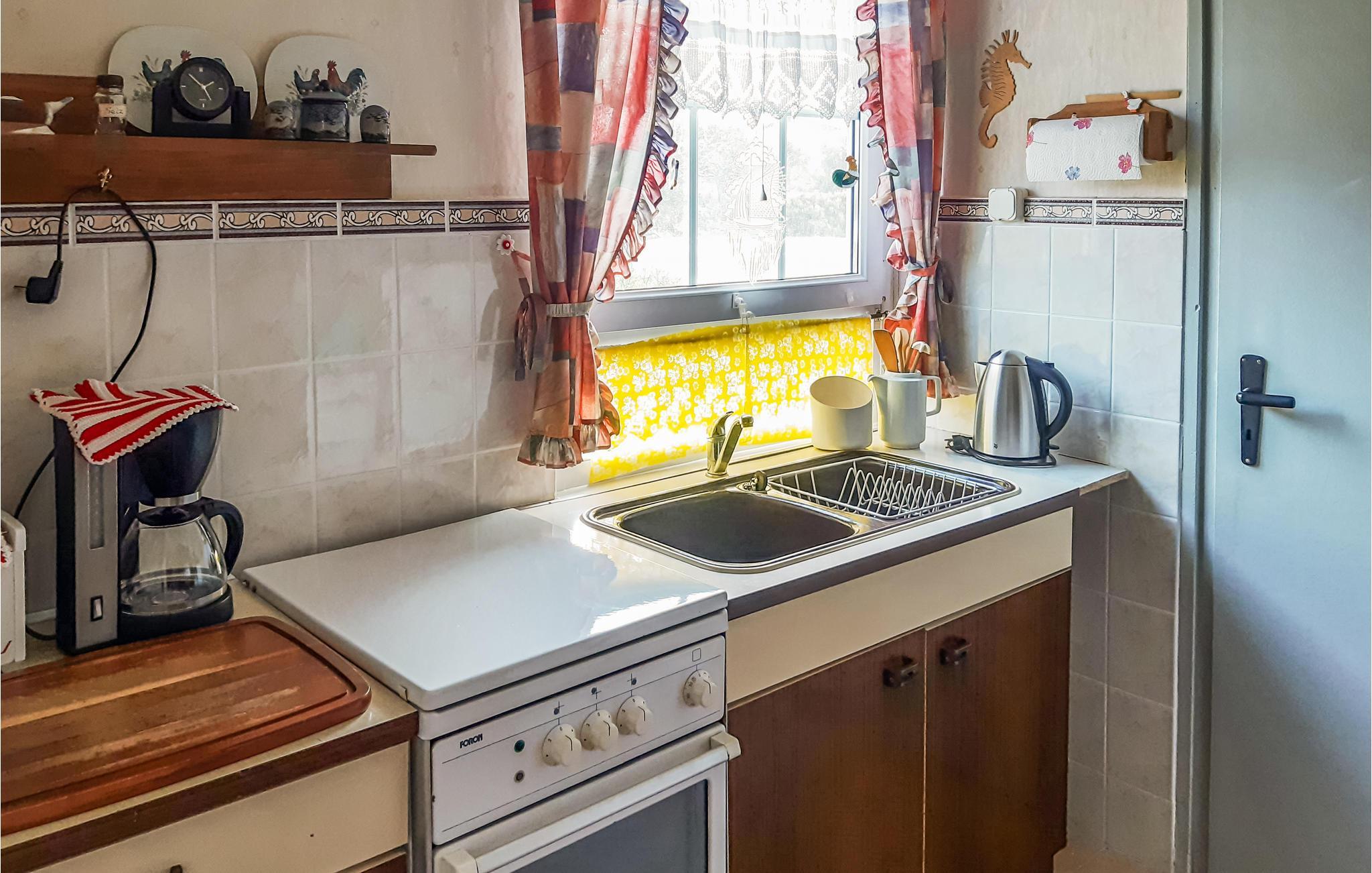Verbringen Sie eine ruhige Auszeit in diesem schlichten, aber gemütlichen Ferienhaus in einer kleinen Anlage. Es eignet sich ideal für Paare oder kleine Familien, die Erholung in natürlicher Umgebung suchen. Machen Sie es sich im Wohnbereich mit seinem maritimen Flair und liebevoll dekorierten Details bequem. Nutzen Sie das Sofa für entspannte Stunden oder ziehen Sie sich mit einem Buch zurück. Die Essecke am Fenster bietet sich für gemeinsame Mahlzeiten oder Spieleabende an.