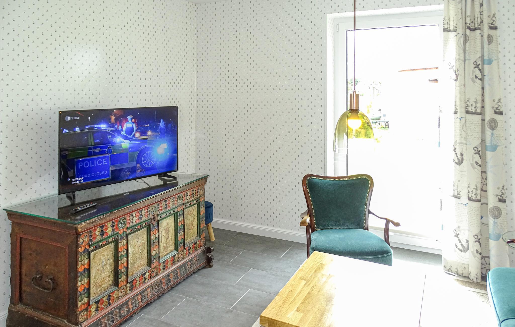 Es gibt drei separate Schlafzimmer mit Doppelbett bzw. zwei Einzelbetten. Das liebevoll eingerichtete Wohnzimmer geht in die offene Küche mit Essbereich über. Vom Wohnbereich kommen Sie auf die großzügige Terrasse mit hochwertigen Gartenmöbeln und Strandkorb. Genießen Sie Ihren ersten Kaffee am Morgen im windgeschützten Strandkorb.