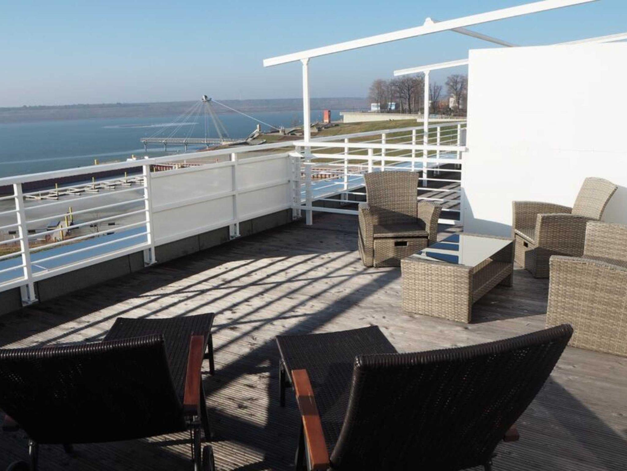 Die neugebaute Ferienwohnung liegt im 2. OG eines Wohnhauses mit Hafenblick. Die Wohnung selbst hat eine Fläche von 65 qm mit einem voll ausgestatteten Wohnbereich inklusive Sat- TV und Soundanlage, Essecke und angrenzendem Balkon. Des weiteren gibt es ein Schlafzimmer mit Doppelbett und Wandschrank ? TV sowie ein modern, gestaltetes Bad mit Wanne und Dusche. Über die Treppe im Flur gelangen Sie in die offene Galerie, von der aus 2 Dachterrassen, als Outdoorbereiche mit Loungemöbeln auf den Gast warten. In der offenen Galerie steht ein Schlafsofa (Liegefläche 2m x 1,30m). Alle Räume verfügen über Fußbodenheizung und Parkett bzw. Fliesen. Die moderne, voll ausgestattete Küche mit Induktionskochfeld, Backofen, Geschirrspüler, Mikrowelle und Kaffeemaschine, lässt keine Wünsche offen. Ein Stellplatz am Haus steht Ihnen zur Verfügung.