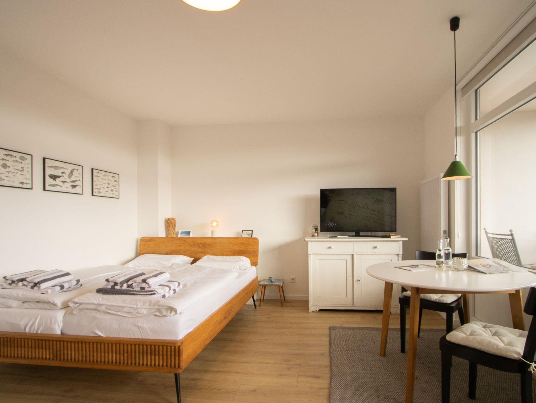Mit viel Liebe wurde diese Ferienwohnung gerade neu renoviert und ist für 2 Personen sehr gut geeignet. Die neue Küchenzeile wurde modern gehalten und ist mit sehr viel Liebe zum Detail ausgestattet. Im Wohnbereich kann gemütlich Abends von der bequemen Couch gechillt werden. Vom großzügigen Wohn-/Schlafraum gelangen Sie auf den geräumigen Balkon, von dem Sie gen Osten den Sonnenaufgang genießen können. Der Strand, Hafen und auch die Einkaufsmöglichkeiten sind gut zu Fuß in wenigen Minuten zu erreichen.