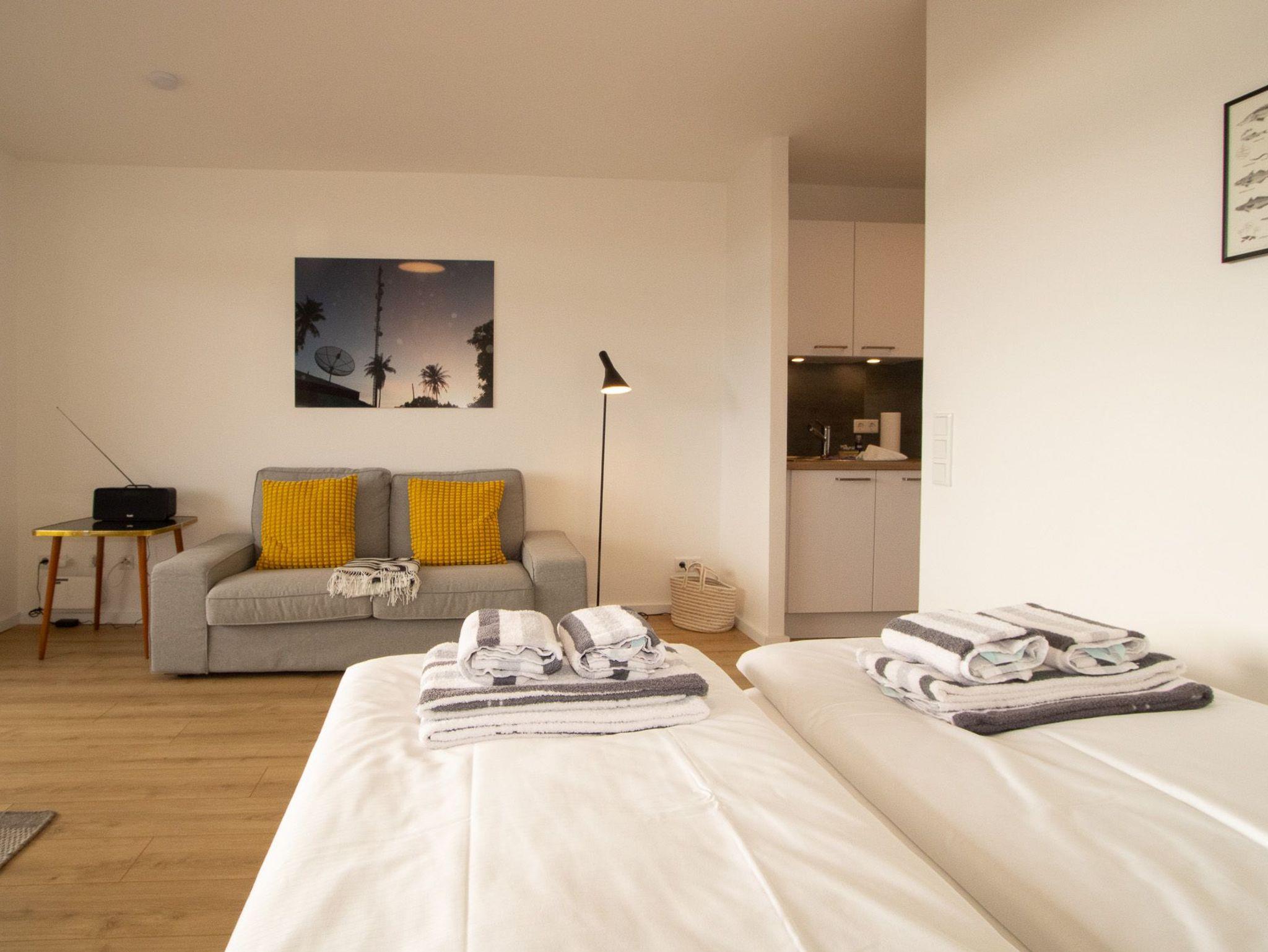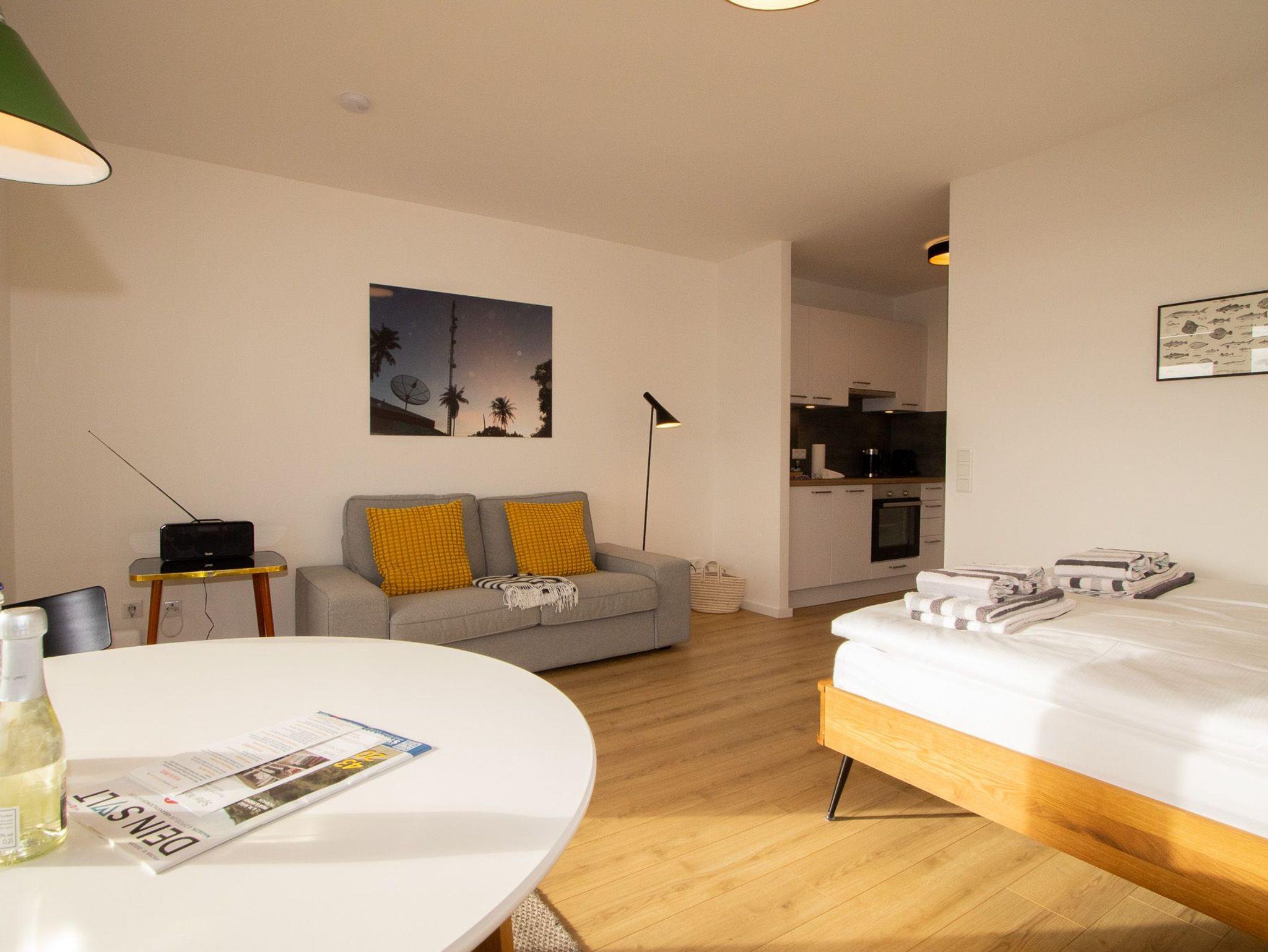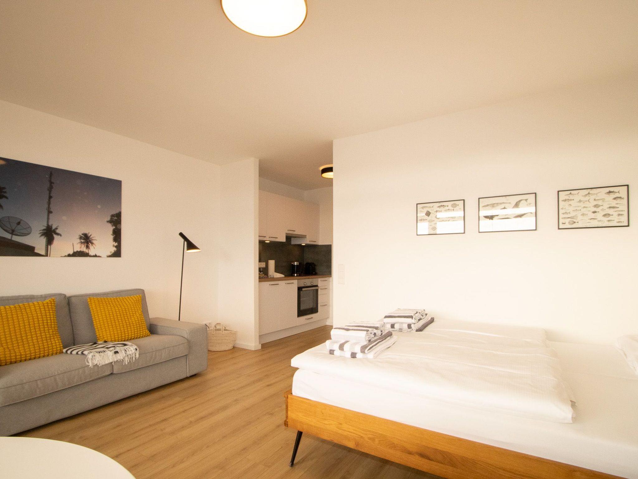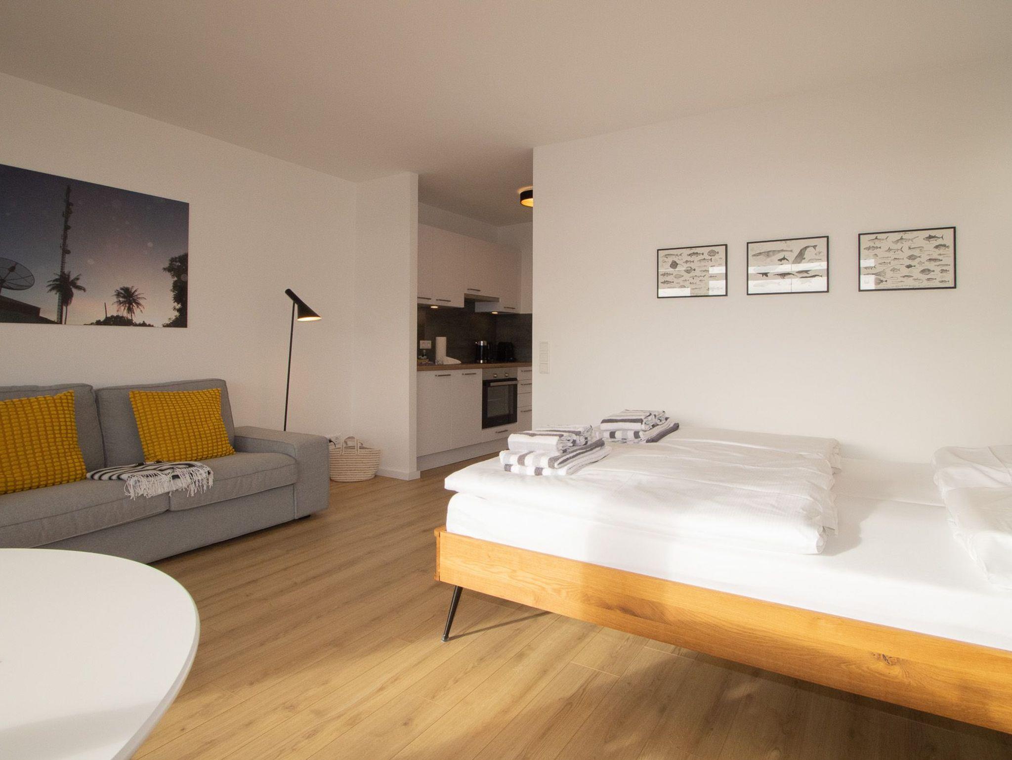Die neue Küchenzeile wurde modern gehalten und ist mit sehr viel Liebe zum Detail ausgestattet. Im Wohnbereich kann gemütlich Abends von der bequemen Couch gechillt werden. Vom großzügigen Wohn-/Schlafraum gelangen Sie auf den geräumigen Balkon, von dem Sie gen Osten den Sonnenaufgang genießen können. Der Strand, Hafen und auch die Einkaufsmöglichkeiten sind gut zu Fuß in wenigen Minuten zu erreichen.