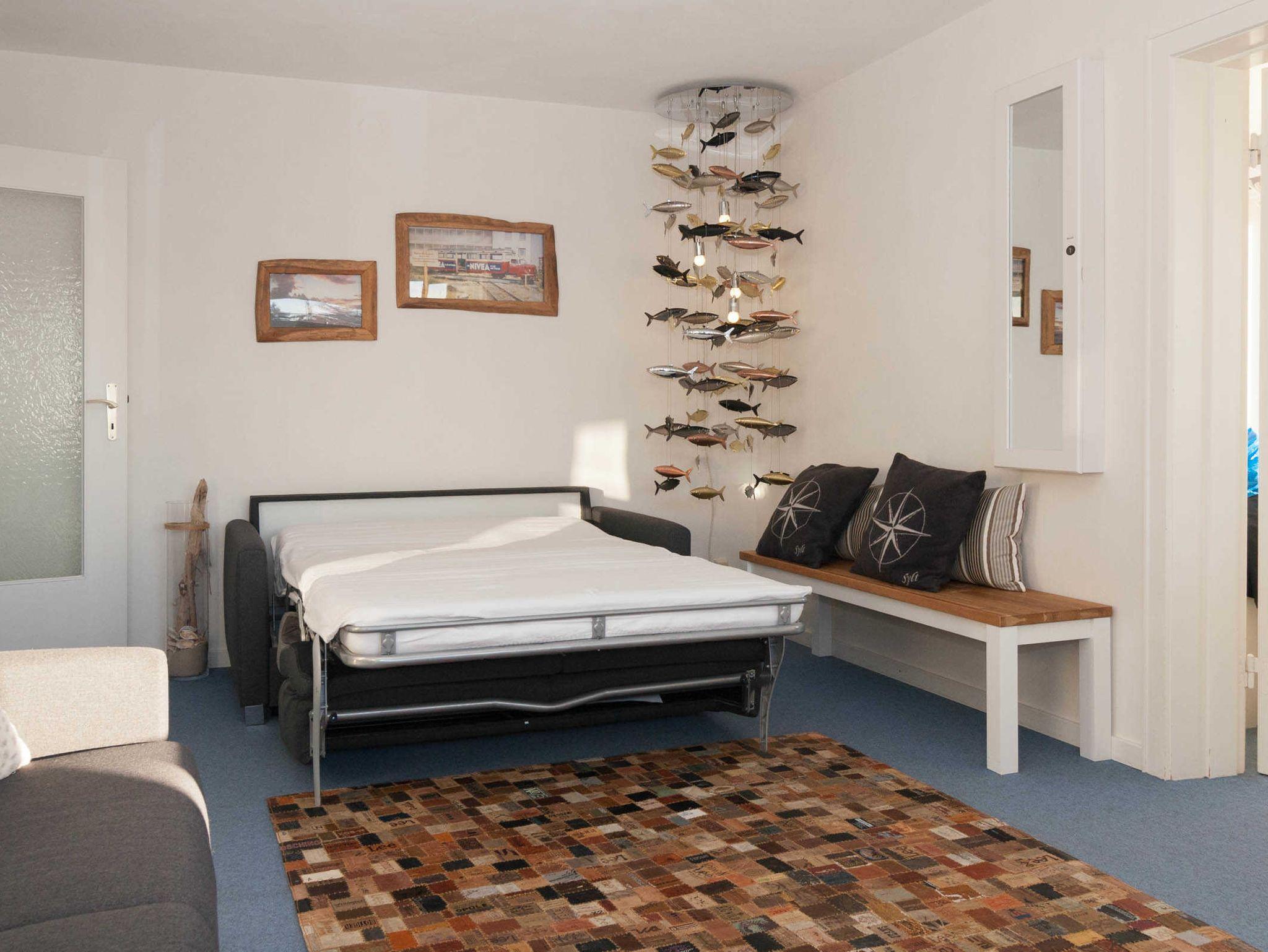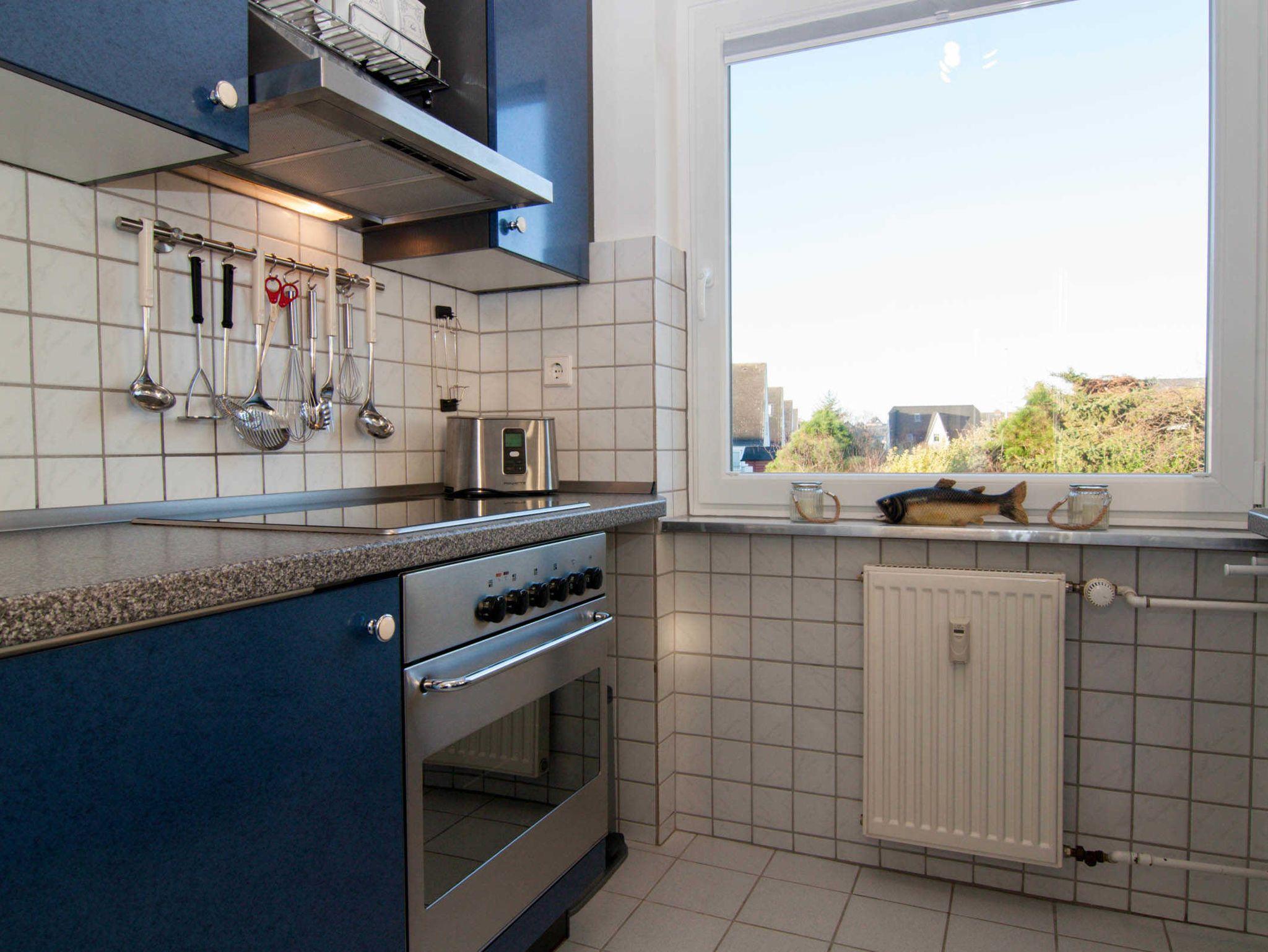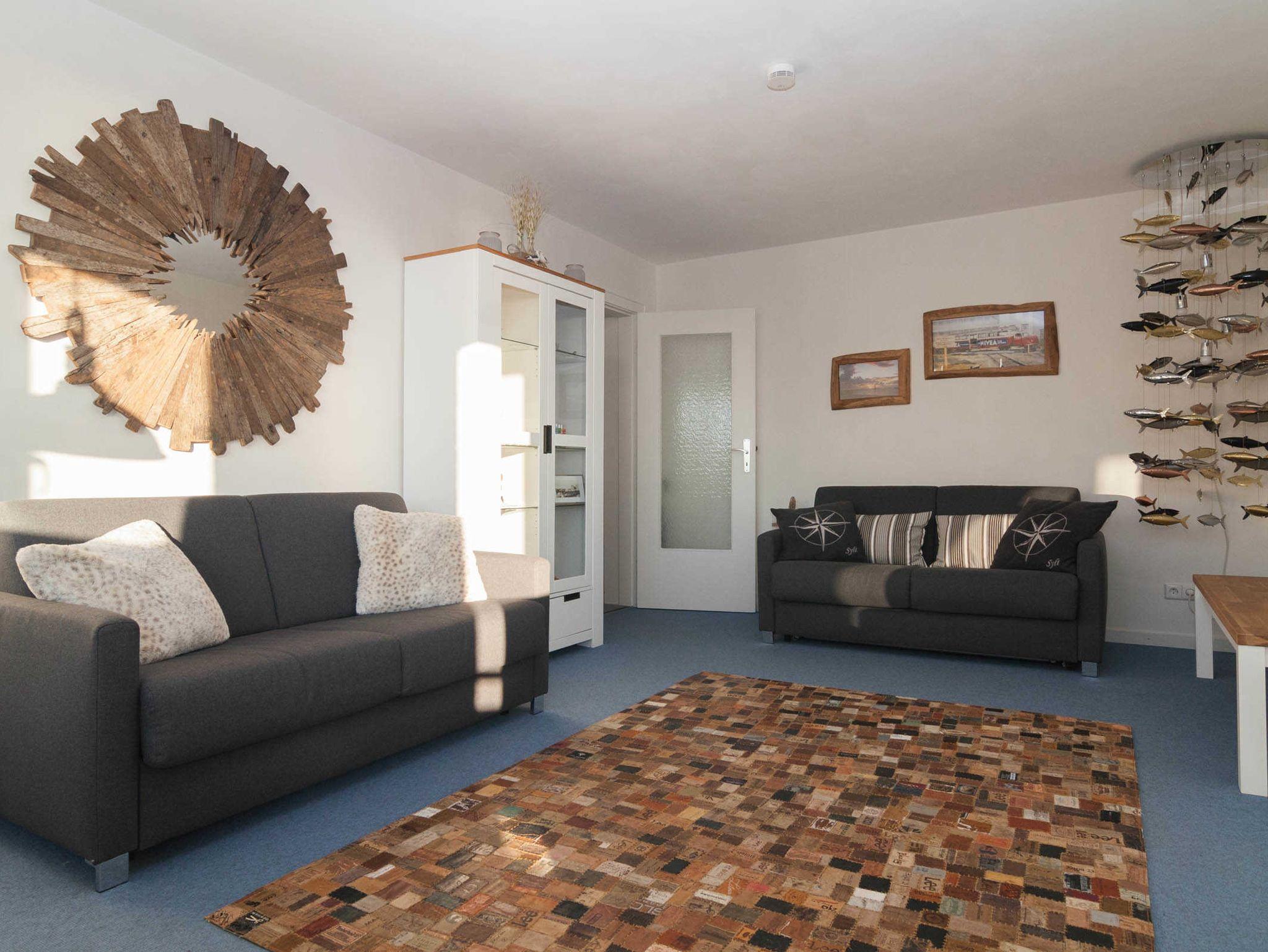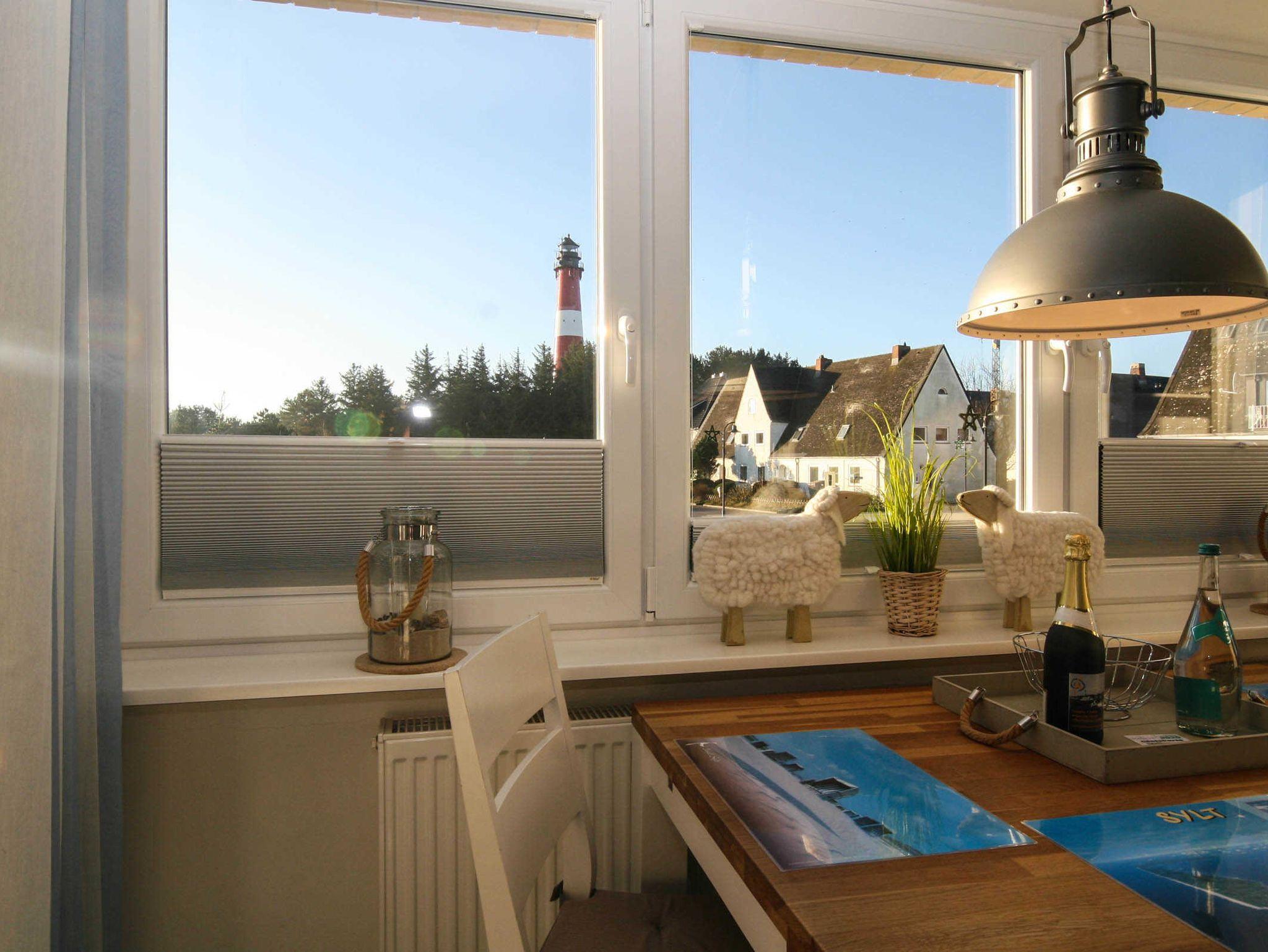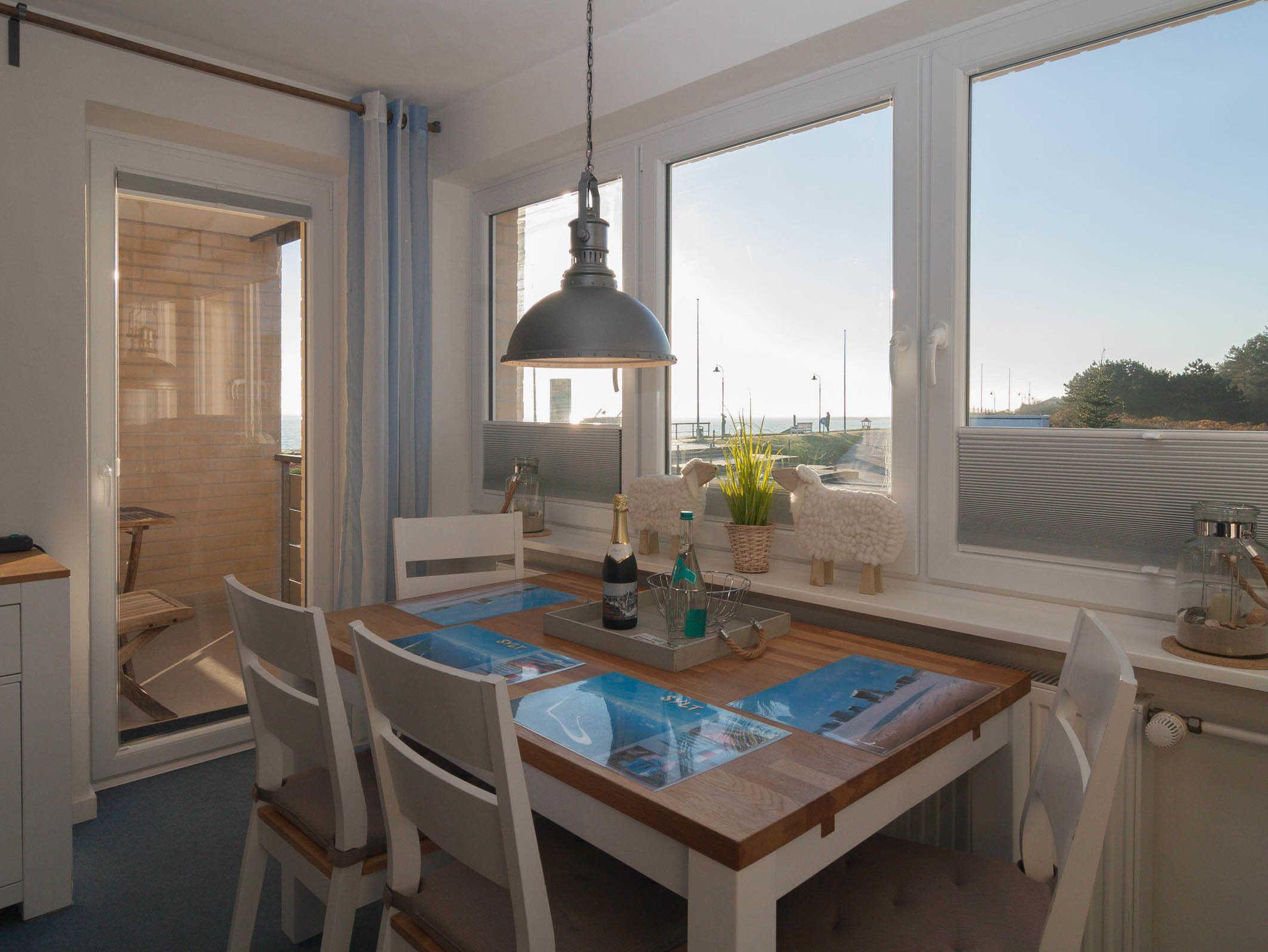 Diese Ferienwohnung mit Meerblick und Balkon ist für 4 Personen ausgestattet. Sie verfügt im Wohnbereich über 1 Schlafsofa was sich leicht ausklappen lässt. Das Schlafzimmer befindet sich mit dem Blick zum Oststrand im Nachbarzimmer. Vom Wohnzimmer / Esszimmer aus haben Sie einen fantastischen Blick auf die Ostseite, Südspitze und den Leuchtturm von Hörnum. Zur Wohnung gehört ein Duschbad und eine sep. kleine Küche, die mit allem ausgestattet ist, was man im Urlaub braucht.