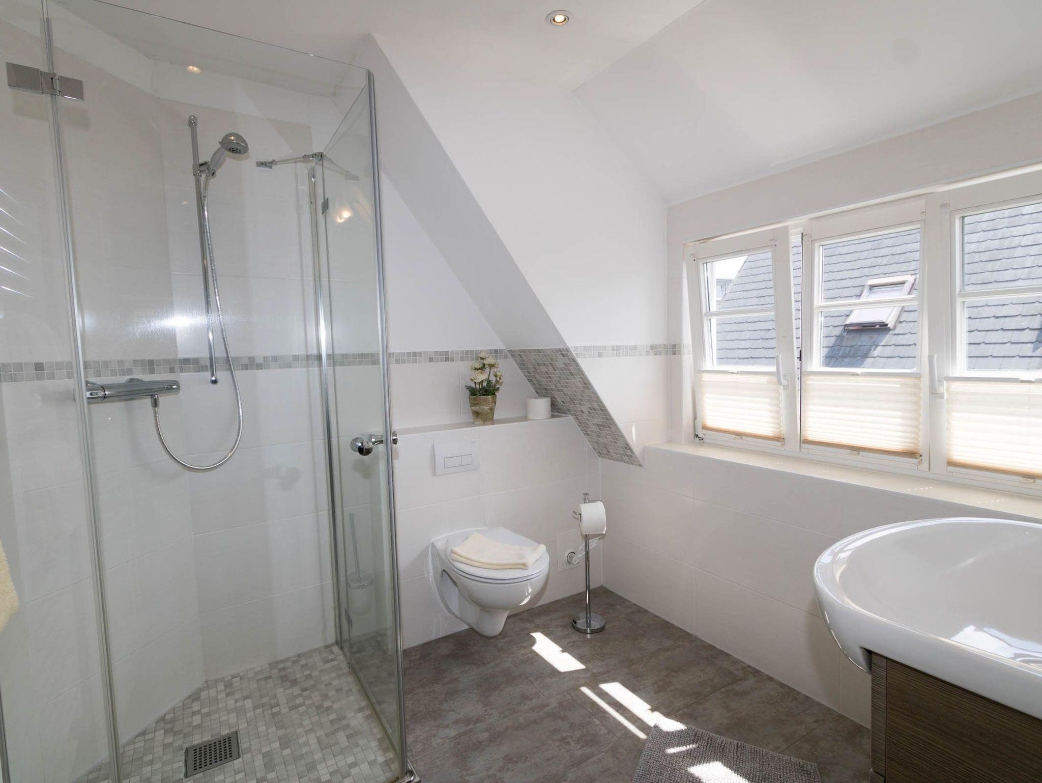 Ein besonderes Highlight ist das geschmackvolle Badezimmer mit einer begehbaren, bodengleichen Dusche, die ein modernes Ambiente verspricht. Hier können Sie nach einem erlebnisreichen Tag auf Sylt erfrischende Duschen genießen. Die Wohnung ist allergikergeeignet und bietet liebevoll durchdachte Details, um Ihren Aufenthalt so angenehm wie möglich zu gestalten.