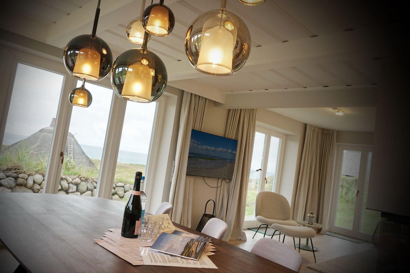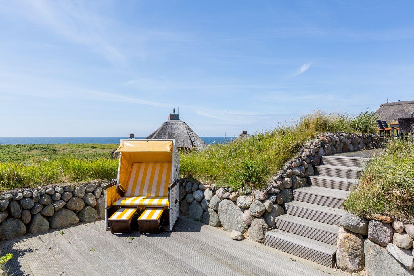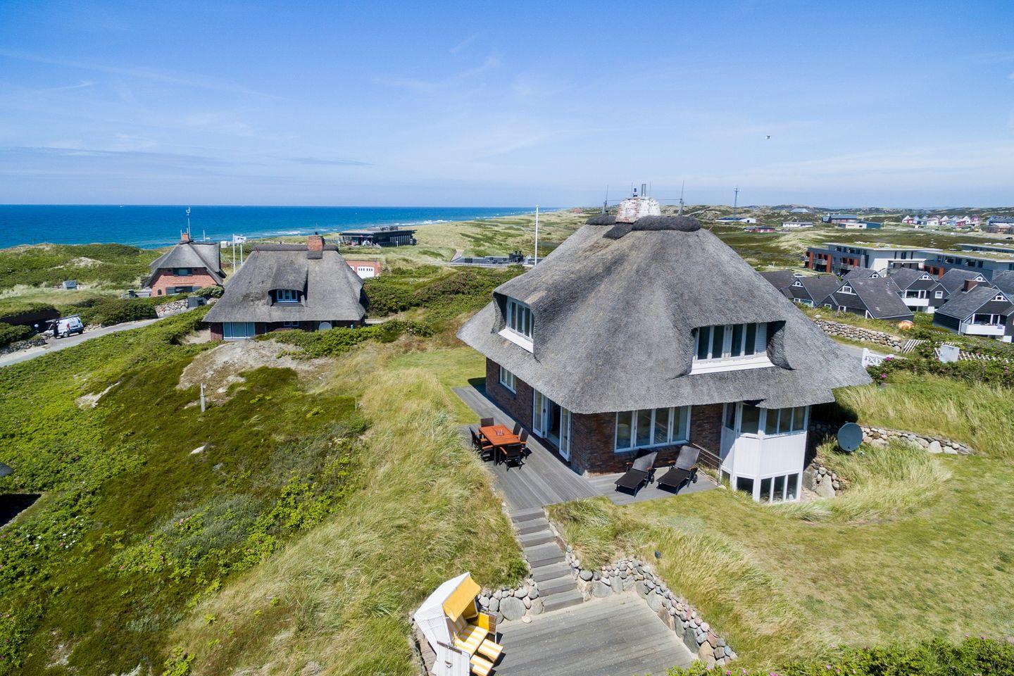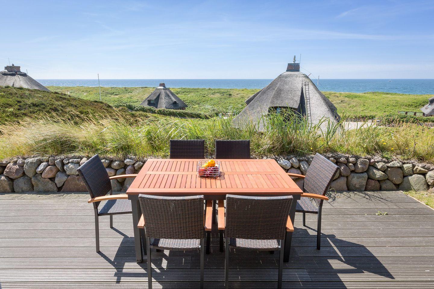 Erleben Sie im Smuk Hus in Hörnum ein charmantes Reetdachhaus mit Meerblick, Kamin und großzügiger Terrasse nur 160 m vom Strand entfernt.