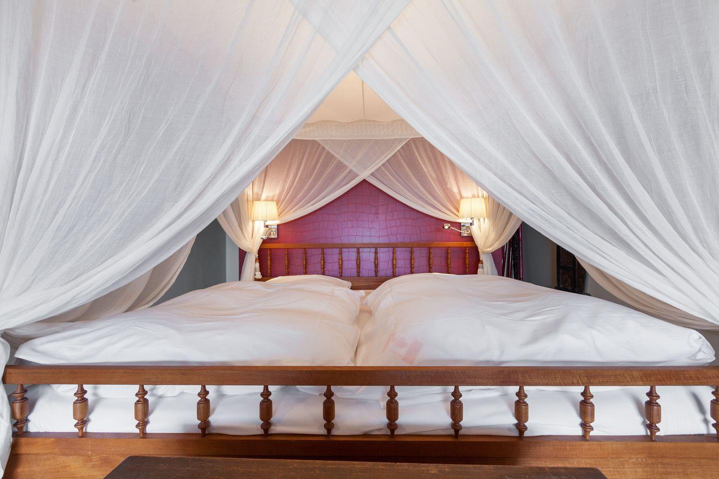 Sofern das Feinperlige geleert sein sollte und der letzte Schweinswal von dannen zog, haben Sie sich Ihre Nachtruhe wohlverdient. Hier im Obergeschoss können Sie gleich aus zwei superben Master-Bedrooms mit jeweils imposanter Deckenhöhe wählen, die ein einzigartig luftiges Raum- und Wohlfühlgefühl erzeugen. Ihr Schlafbereich zum Nord-Westen ausgerichtet bietet vollen Meerblick und ist geschmackvoll mit wertigen Antiquitäten ausgestattet. Zwei begehbare Kleiderschränke finden Sie von kundiger Tischlerhand hinter Ihrem Doppelbett eingebaut. Ein Traum, bei geöffnetem Fenster einzuschlafen bzw. aufzuwachen. Und stets mit wohligem Meeresrauschen. 'Die schönste Musik der Welt', so ein Urlaubsgast, 'hörte ich von meinem Schlafzimmer aus. TV vor dem Einschlafen? Reinste Zeitvergeudung.'