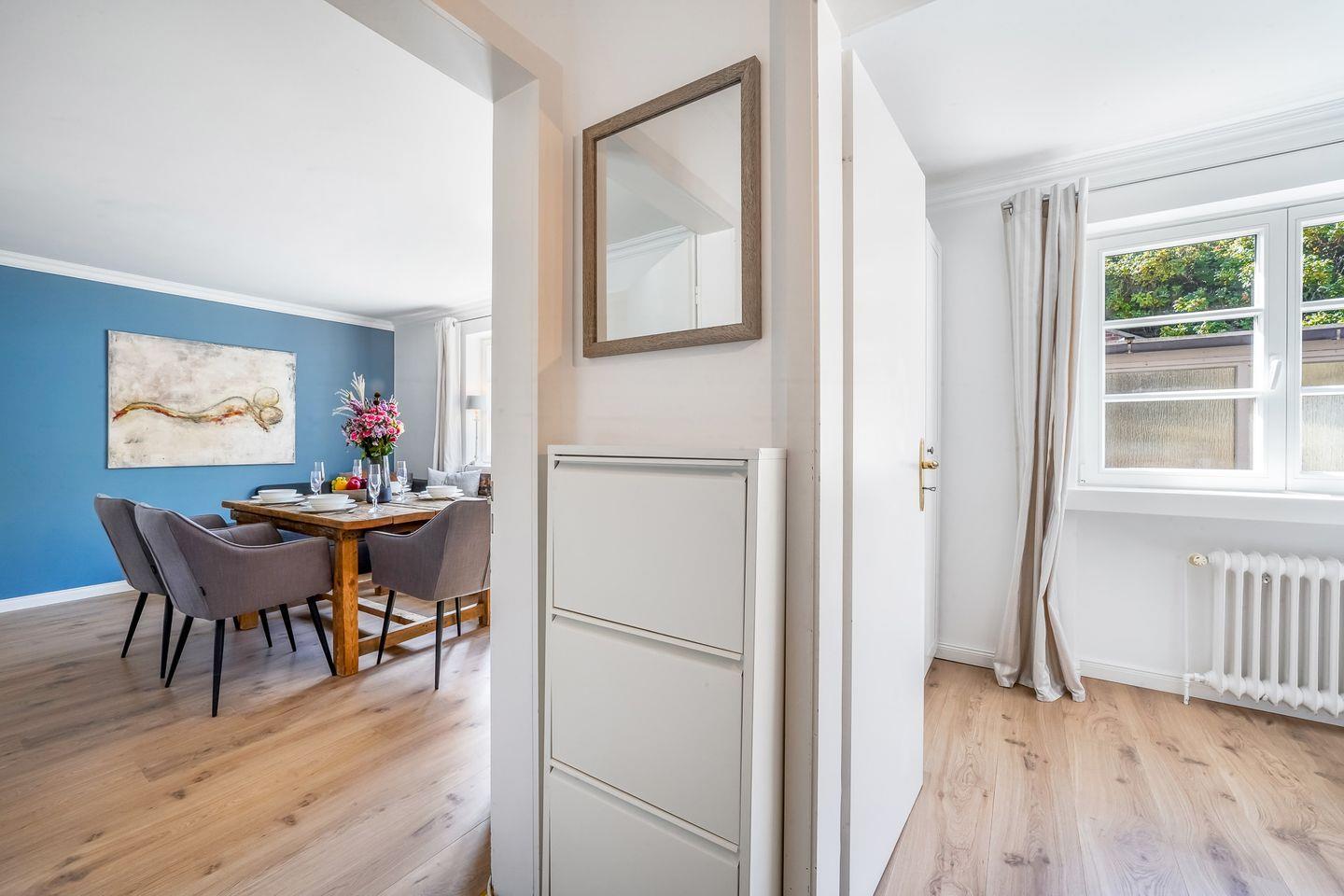 Ein besonderes Highlight ist die eingezäunte Terrasse, die direkt vom Wohnzimmer aus zugänglich ist – ideal für entspannte Stunden im Freien und auch perfekt für Gäste mit Hund. Hunde sind herzlich willkommen. Der nahegelegene Hundestrand ist bequem zu Fuß erreichbar.