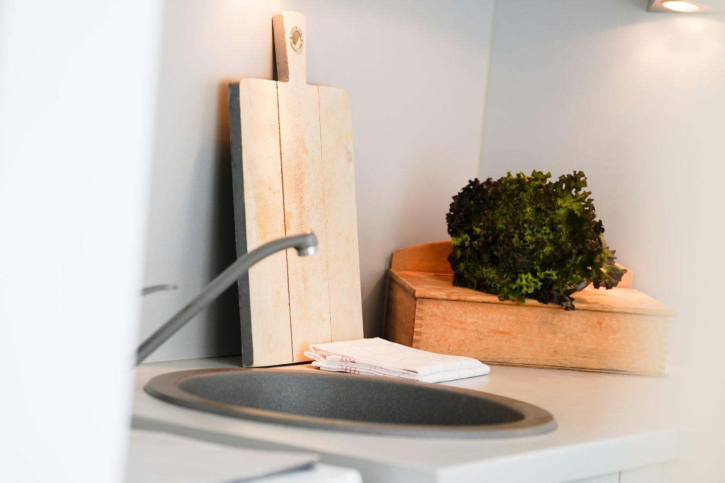 Die Küche ist funktional ausgestattet und bietet alles, was man im Urlaub braucht: Cerankochfeld, Backofen, Kühlschrank, Geschirrspüler, Kaffeemaschine, Toaster, Wasserkocher sowie eine Waschmaschine – praktisch vor allem bei längeren Aufenthalten. Direkt angrenzend befindet sich ein geräumiger und gemütlicher Essbereich mit TV, an dem vier Personen bequem Platz finden – perfekt für gemeinsame Mahlzeiten oder Spieleabende.
