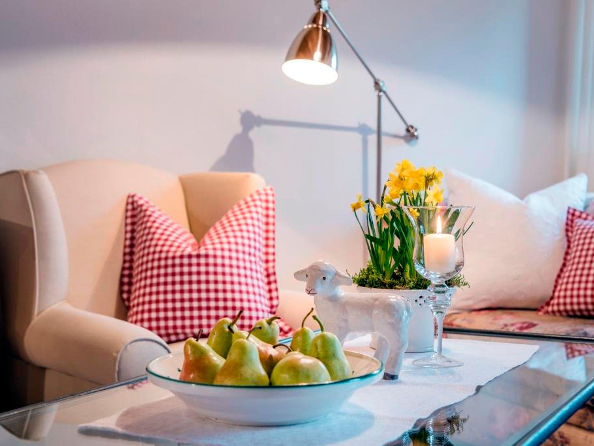 Gemütlich eingerichtete Ferienwohnung mit herrlichem Bergblick vom Balkon, Balkonmöbel, komplett eingerichtete Wohnküche mit Spülmaschine, Microwellenherd, Kühlschrank, Backofen mit 4 Kochfelder etc., Sitzcouch, Bad mit Badewanne, gute Leselampe und kleines Büchersortiment, Bandscheibenmatratzen, Sat-TV.