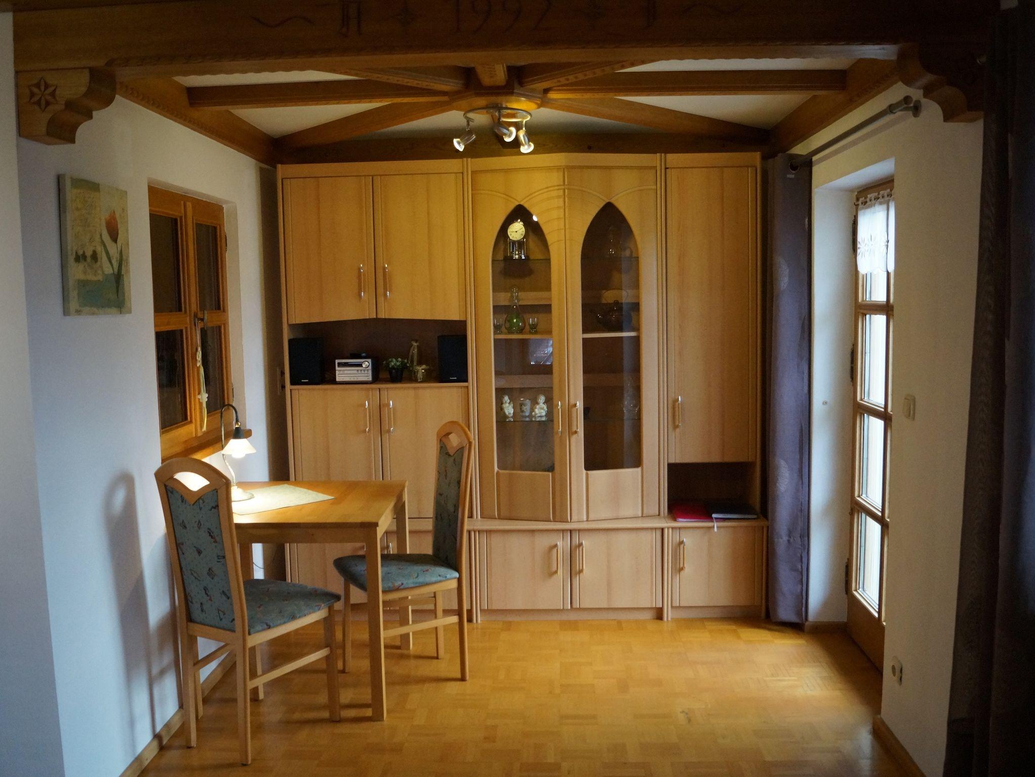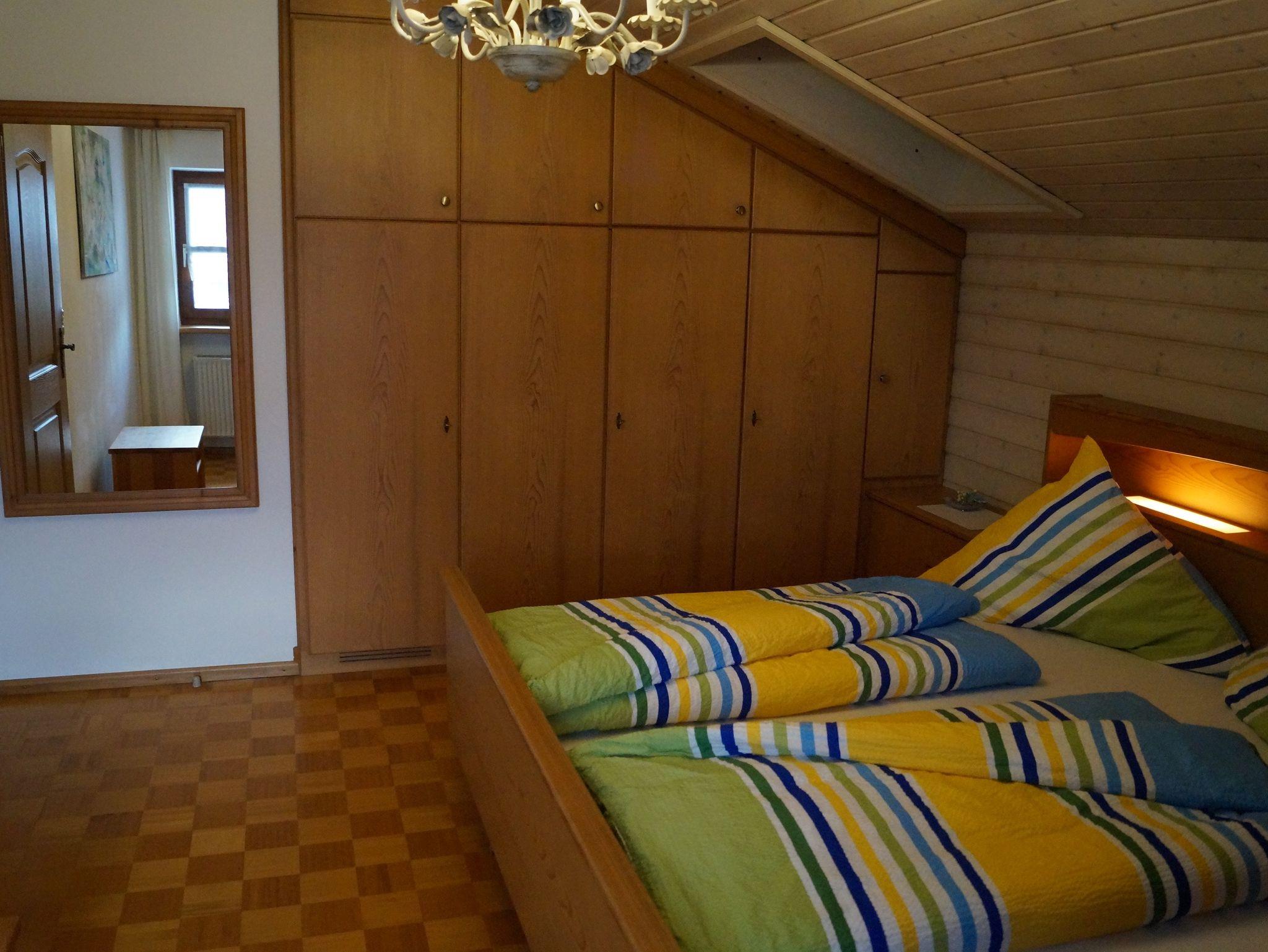 Sehr geräumige (96qm) und gepflegte Ferienwohnung ist im bayerischen Landhausstil eingerichtet. Die im Dachgeschoss gelegene Ferienwohnung verfügt über 3 Schlafzimmer, 1 Wohnzimmer, 1 separate Küche mit Essplatz, 1 Badezimmer mit Dusche und Badewanne sowie ein separates WC und ein 2. WC. Ein Balkon mit Bergblick ist auch vorhanden.
