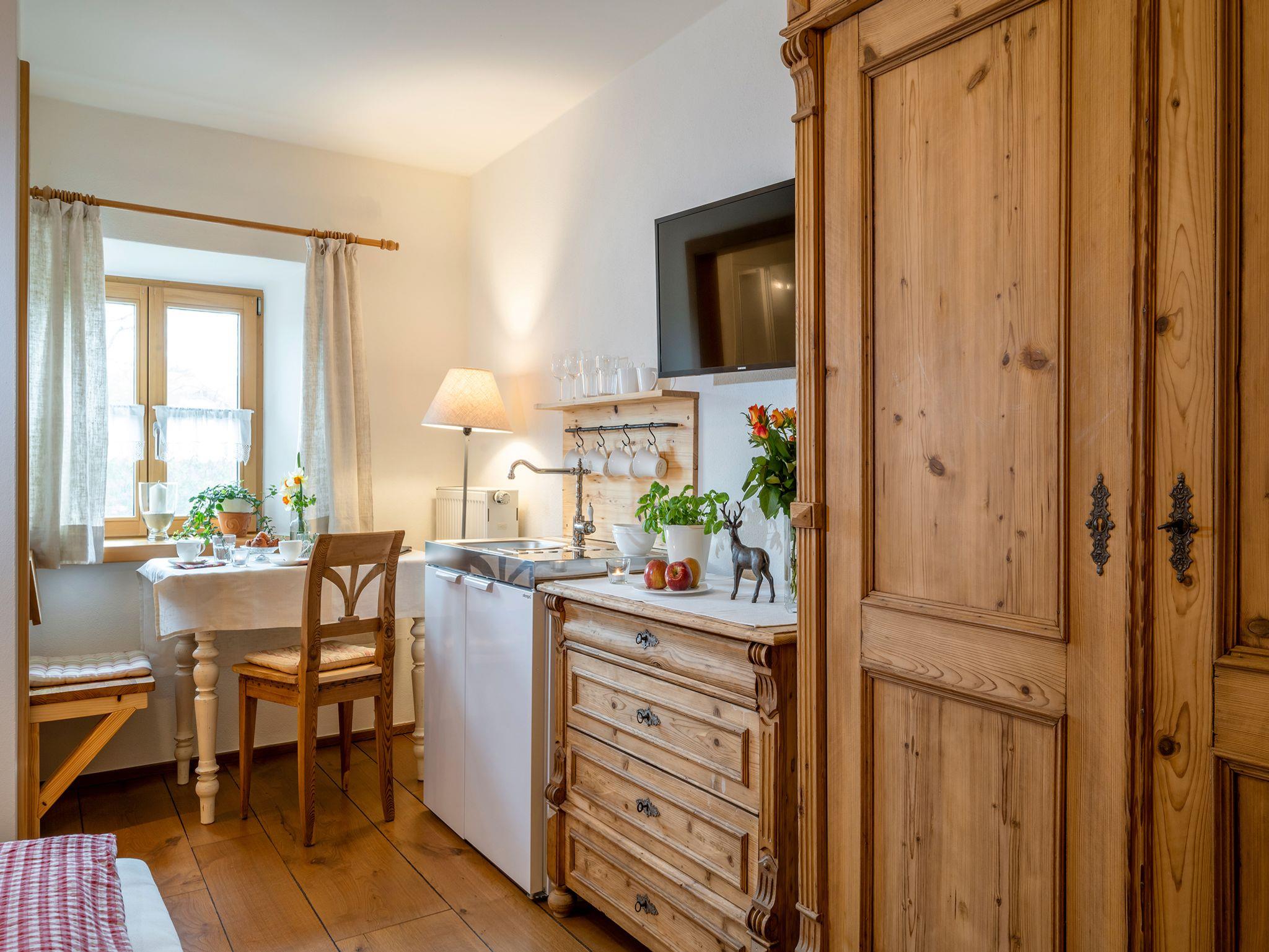 Unsere Hofkammer mit Dusche/WC ist sehr geschmackvoll und gemütlich im Landhausstil eingerichtet. Die Doppelzimmer können außerdem noch als zusätzliche Zimmer zu den Ferienwohnungen dazugebucht werden.