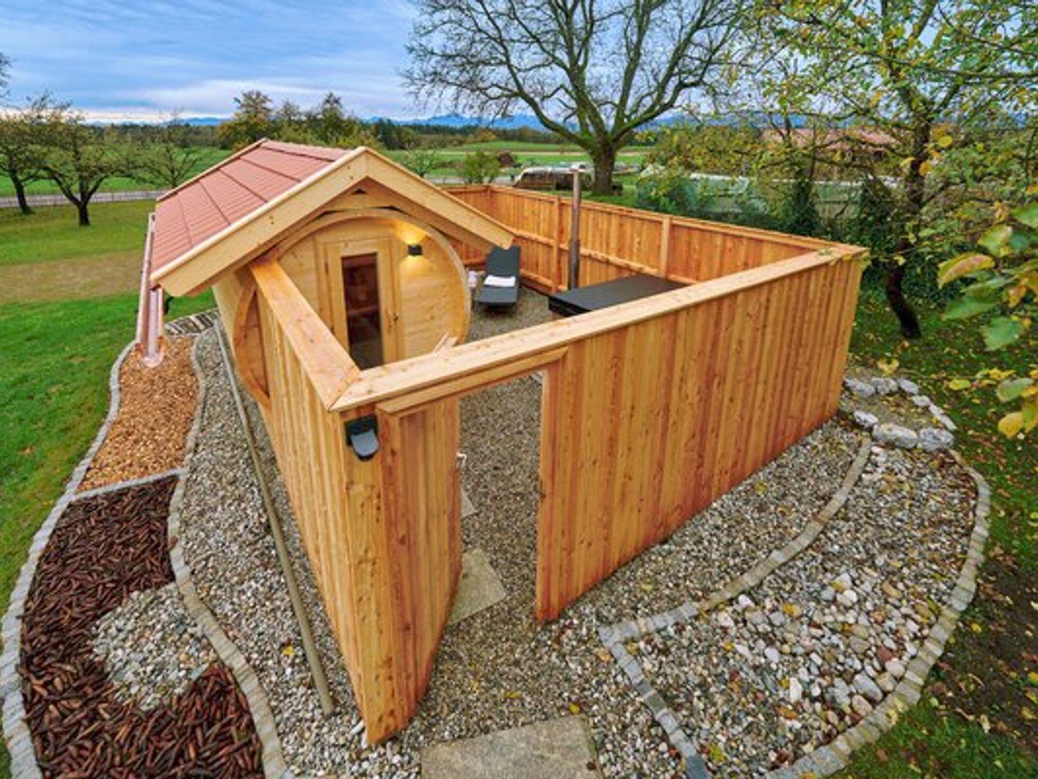 Im Zimmer ist noch ein kleiner Esstisch mit zwei Stühlen und ein Lesestuhl mit Leselampe. Ausgestattet ist das Zimmer mit einem Fernseher, Radiowecker, Kühlschrank, Wasserkocher, Kaffeemaschine und einem Tablett mit Geschirr, Gläsern und etwas Besteck. Bitte beachten Sie, im Zimmerpreis ist kein Frühstück inklusive! Im Bad ist ein Fön vorhanden. In unserem großen Garten mit vielen Sitzplätzen, Sonnenliegen und Spielplatz ist für jeden etwas dabei.