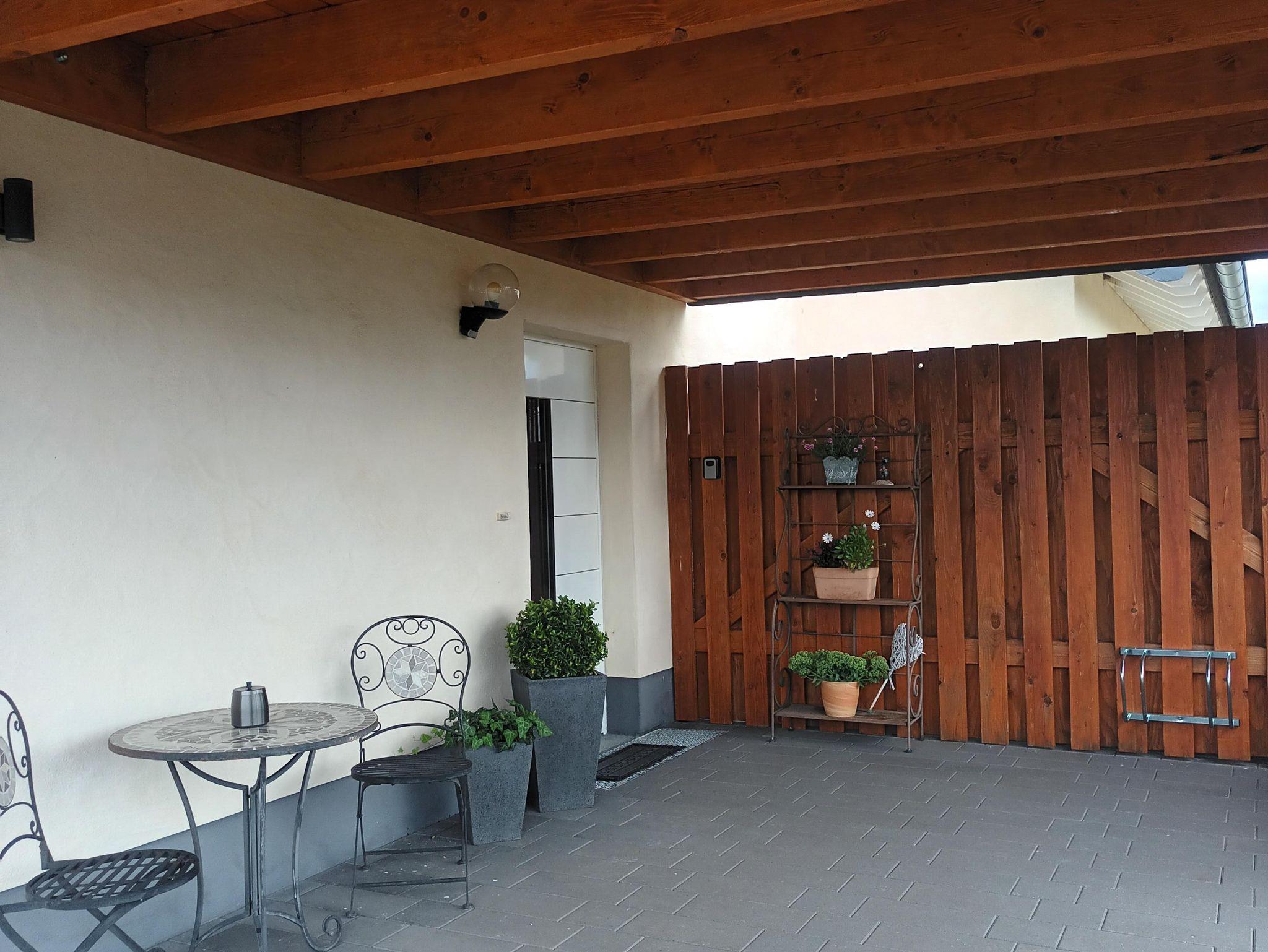 Die Wohnung verfügt über einen separaten Haustüreingang, der im hinteren Teil des Hauses liegt. Es erwarten Sie ein geräumiger Eingangsbereich, Landhausküche, Wohnzimmer, Ruheraum, Badezimmer, Schlafzimmer, Ankleidezimmer und eine separate überdachte Terrasse mit eingezäunter Liegewiese und Gartenmöbeln.