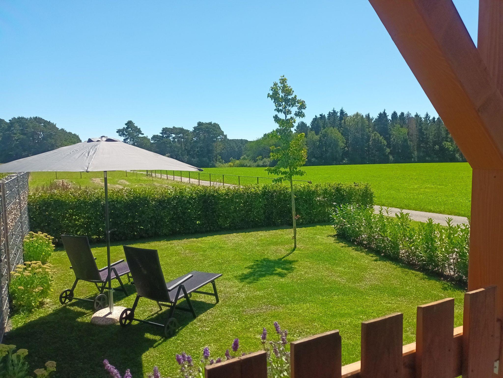 Naturbezogene, modern eingerichtete 100m² große Nichtraucherwohnung für zwei Personen lässt kaum Wünsche offen. Die Wohnung verfügt über einen separaten Haustüreingang der im hinteren Teil des Hauses liegt. Einen geräumigen Eingangsbereich, Landhausküche, Wohnzimmer, Ruheraum, Badezimmer, Schlafzimmer, Ankleidezimmer, separate überdachte Terrasse mit Liegewiese erwartet Sie.