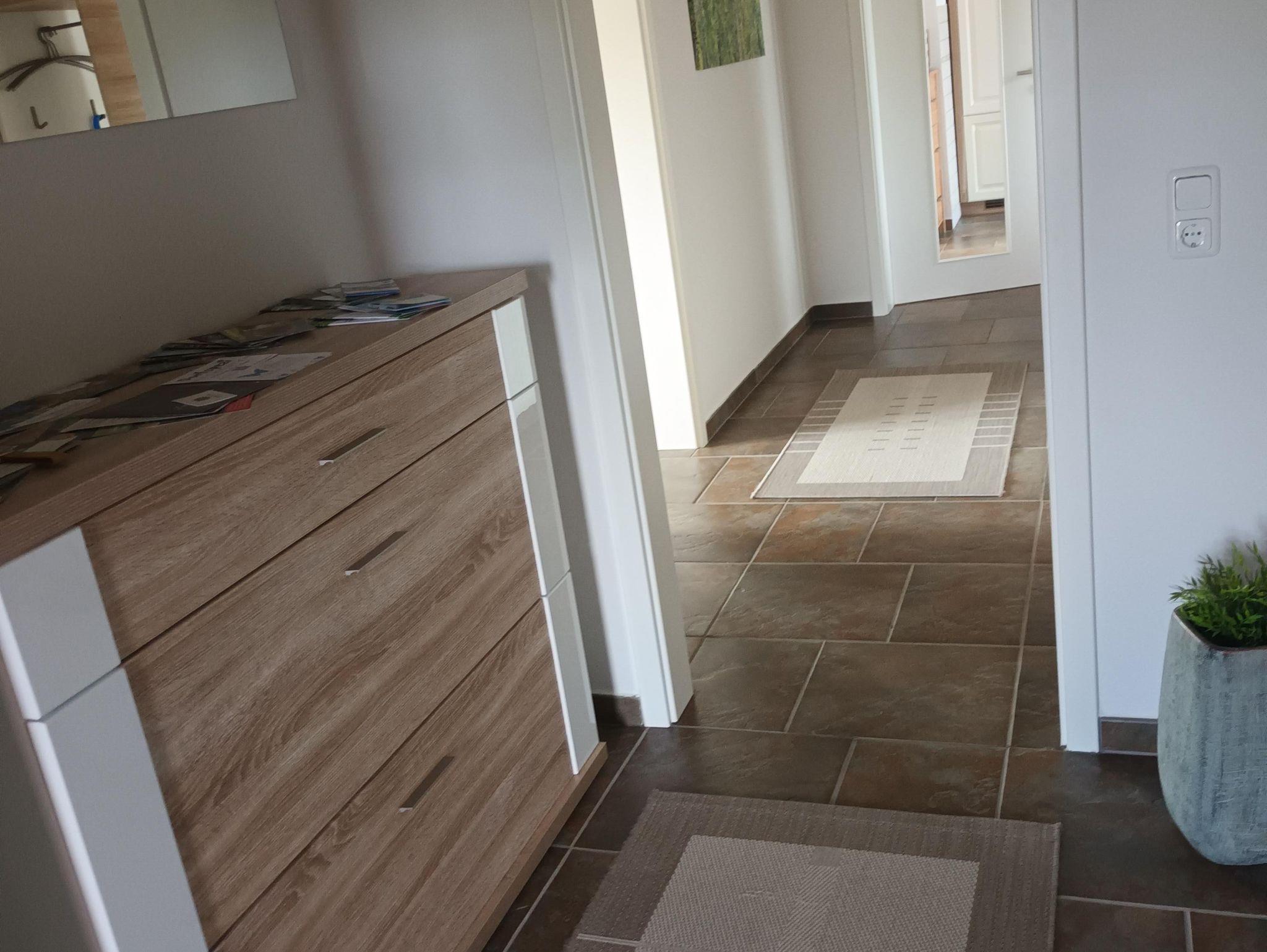 - Der Eingangsbereich ist mit einer großen Kommode, Garderobe und Spiegelschrank eingerichtet. - Die Landhausküche mit Essbereich ist ausgestattet mit Kühlschrank, zwei Gefrierfächern, Herd mit Ceranfeld und Backofen, Spülmaschine, Mikrowelle, Senseo Padmaschine, Wasserkocher, Geschirr, Gläser und vielem mehr.