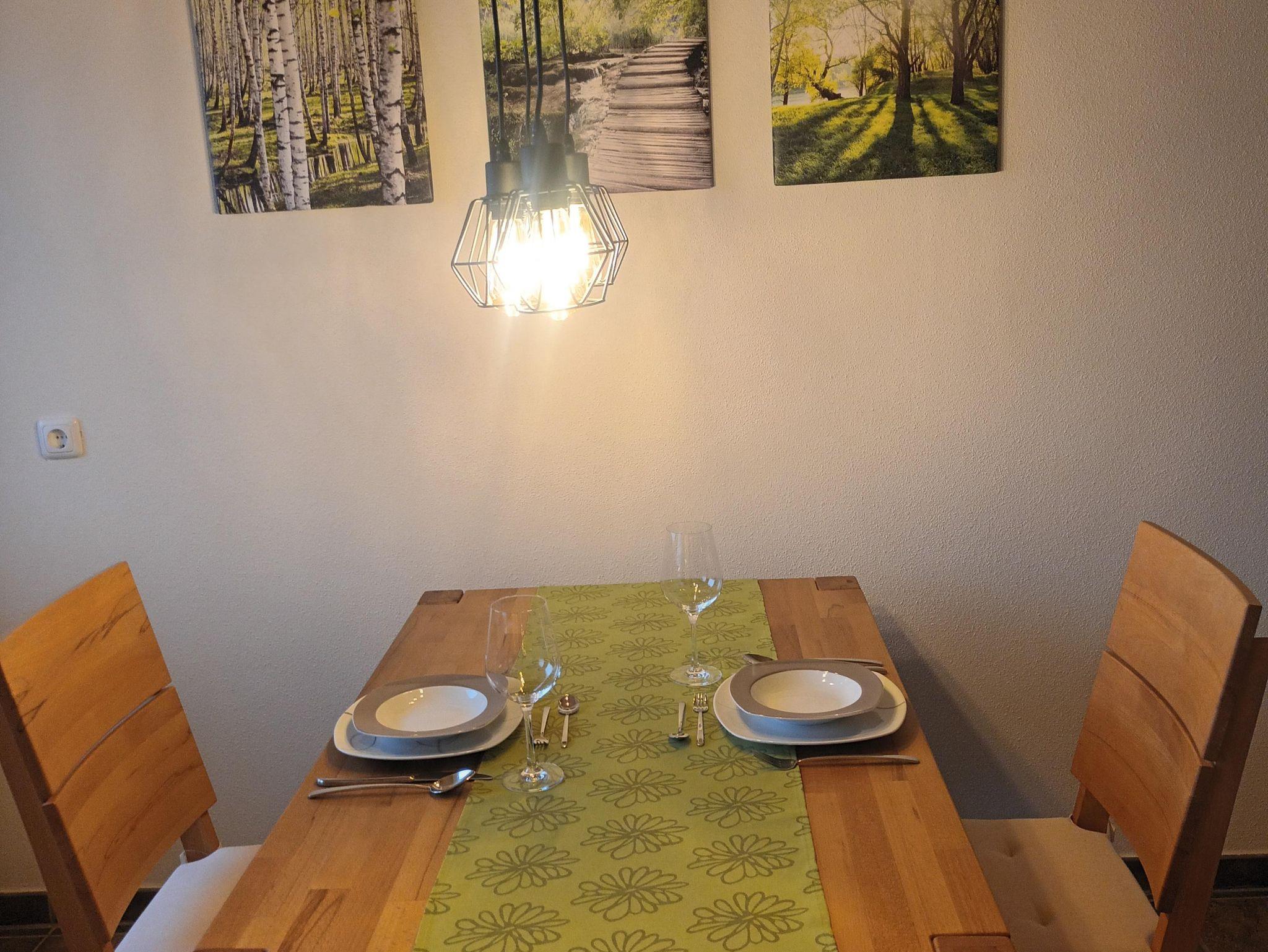 - Die Landhausküche mit Essbereich ist ausgestattet mit einem Kühlschrank, zwei Gefrierfächern, Herd mit Ceranfeld, Backofen, Spülmaschine, Mikrowelle, Senseo- Padmaschine, Wasserkocher, Toaster, Eierkocher, Geschirr, Gläsern und vielem mehr.