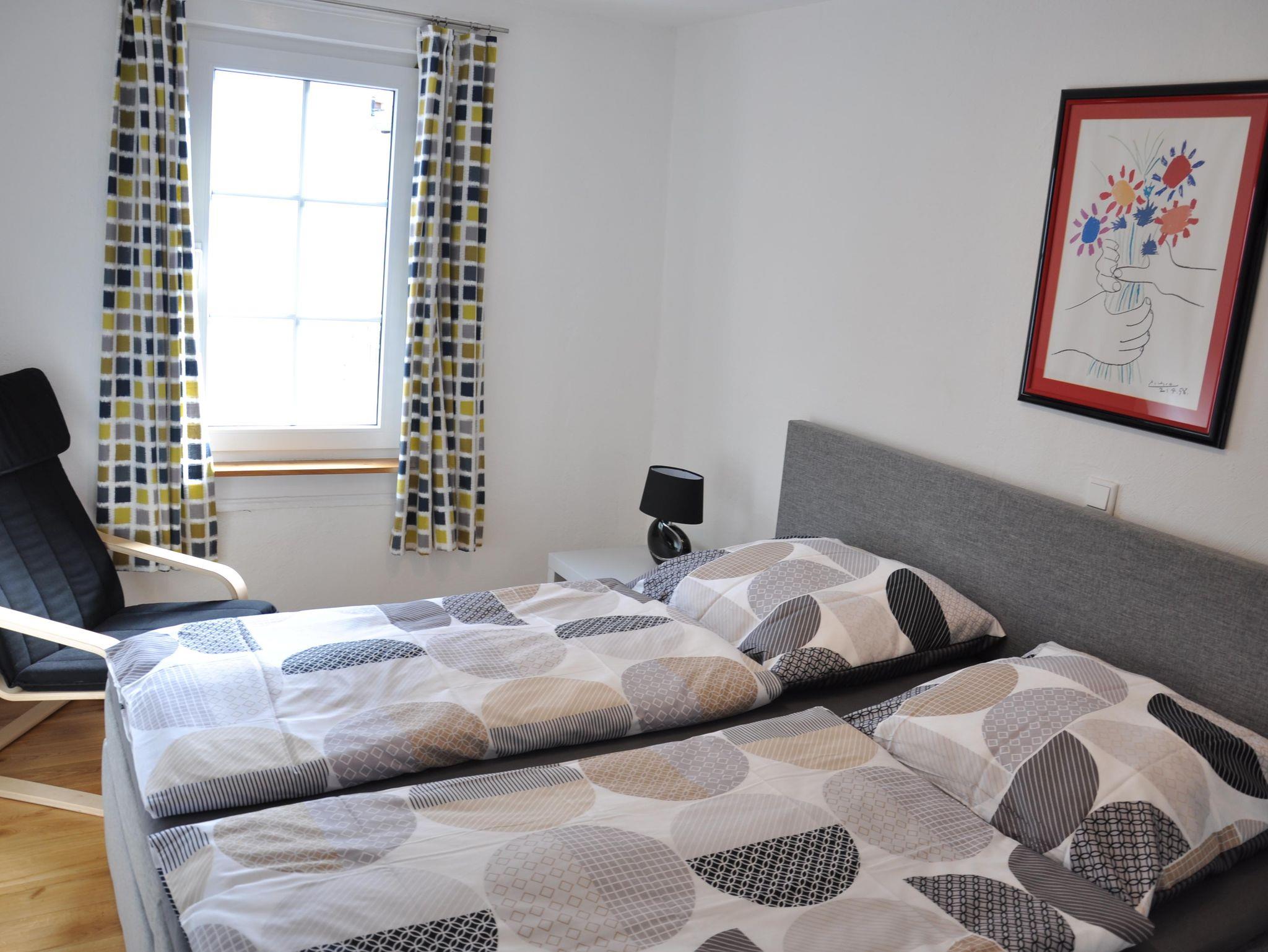 Die Ferienwohnung erreichen Sie durch einen kleinen Hof mit wenigen Stufen und den Treppenaufgang in das 2.OG. Hier betreten Sie eine geschmackvoll eingerichtete Wohnung. Der Eichenboden mit Fussbodenheizung, das neue Bad und die moderne Küche mit Spülmaschine werden für einen angenehmen Aufenthalt sorgen. Lehmwände und viel Holz sorgen für ein gutes Raumklima. Für eine erholsame Nachtruhe sorgt optimal das Boxspringbett in der Grösse 180x200. Das 2.Schlafzimmer verfügt über zwei getrennte Betten in Überlänge (100x220).