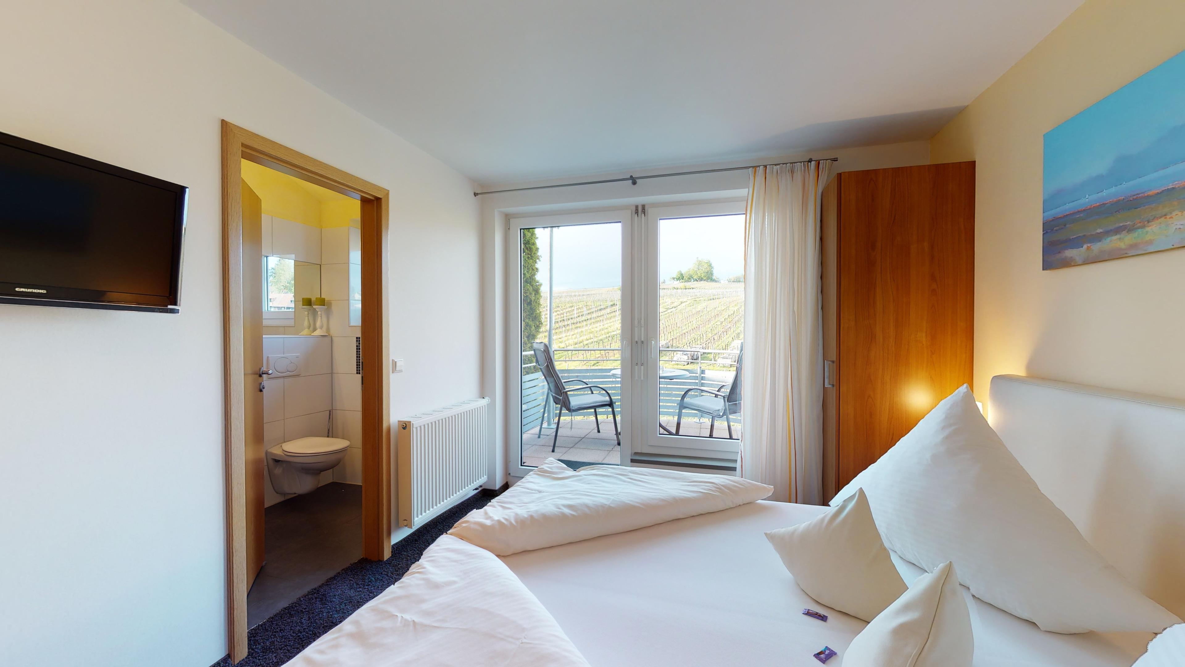 Unsere Doppelzimmer sind mit Liebe zum Detail eingerichtet, so, dass Sie Ihren Wohlfühlurlaub am schönen Bodensee genießen können.