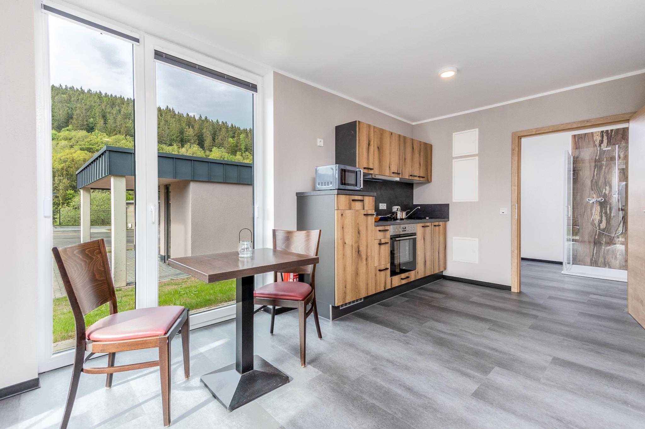Versteckt im ruhigen Dorf Hallschlag bietet dieser einladende Bungalow die perfekte Mischung aus Komfort und Natur für Familien oder Freunde. Die gemütliche Inneneinrichtung umfasst eine voll ausgestattete Küche mit Geschirrspüler, während die möblierte Terrasse mit Grillplatz zu entspannten Abenden einlädt. Extras wie E-Bikes, Sauna und Waschmaschine stehen gegen eine geringe Gebühr zur Verfügung, und sichere Parkplätze sorgen für zusätzlichen Komfort. Die umliegende Eifellandschaft besticht durch sanfte Hügel, tiefe Wälder und friedliche Täler – ideal zum Wandern, Radfahren und Reiten. Der berühmte Eifelsteig führt ganz in der Nähe vorbei und bietet atemberaubende Ausblicke, und die Kyllburg verleiht mittelalterliche Geschichte. Der entspannte Charme der Gegend lädt zu einem entspannteren Tempo ein. Ob Sie auf der Terrasse lesen, gemeinsam kochen oder die Wanderwege und Burgen der Region erkunden – dieser Bungalow sorgt für einen rundum gelungenen und unvergesslichen Aufenthalt auf dem Land.