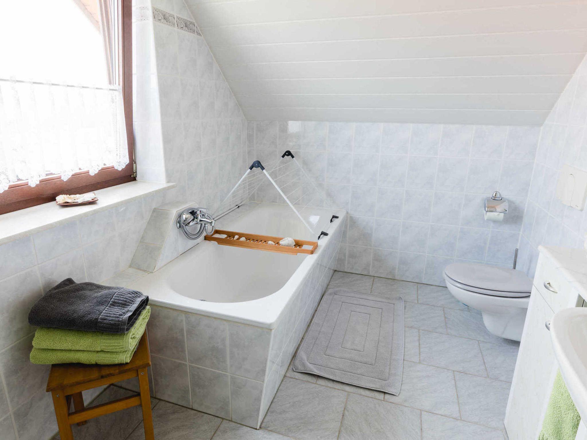 Das Badezimmer verfügt über eine Badewanne, eine Dusche und ein WC. Hand- und Badetücher sind im Preis inbegriffen. Außerdem finden Sie in unserem Bad auch einen Fön und Handseife.