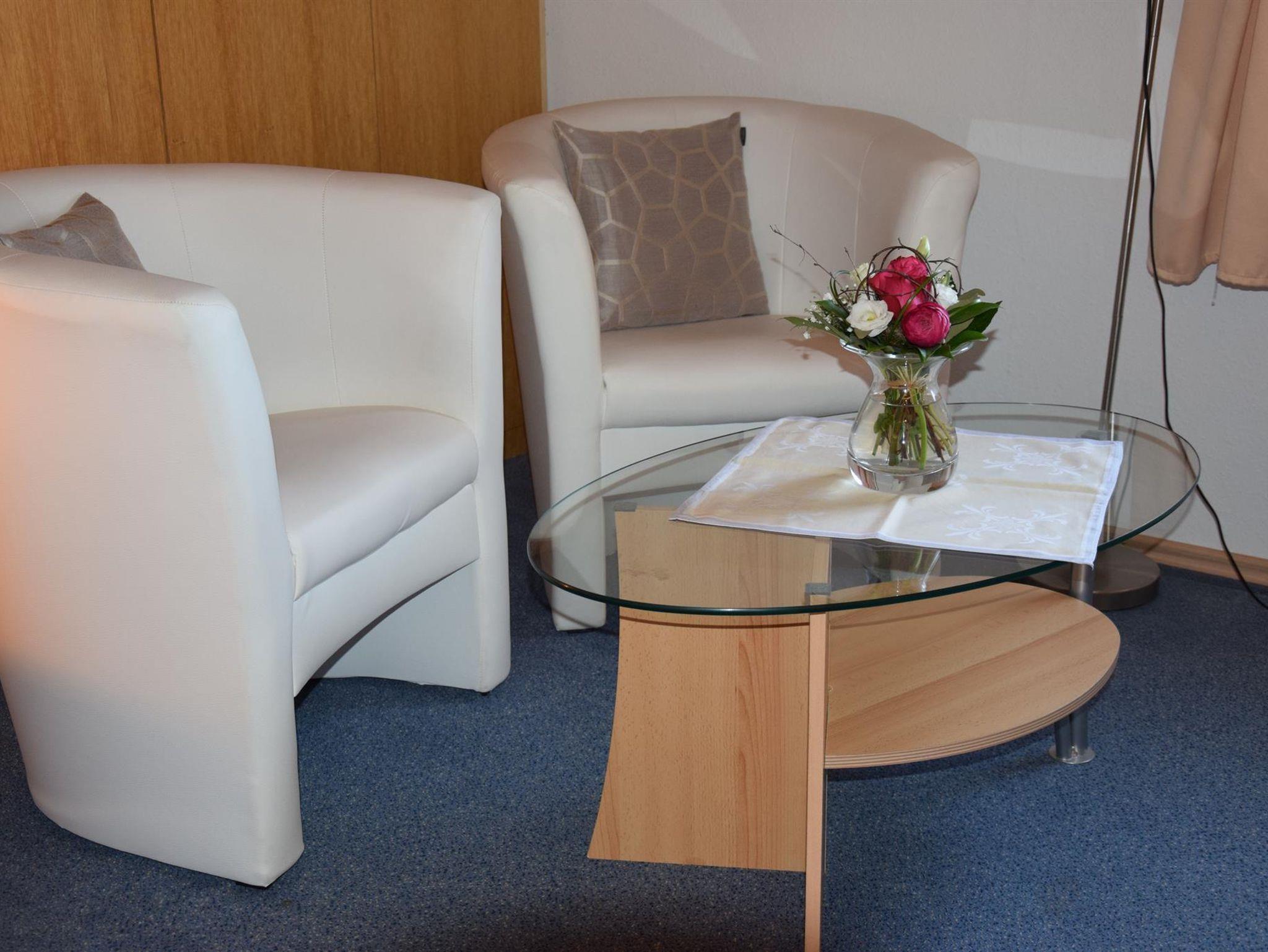 Auf Ihrem Zimmer bieten wir Ihnen im gemütlichen Ambiente allen Komfort mit einer kleinen Sitzecke, Flatscreen-TV, Weckeinrichtung und Kühlschrank (Getränke sind auf Wunsch erhältlich). Das Zimmer verfügt über ein eigenes Bad mit Dusche und Toilette und Fön.