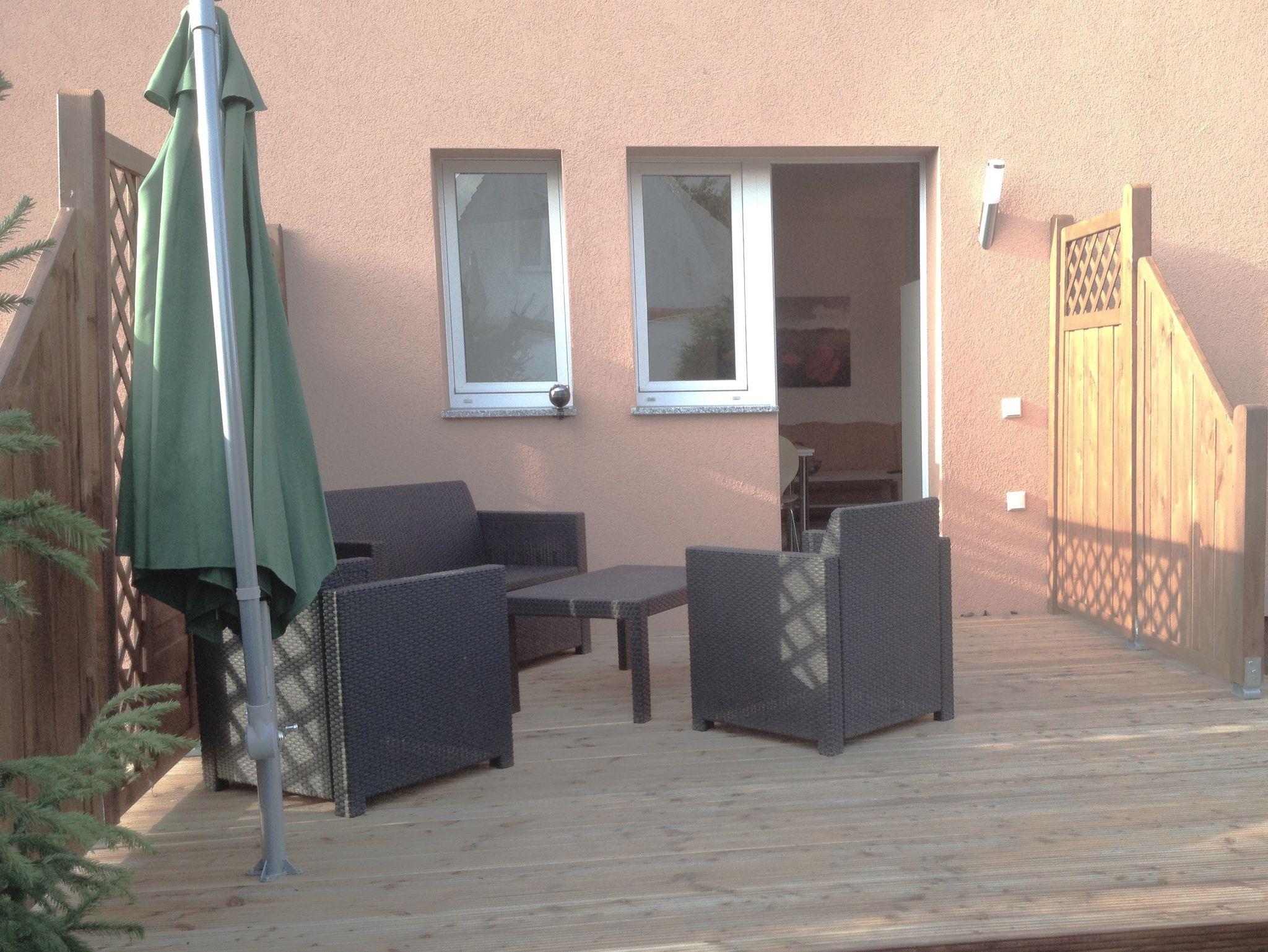 Genießen Sie Ihren Aufenthalt in dieser modernen Ferienwohnung im Erdgeschoss des Ferienhauses „Möwe“, mit separatem Eingang und direktem Zugang zur großzügigen, möblierten Terrasse und dem idyllischen Gartengrundstück. Das helle, gemütliche Wohnzimmer lädt mit ausziehbarer Couchecke, TV und Radio zum Entspannen ein. Vom Essbereich und Wohnzimmer genießen Sie den Blick ins Grüne und auf die Terrasse - perfekt für entspannte Stunden im Freien.