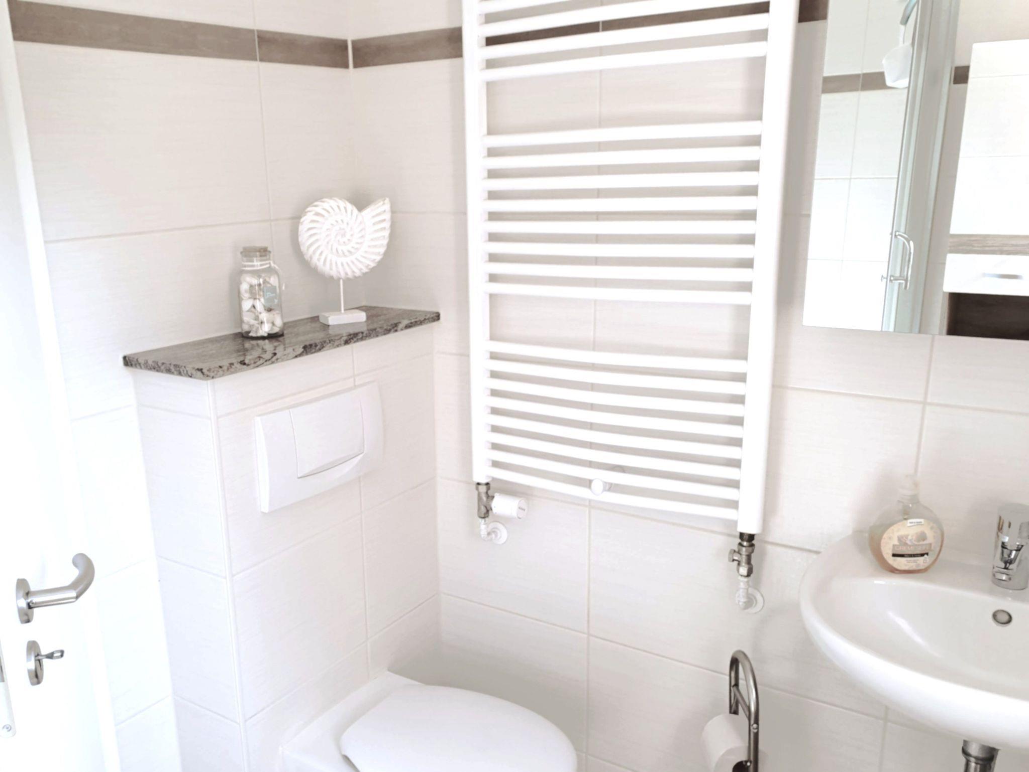 Das kleine Schlafzimmer verfügt über zwei komfortable Betten mit geräumigem Bettkasten, verstellbarem Kopf- und Fußteil sowie einer praktischen Nische. Über eine Raumspartreppe erreichen Sie ein zweites, kuscheliges Schlafzimmer im Dachgeschoss mit zwei Einzelbetten und zusätzlichem Flachbildfernseher samt DVD-Player -bestens geeignet sowohl für Familien mit Kindern als auch für befreundete Paare. Das moderne Bad ist mit Dusche und WC ausgestattet.
