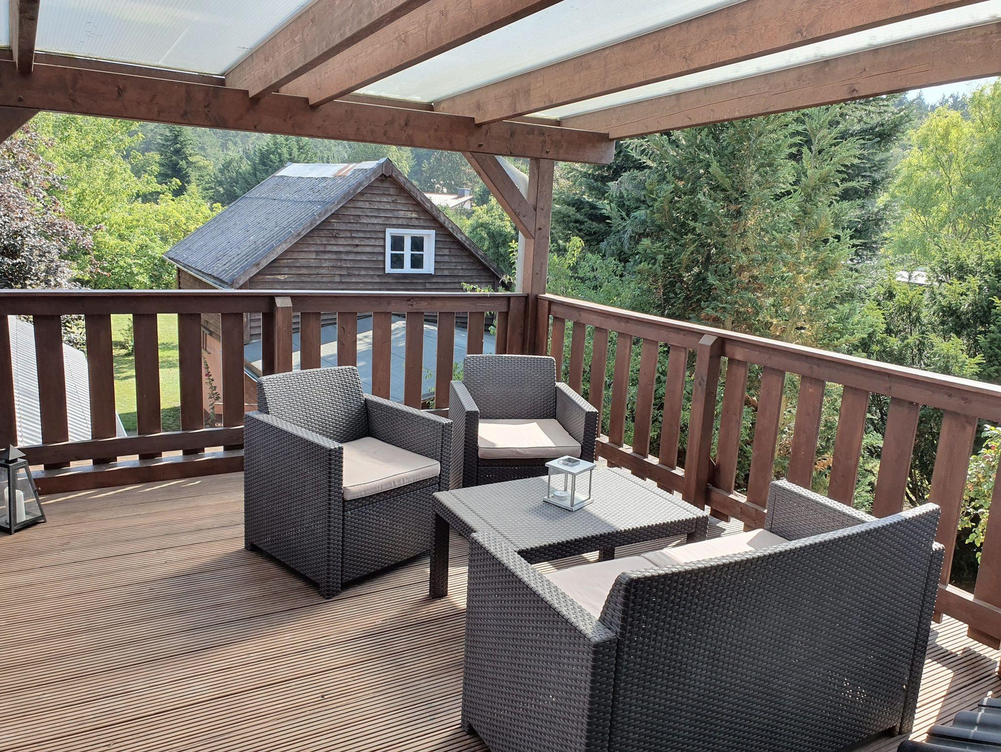 Die einladende, möblierte und überdachte Terrasse bietet einen herrlichen Blick über das Grundstück und die umliegenden Gärten - perfekt zum Entspannen bei jedem Wetter. Der große, ruhige Garten mit Obstbäumen, Grillplatz, komfortablen Liegen und Spielzeug für Kinder steht allen Gästen offen. Ihre Fahrräder sind inklusive.