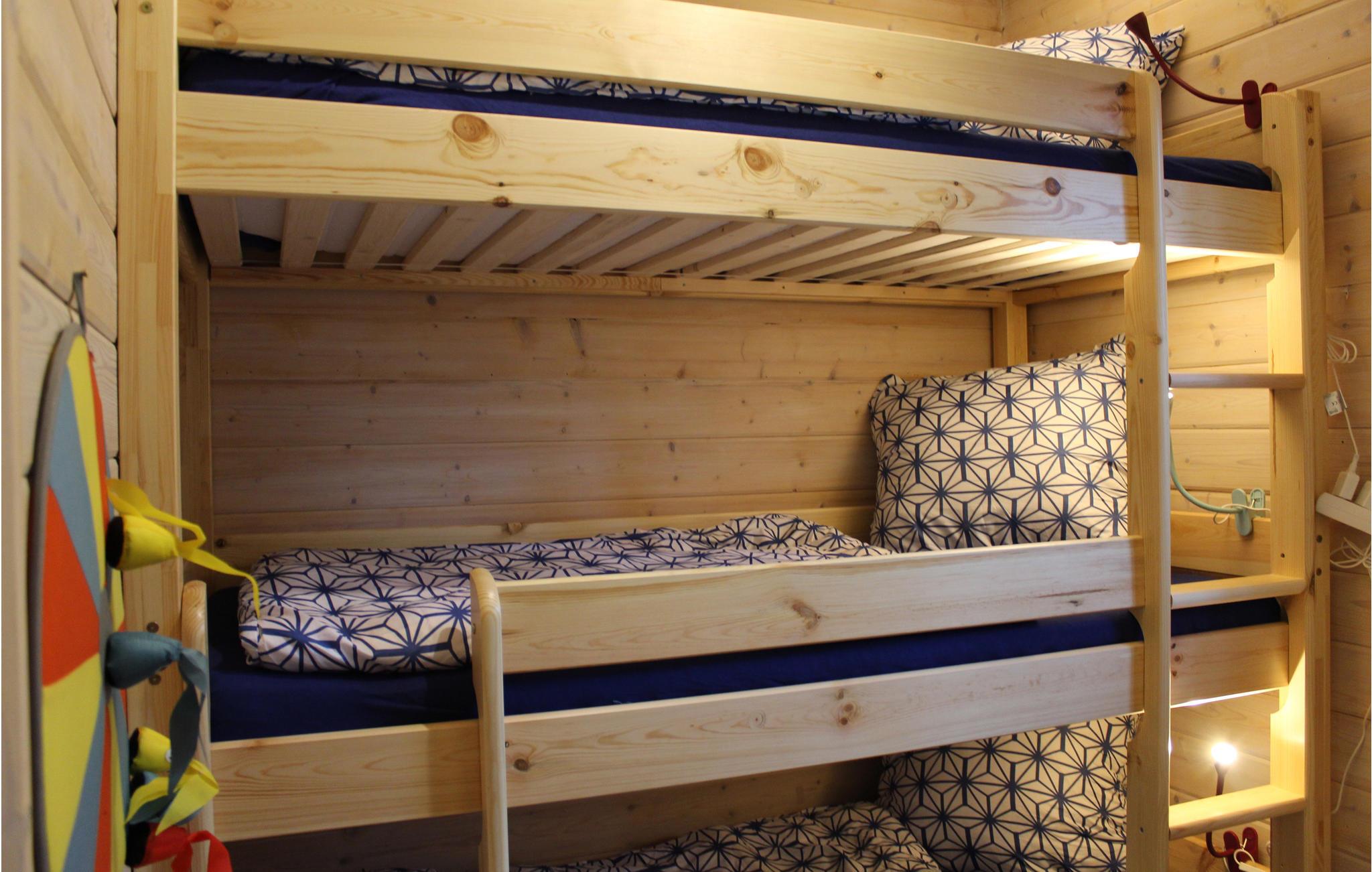 Im Wohnbereich befindet sich außerdem ein Zwischengeschoss, das als Schlafboden genutzt und über eine Leiter erreicht wird. Es hat eine sehr niedrige Deckenhöhe und keine Tür, sondern nur einen Vorhang. Es eignet sich eher als Schlafplatz für Kinder.