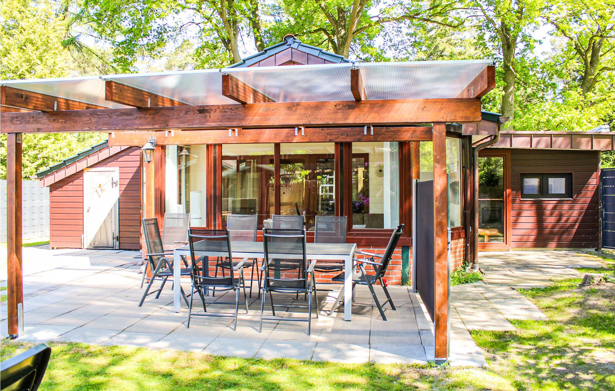 Dieses einladende Ferienhaus befindet sich in einer Ferienhaussiedlung auf einem schönen Grundstück in grüner Umgebung und eignet sich gut für einen Urlaub mit der ganzen Familie. Im Inneren des Hauses erwartet Sie eine gemütliche und moderne Einrichtung mit vielen schönen Details. Im Ess- und Wohnbereich befindet sich zum Beispiel eine Theke in Form eines Schiffes. Verbringen Sie hier gesellige Abende beim Essen oder bei Gemeinschaftsspielen. Der Wintergarten dient als Wohnzimmer und bietet einen schönen Blick in den Garten.