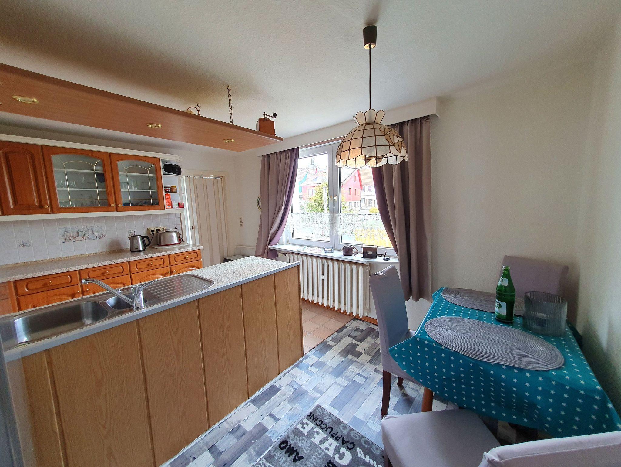 Erleben Sie unvergessliche Urlaubsmomente in unserer geräumigen Ferienwohnung im 1. Obergeschoss! Auf großzügigen 90 Quadratmetern finden bis zu 7 Personen den perfekten Rückzugsort zum Entspannen und Wohlfühlen. Die Aufteilung umfasst ein gemütliches Wohnzimmer mit Schlafcouch, eine voll ausgestattete moderne Küche und einen Essbereich im Wohnzimmer mit ausreichend Platz für gemeinsame Mahlzeiten.