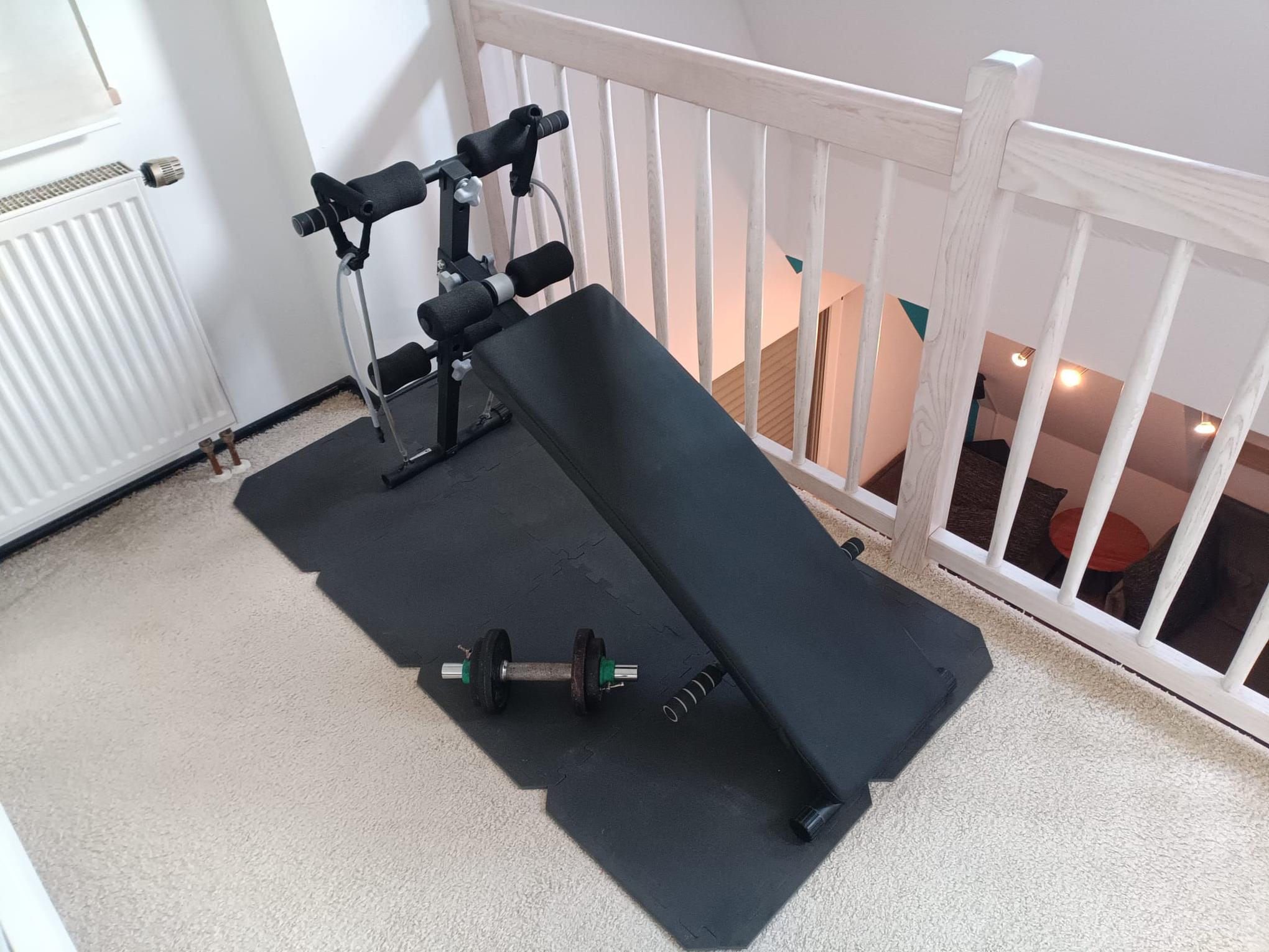 – Kleine Trainingsecke für aktive Gäste ?? - In unserer kompakten Trainingsecke stehen Ihnen verschiedene Möglichkeiten für Krafttraining zur Verfügung: Hantelbank, Kurzhanteln und Widerstandsbänder.