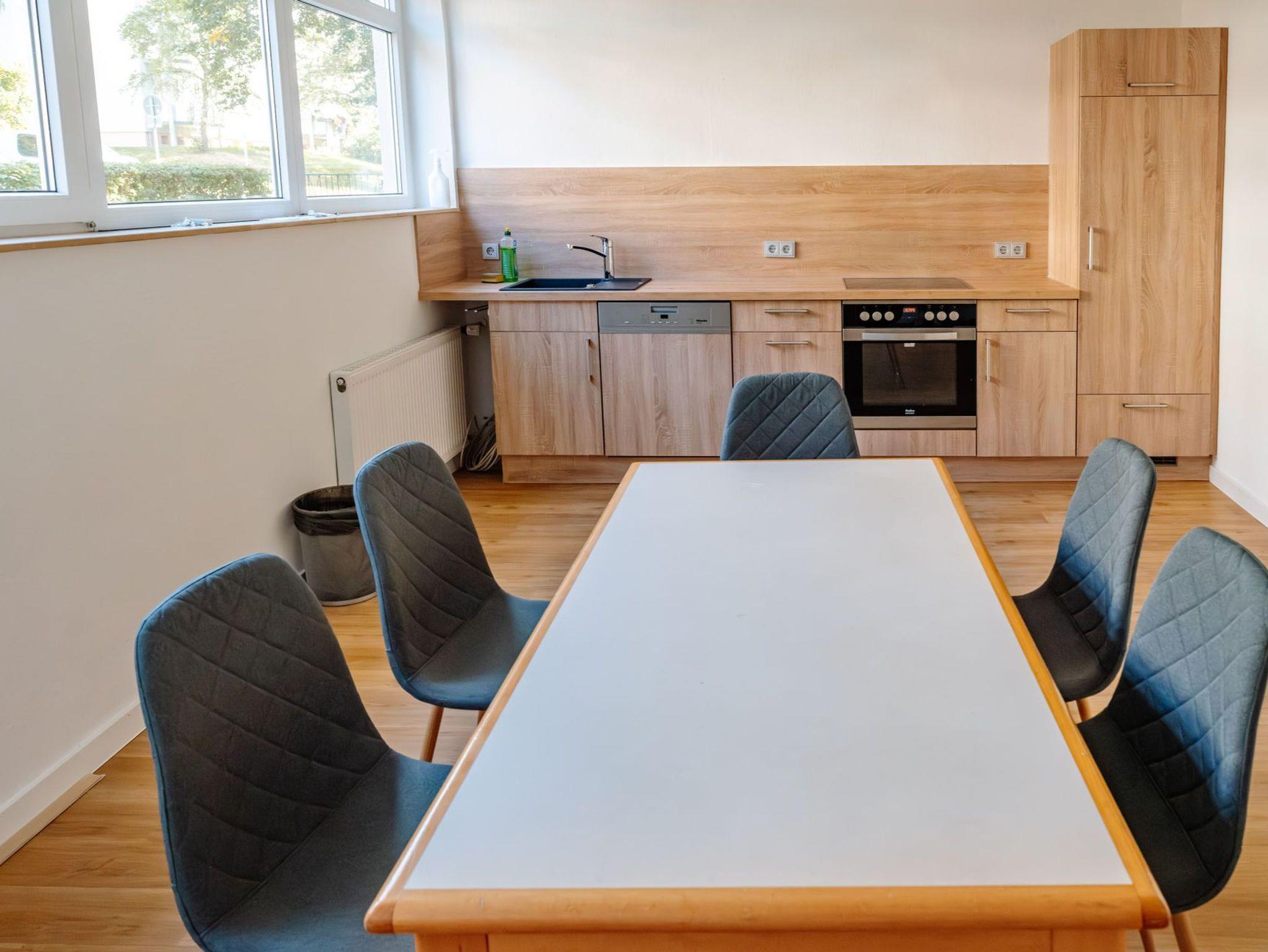Außerdem bietet es Ihnen eine vollausgestattete Küche (20 qm) mit großzügigem Essbereich, sowie eigenen Terrassenausgängen in den zwei Doppelzimmern.