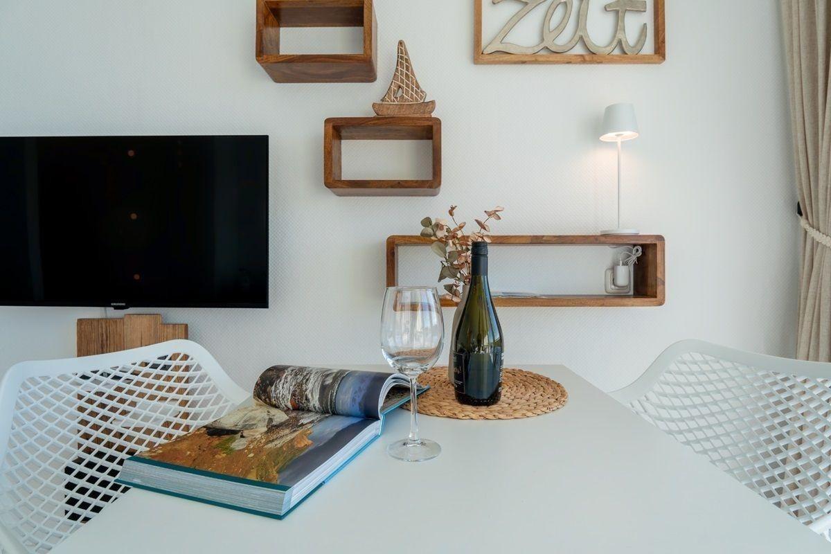 Die moderne Studiowohnung befindet sich in der 3. Etage und verfügt über einen lichtdurchfluteten Wohn- und Schlafbereich. Von dort aus gelangt man auf den Südbalkon mit tollem Ausblick zum Binnensee. Duschbad und eine kleine Küchenzeile befinden sich im hinteren Teil der Wohnung. Der große Kleiderschrank bietet ordentlich Platz für die Urlaubsgarderobe - und das ein oder andere Souvenir.