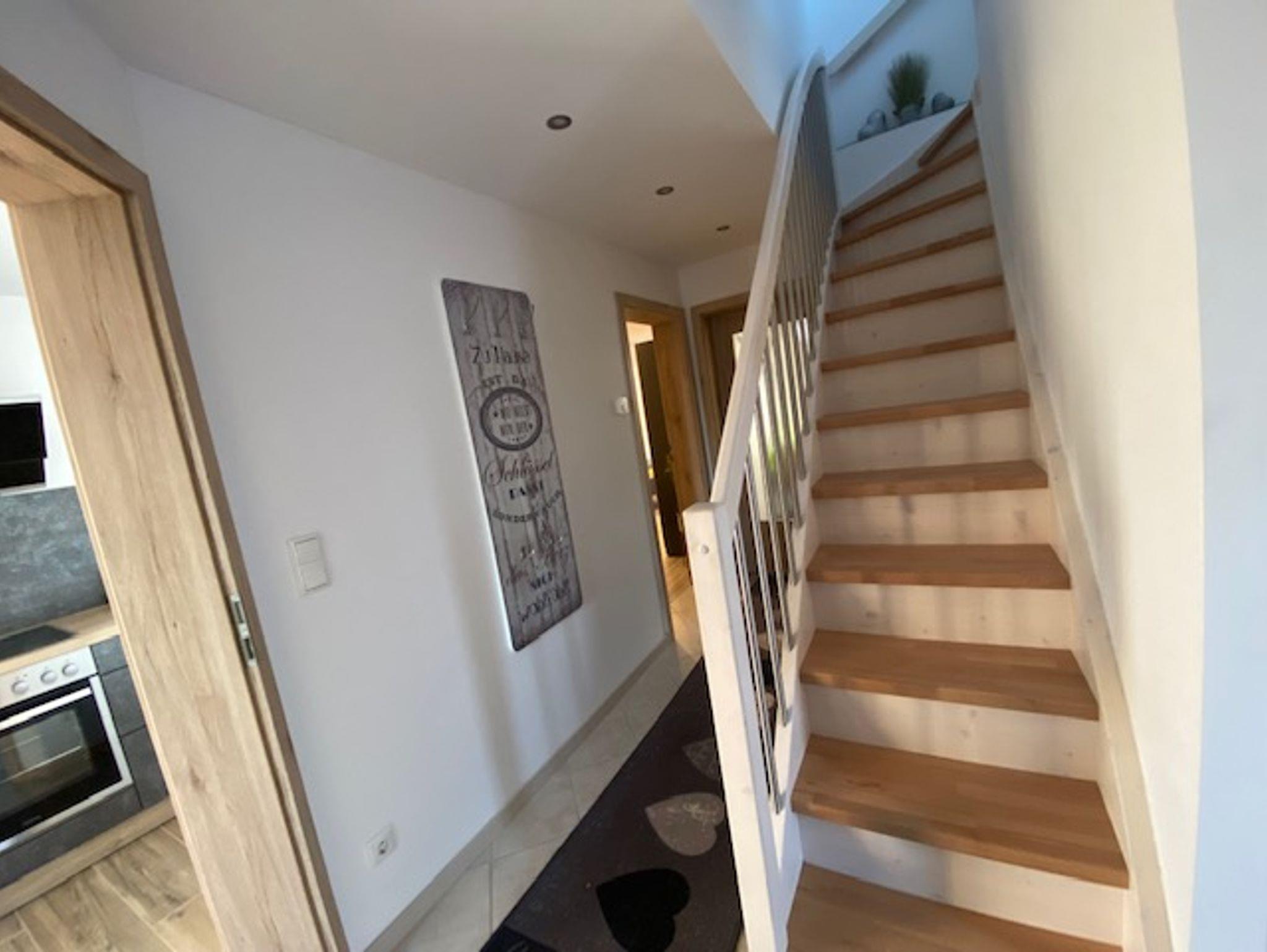 Die Ferienwohnung (65qm) erstreckt sich über zwei Ebenen (Erdgeschoss + Dachgeschoss) und bietet Platz für bis zu 3 Personen. Die Wohnung verfügt über 2 Schlafzimmer mit jeweils einem Doppelbett. Das Doppelbett in dem einen Schlafzimmer ist 1,80x2,00m, das Doppelbett im zweiten Zimmer 1,40x2,00m. Die Fußenden der Betten sind offen. Handtücher und Bettwäsche sind vorhanden. Die Küche ist voll ausgestattet und verfügt unter anderem über einen Backofen, einen Geschirrspüler, einen Kühlschrank sowie eine Kaffeemaschine. Das Badezimmer verfügt über ein WC sowie eine Dusche und ein Waschbecken. In der Wohnung darf nicht geraucht werden. Ein Parkplatz steht zur Verfügung. Wlan kann kostenfrei genutzt werden.