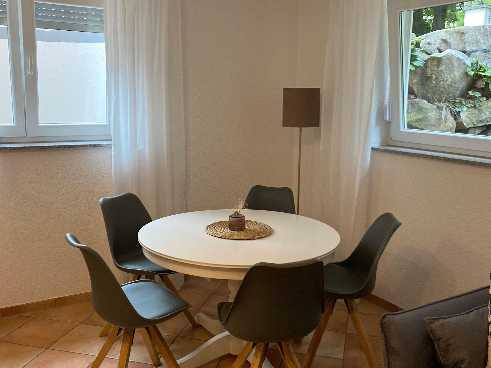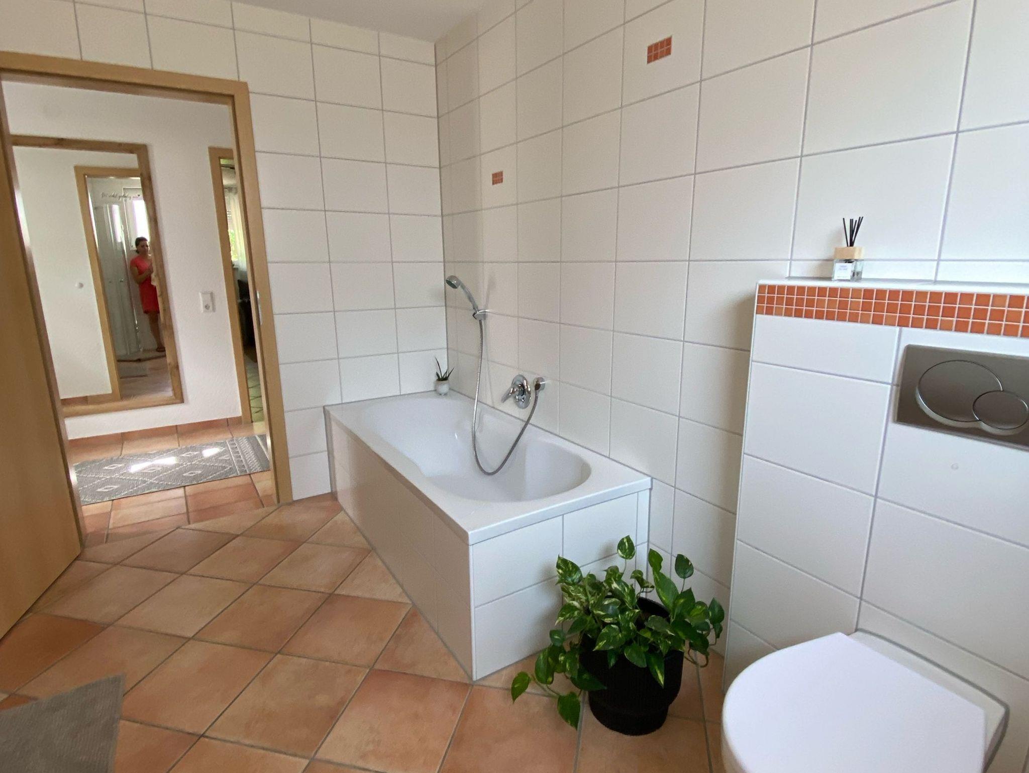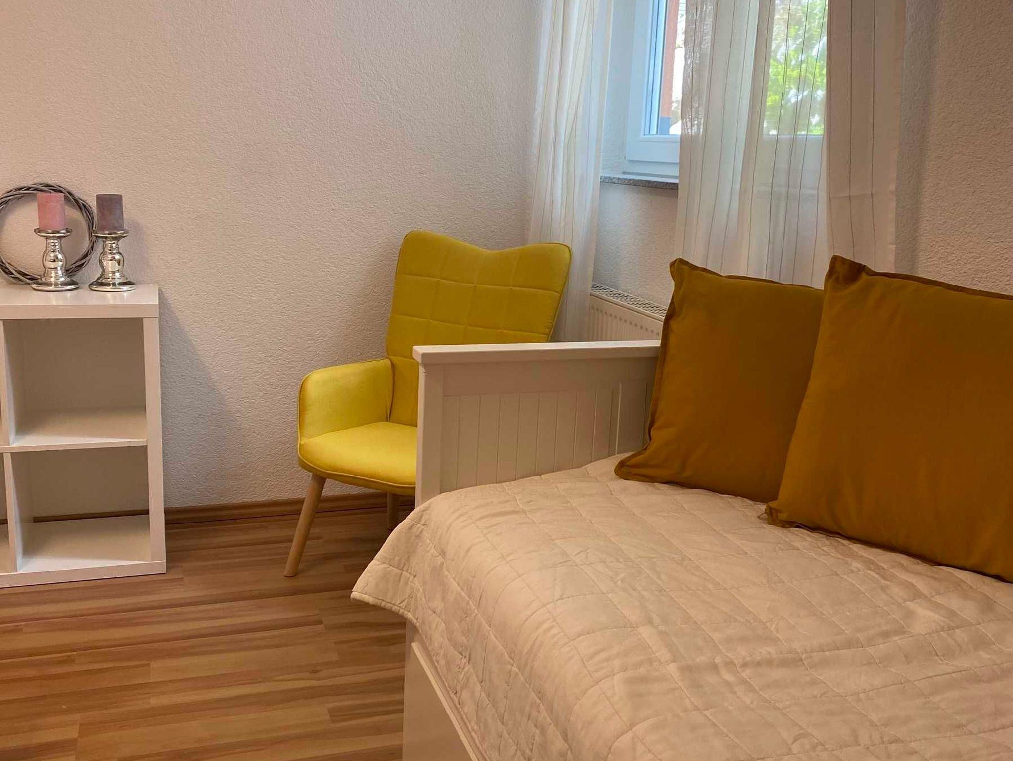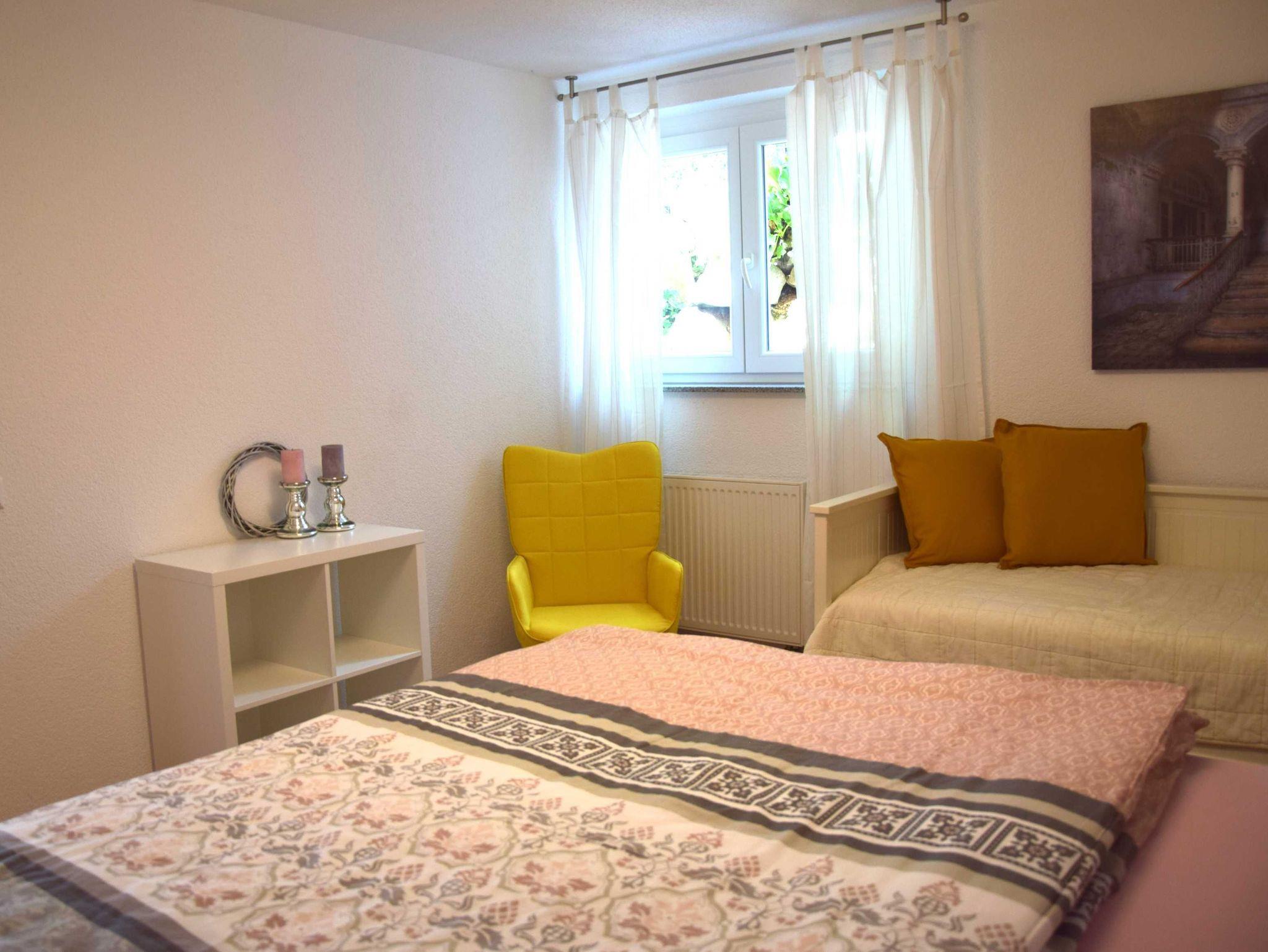Ferienwohnung mit separatem Eingang in einem Einfamilienhaus, ruhig gelegen, mit Blick ins Grüne. Kostenlos parken direkt vor dem Eingang, überdachter Freisitz, wo sie gemütlich Frühstucken oder den Urlaubstag ausklingen können. Sauna befindet sich im Objekt, jedoch nicht in der Ferienwohnung.