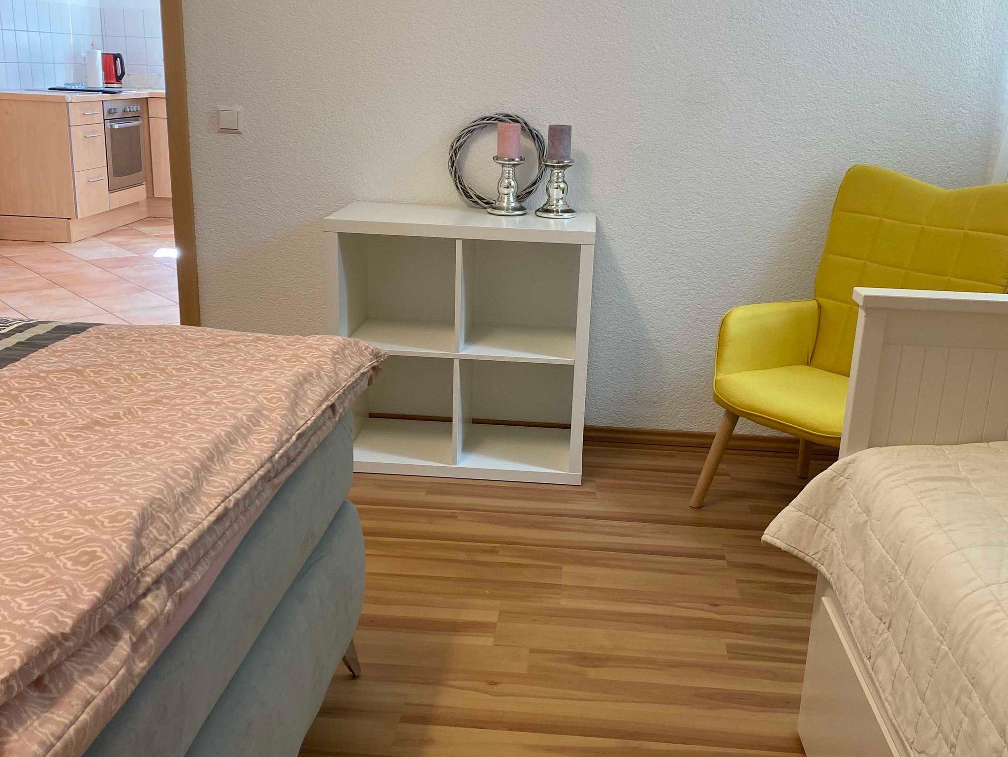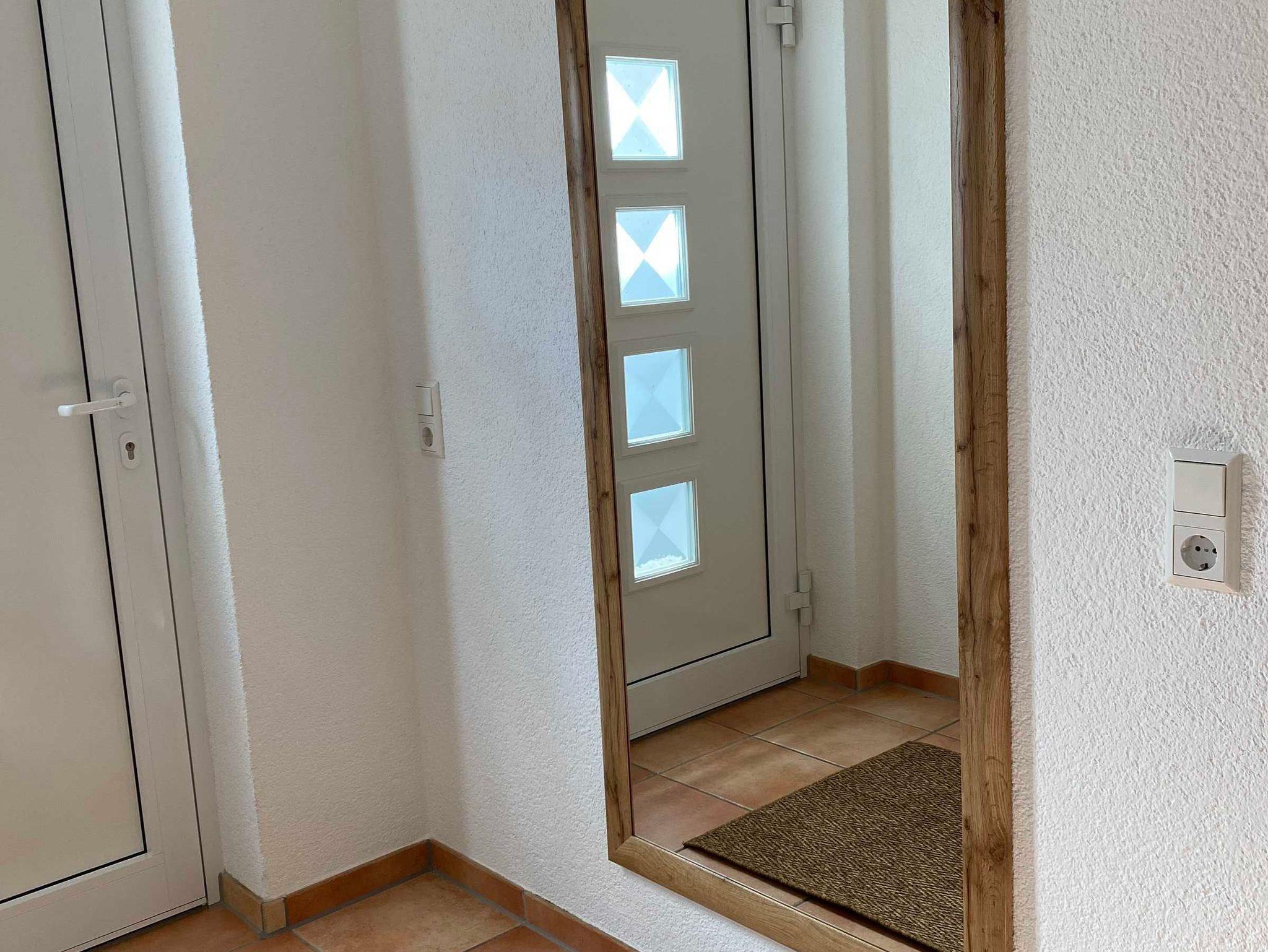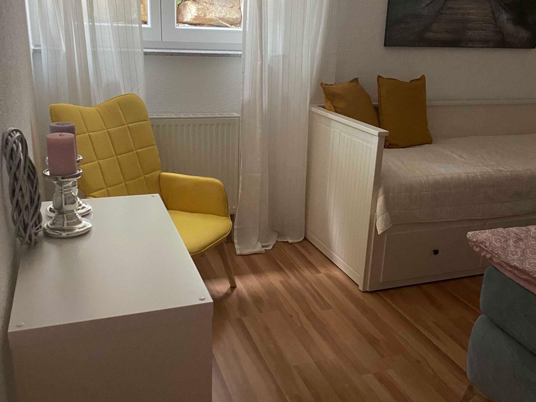 Ferienwohnung mit separatem Eingang in einem Einfamilienhaus, ruhig gelegen, mit Blick ins Grüne. Kostenlos parken direkt vor dem Eingang, überdachter Freisitz, wo sie gemütlich Frühstucken oder den Urlaubstag ausklingen können. Sauna befindet sich im Objekt, jedoch nicht in der Ferienwohnung.