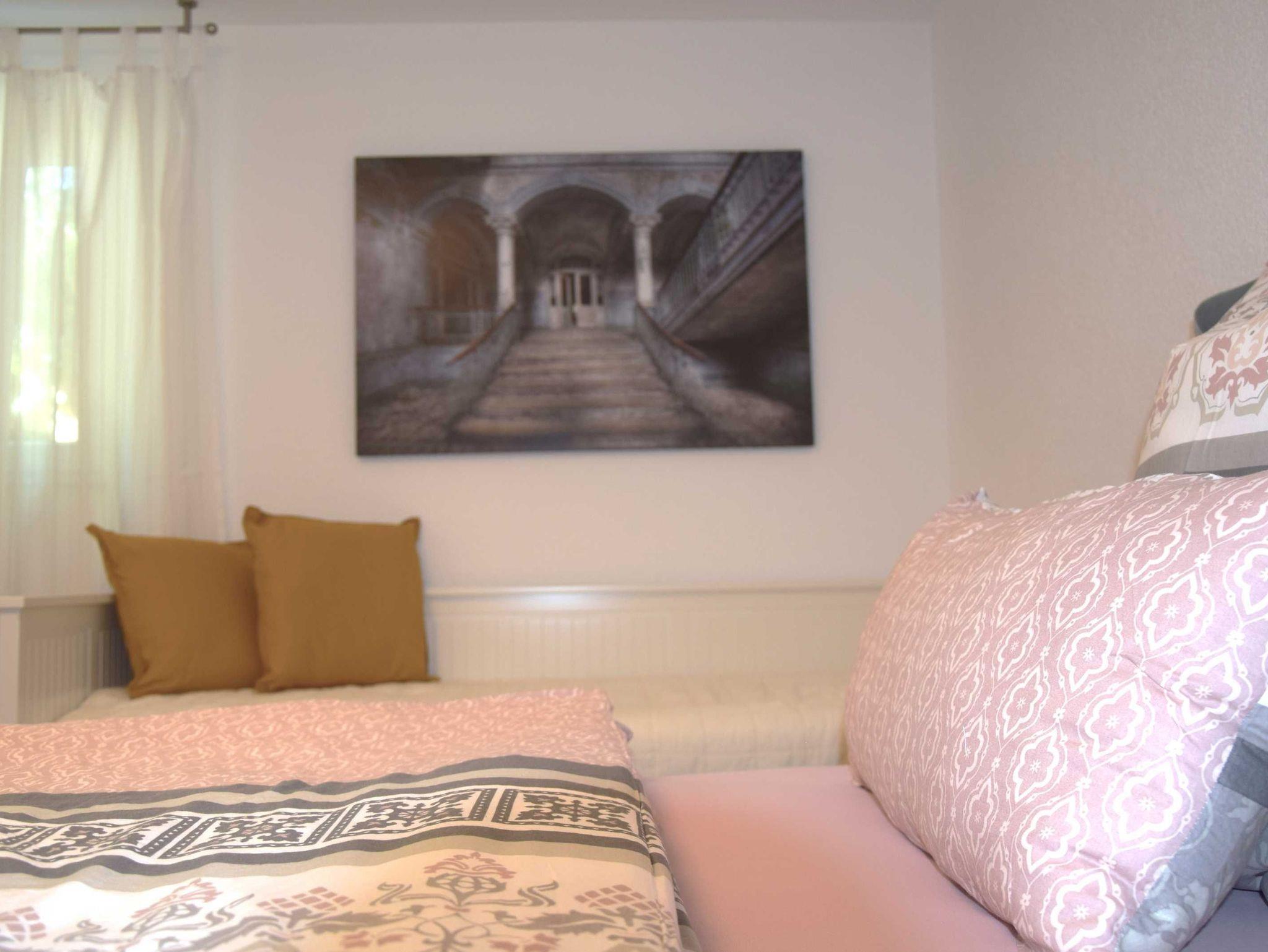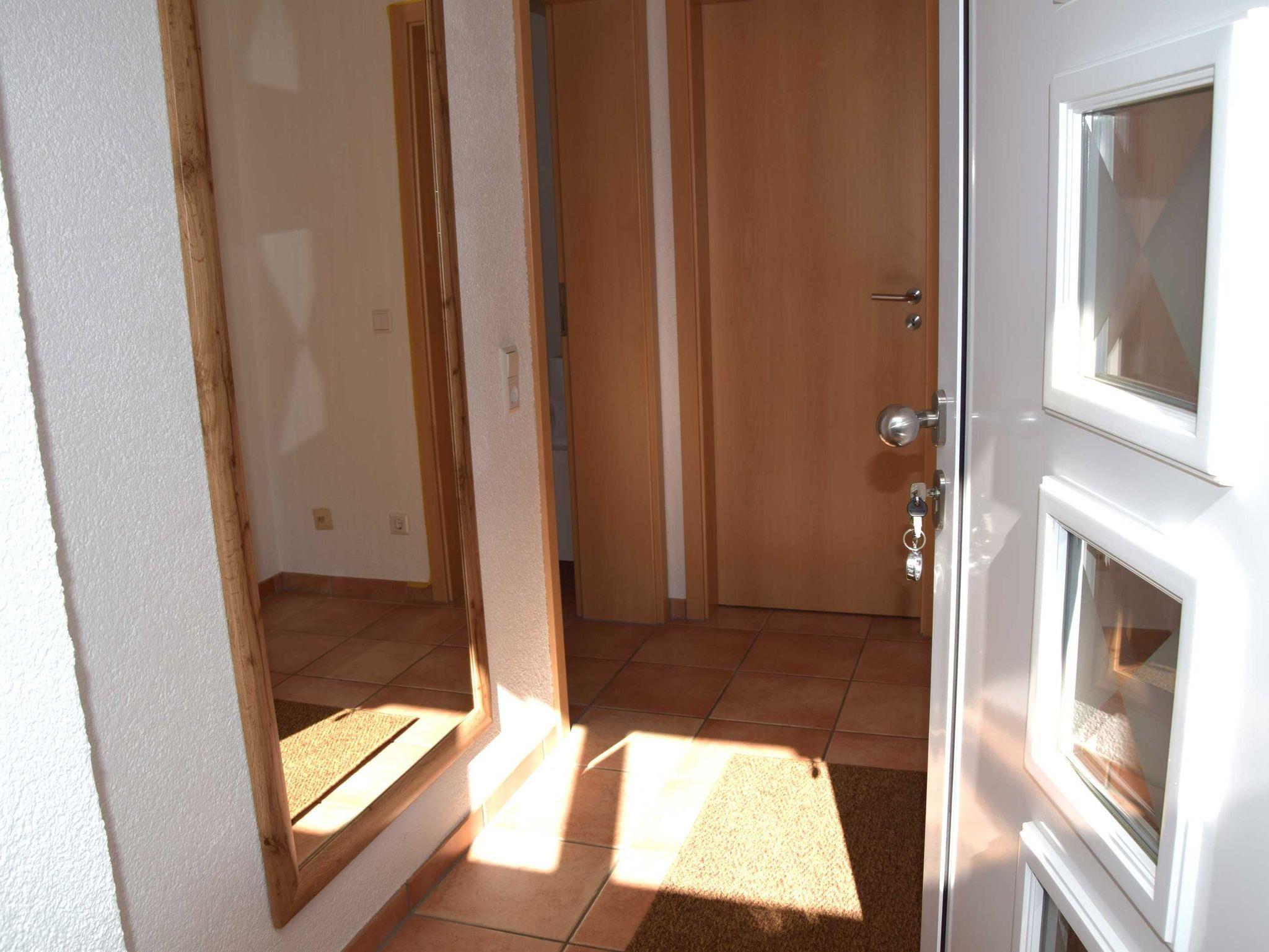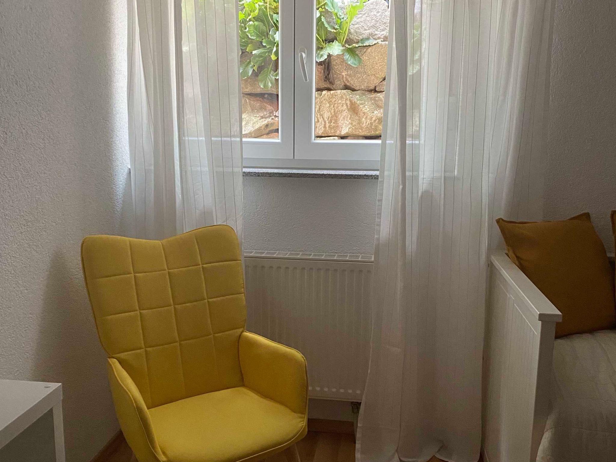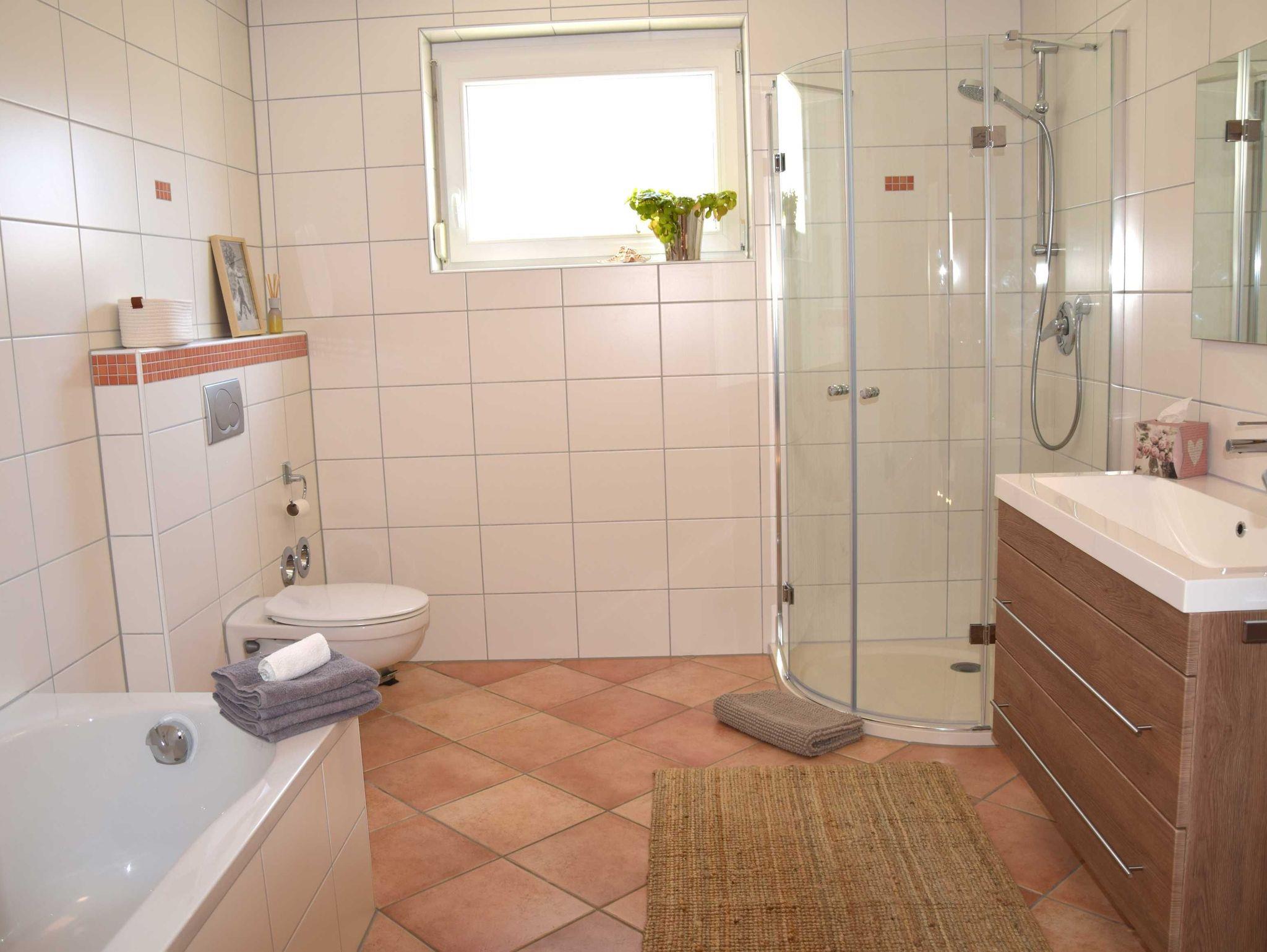 Ferienwohnung mit separatem Eingang in einem Einfamilienhaus, ruhig gelegen, mit Blick ins Grüne. Kostenlos parken direkt vor dem Eingang, überdachter Freisitz, wo sie gemütlich Frühstucken oder den Urlaubstag ausklingen können. Sauna befindet sich im Objekt, jedoch nicht in der Ferienwohnung.