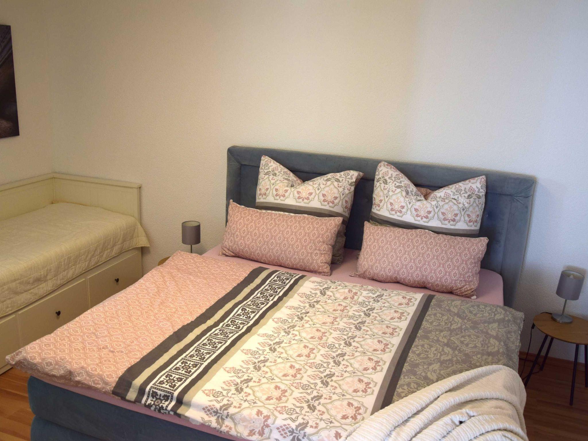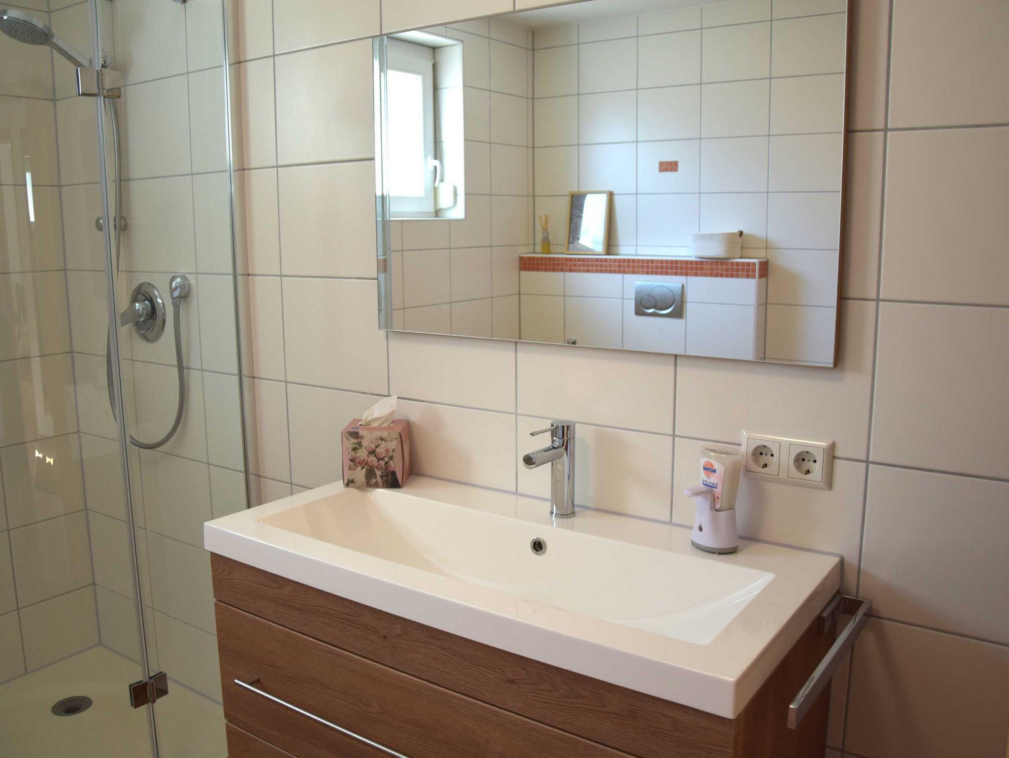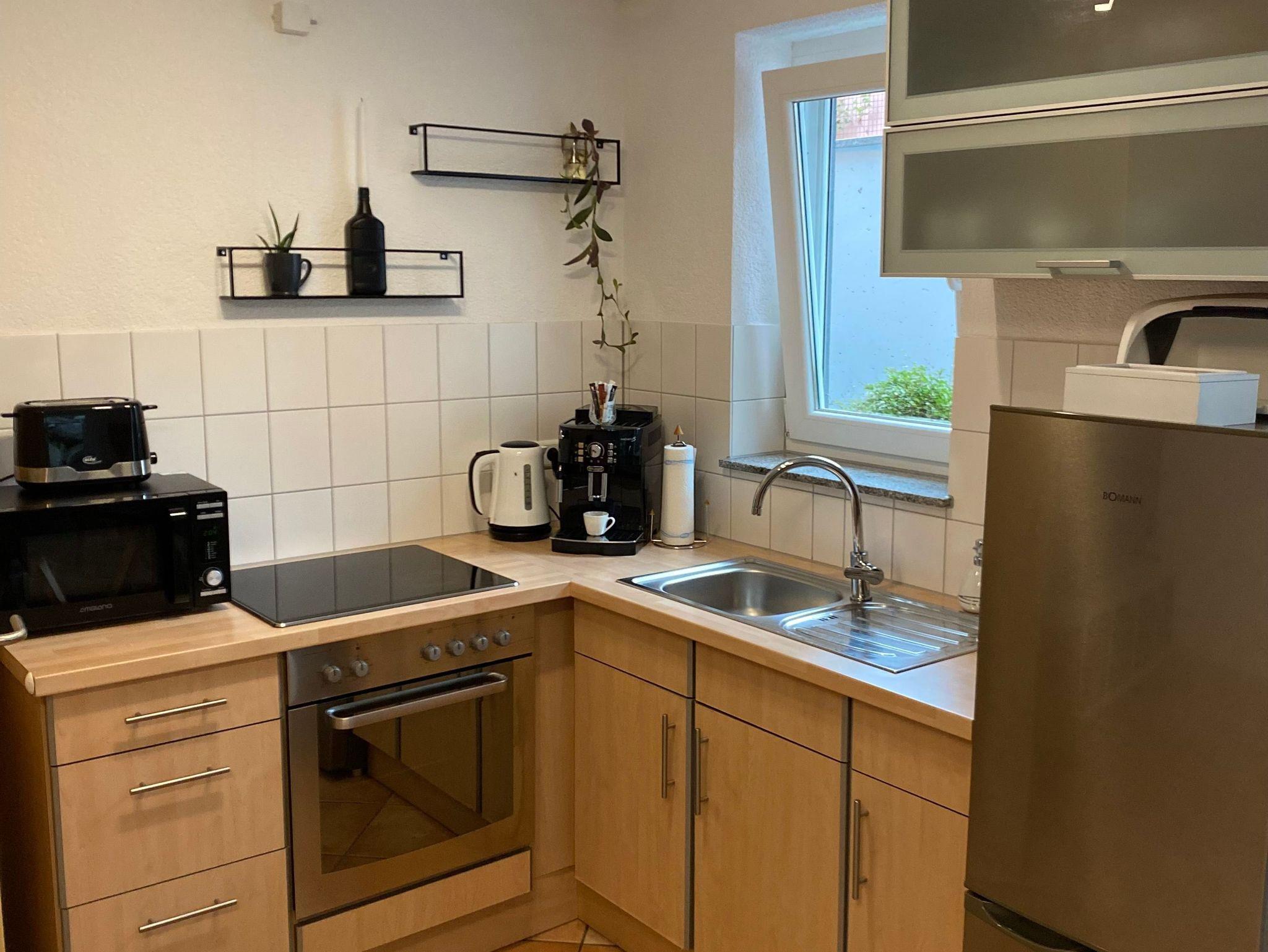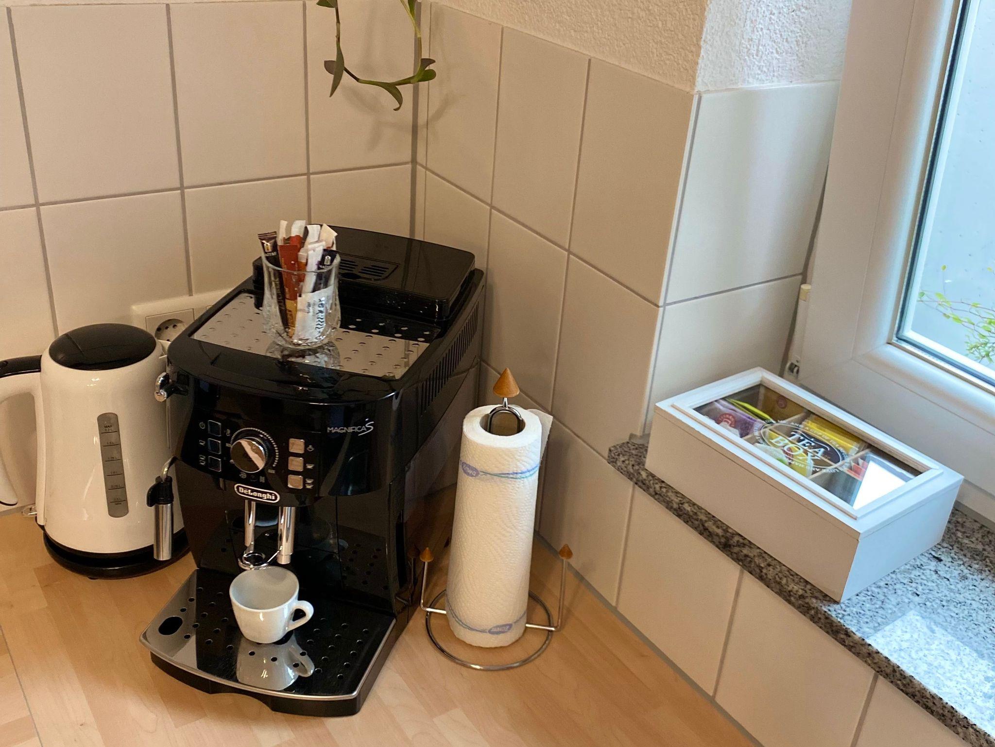 Unsere Ferienwohnung hat eine sehr gut ausgestattete Küche mit Wasserkocher, Mikrowelle, Toaster, Kaffeevollautomat mit Bohnen. Eine kleine Auswahl an Tee, sowie eine Erstausstattung an Gewürze. Essbereich für bis zu 6 Personen, ein Smart TV (65 Zoll), Schlafsofa für 2 Personen. Ein Schlafzimmer mit einem King Size Bett (180x200), weiteres Bett (80x200) mit Auszug auf 160x200. Kinder bis 2 Jahre Schlafen im Elternbett. Es besteht eine Möglichkeit ein Reisebabybett mitzubringen. Bad mit Dusche, Badewanne, Hand- und Duschtücher, Handseife, Föhn. Eine großzügige Garderobe mit Abstellmöglichkeit für Koffer.