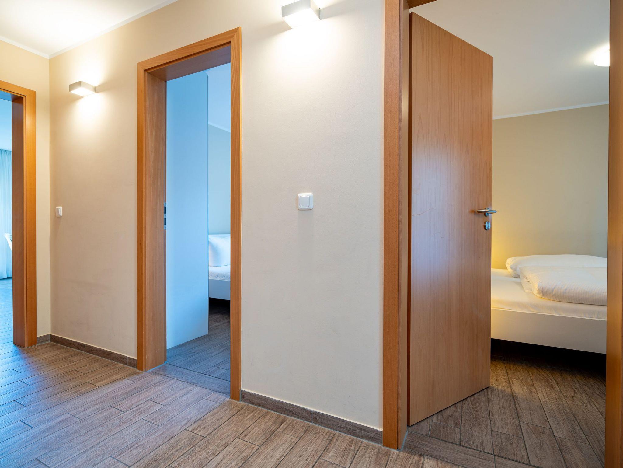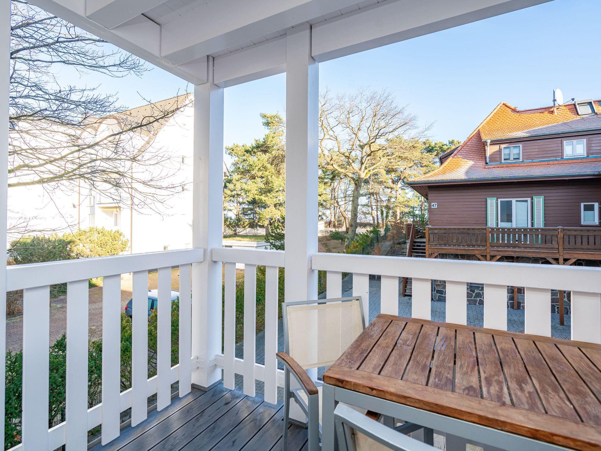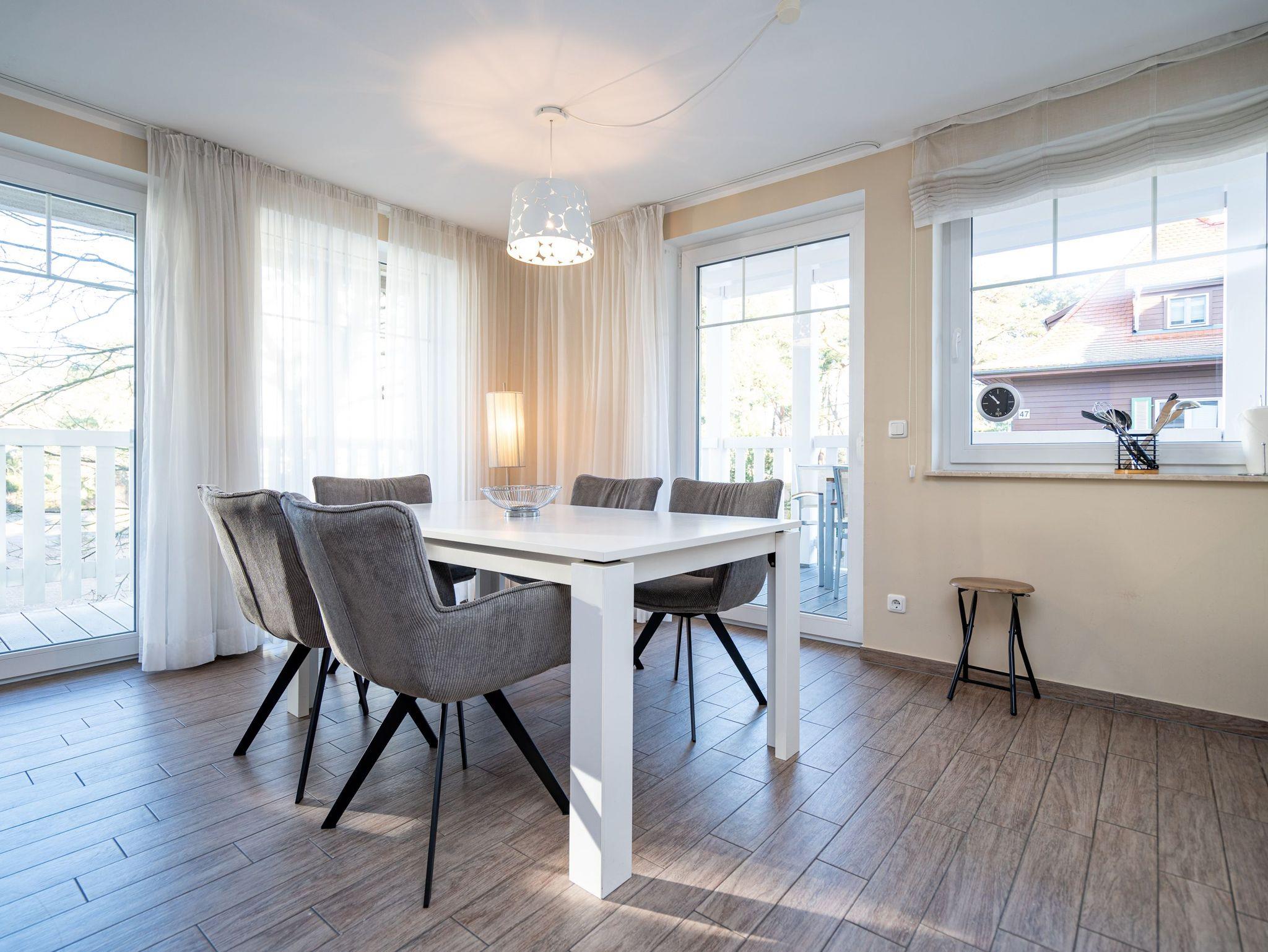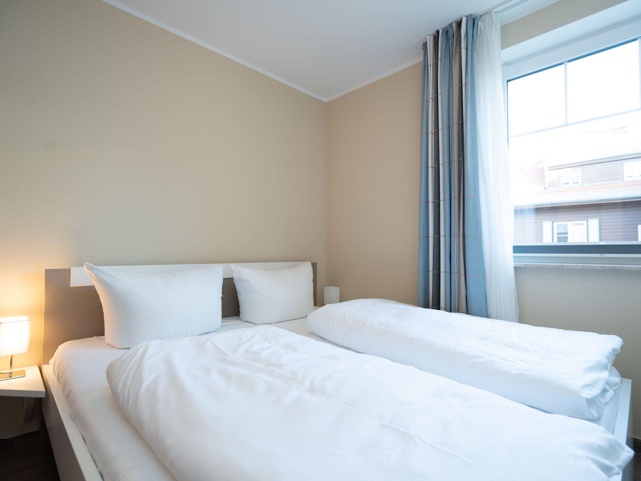 Idyllisch, von viel Grün umgeben und nur einen Steinwurf vom Strand und der Ostsee entfernt, wartet das 61 Quadratmeter große Appartement 06 im ersten Obergeschoss nur darauf, Ihnen den Urlaub mit seiner hellen und freundlichen Atmosphäre zu verschönern und dafür zu sorgen, dass Sie inmitten einer Wohlfühlumgebung neue Energie tanken können. Die Wohnung bietet mit ihren zwei Schlafzimmern Platz für 4 Personen und ein Kleinkind bis 3 Jahre (im Kinderreisebett; eine zusätzliche Matratze [&] Bettzeug müssen mitgebracht werden). Gleich auf drei Balkonen können Sie die frische Ostseeluft spüren und einatmen, sich gemütlich in die Sonne setzen und dem Meeresrauschen lauschen. Das große Wohn-Esszimmer eignet sich bestens zum Runterkommen, Entspannen, Kochen und Genießen. Von der bequemen Couch aus oder dem gemütlichen Sessel haben Sie Blick auf den echten Kaminofen und einen Flat-TV. Die zum Wohnzimmer hin offene Küchenzeile ist mit hochwertigen Geräten und feinem Porzellan ausgestattet. Der Esstisch mit den bequemen Stühlen lädt zum Zusammenkommen und Verweilen ein. Auf Wunsch kann ein Kinderhochstuhl (gegen Aufpreis) bereitgestellt werden. Beide Schlafzimmer sind hell und gemütlich mit jeweils einem großen Doppelbett eingerichtet. Warme Beige- und Brauntöne bringen Sie in eine entspannte Stimmung. Die Schränke bieten viel Ablagefläche. Das geräumige Bad verfügt über eine Dusche, WC und eine Waschmaschine. Außerdem gibt es in der Wohnung noch ein zusätzliches Gäste-WC. Ein Tag am Meer: Lockt das Wetter ans Wasser steht als besonderes Bonbon am Strand kostenfrei ein Strandkorb für Sie zur Verfügung. Genießen Sie Ihre Tage in diesem schönen Dünendomizil von der ersten Minute an. Handtücher liegen für Sie bereit und die Betten sind bei Anreise bezogen. Der WLAN-Anschluss ist kostenfrei nutzbar.