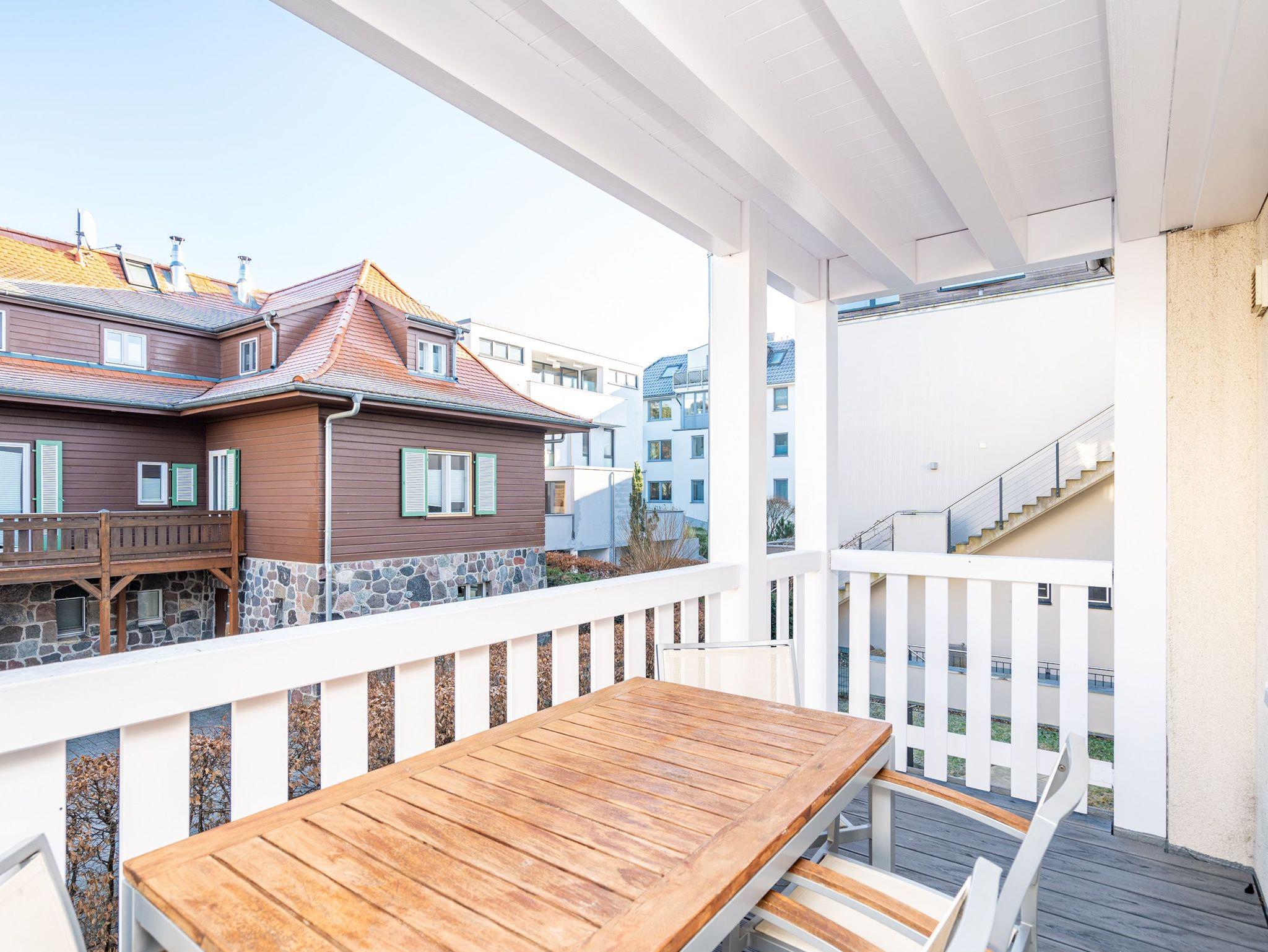 Idyllisches Appartement nahe Ostsee mit Kamin, drei Balkonen und kostenfreiem Strandkorb für erholsame Urlaubstage.