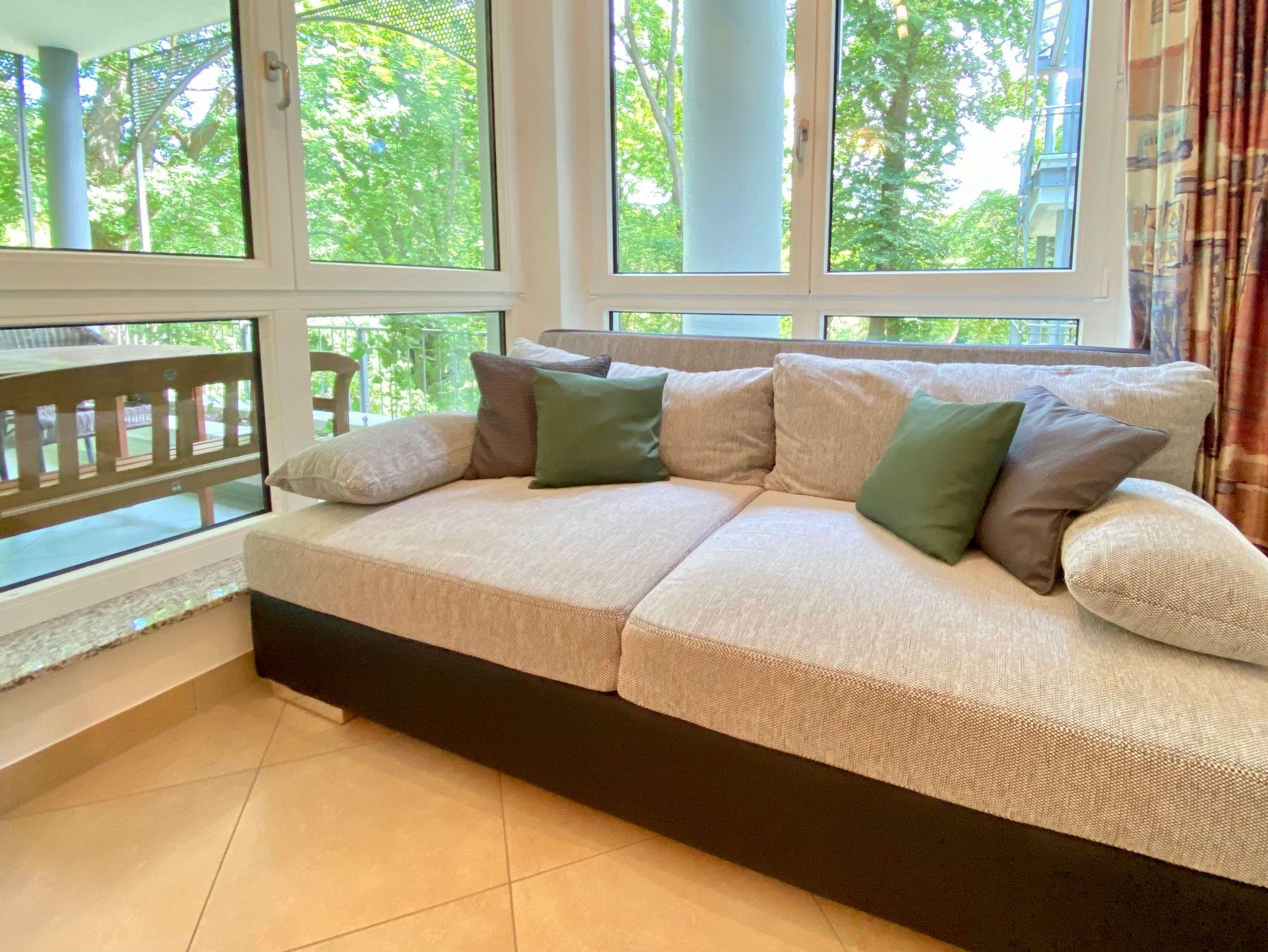 Exklusive Ferienwohnung im Villenviertel Heringsdorfs mit direktem Strandzugang und zwei Balkonen.