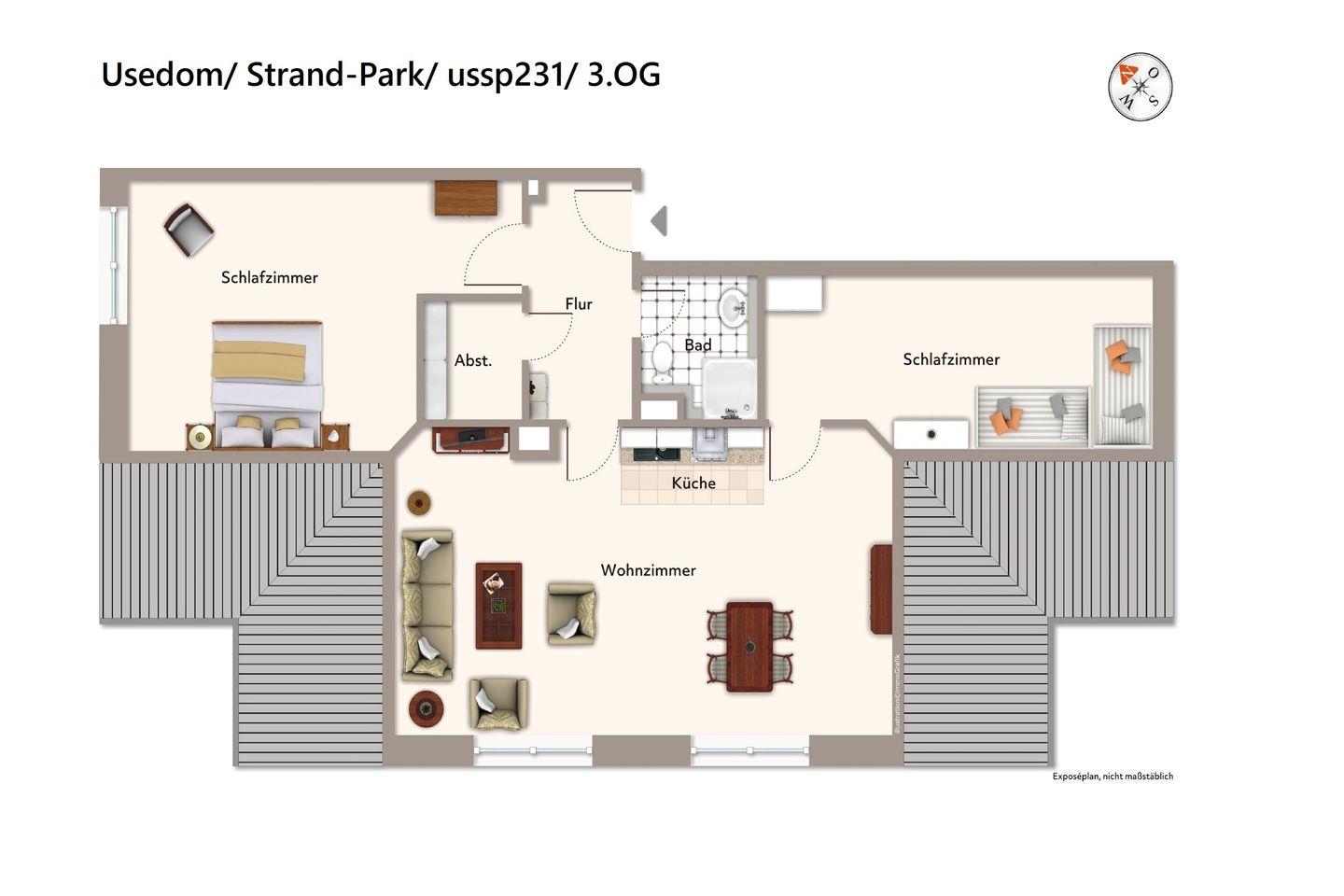Der „Strand-Park“ hat einen direkten Zugang zur Strandpromenade von Heringsdorf. Die 57 qm große 3-Zimmer-Dachwohnung ist für 2 Erwachsene und 2 Kinder ideal geeignet um einen wundervollen Urlaub an der Ostsee zu verbringen.