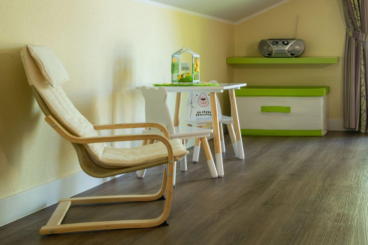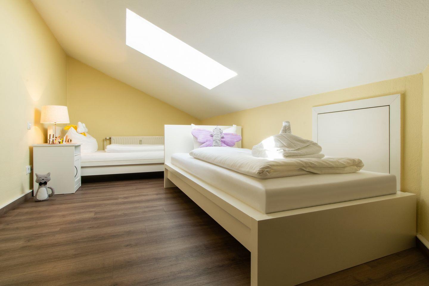 Auf Wunsch stellen wir euch ein Kinderbett und einen Hochstuhl gegen Entgelt zur Verfügung. Bitte beachtet die charakteristischen Deckenschrägen der Dachwohnung. Das Kinderschlafzimmer hat eine niedrigere Deckenhöhe und der Zugang hat ein Höhenmaß von 1,40 m.