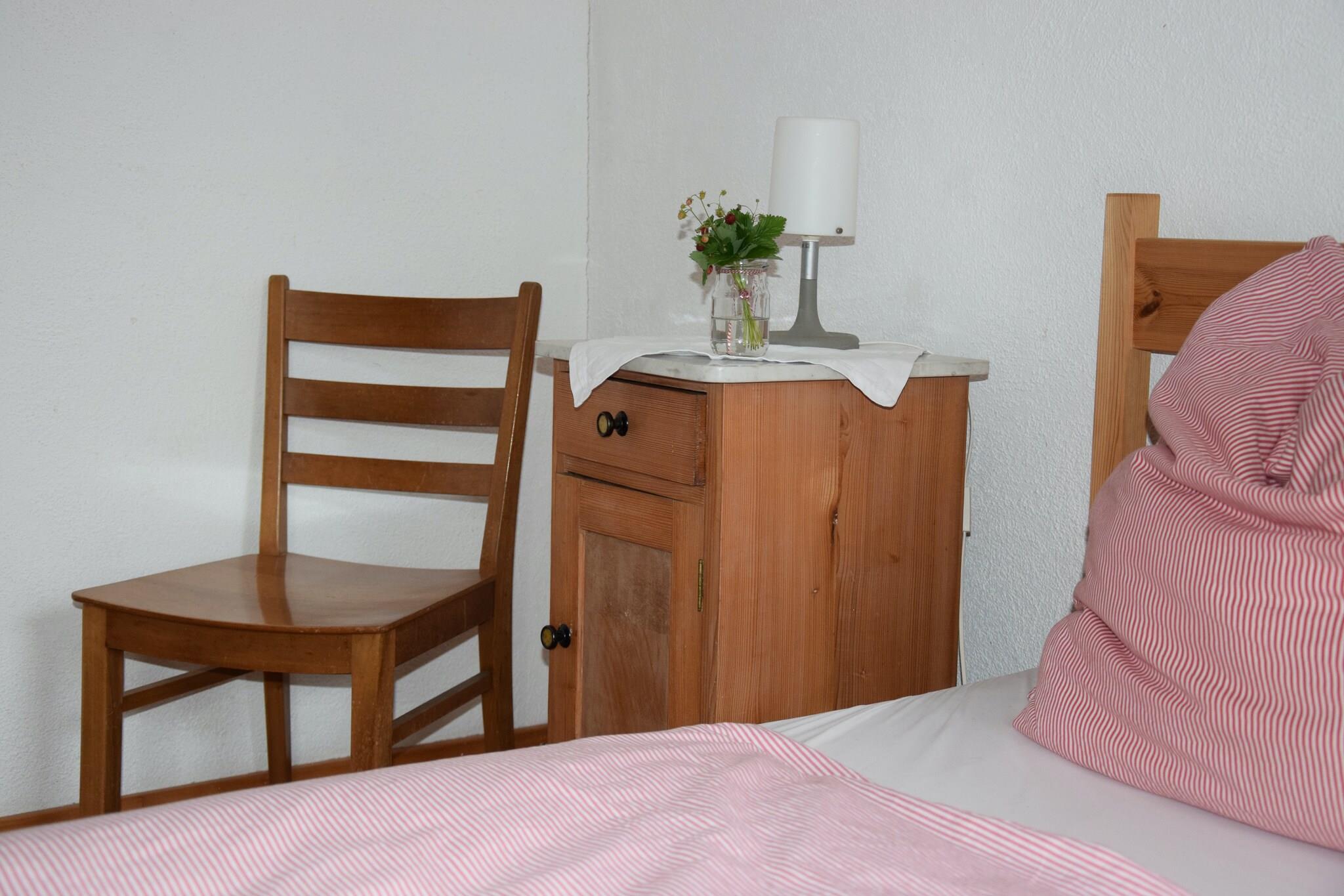 Parterre: (Eingang, Wohnzimmer, offene Küche(Toaster, Kochherd(4 Kochplatten, elektrisch), Kaffeemaschine(Filter), Backofen, Mikrowelle, Spülmaschine, Kühl-/Gefrierkombination), Wohn/Esszimmer(Doppelschlafcouch, TV(Flatscreen, Satellit), Radio), Schlafzimmer(Etagenbett), Schlafzimmer(2x Einzelbett(90 x 200 cm)), Badezimmer(Badewanne, Dusche, Waschbecken, Toilette), Abstellraum) Heizung(Zentral), Garten(Gemeinschaftliche Nutzung mit dem Eigentümer, 400 m2), Fahrradabstellraum, Gartenmöbel, Grill(Holzkohle), Parkplatz, Trampolin, Sonnenschirm, Tischtennisplatte, Fußballtor, Kinderbett, Bügelbrett, Bügeleisen