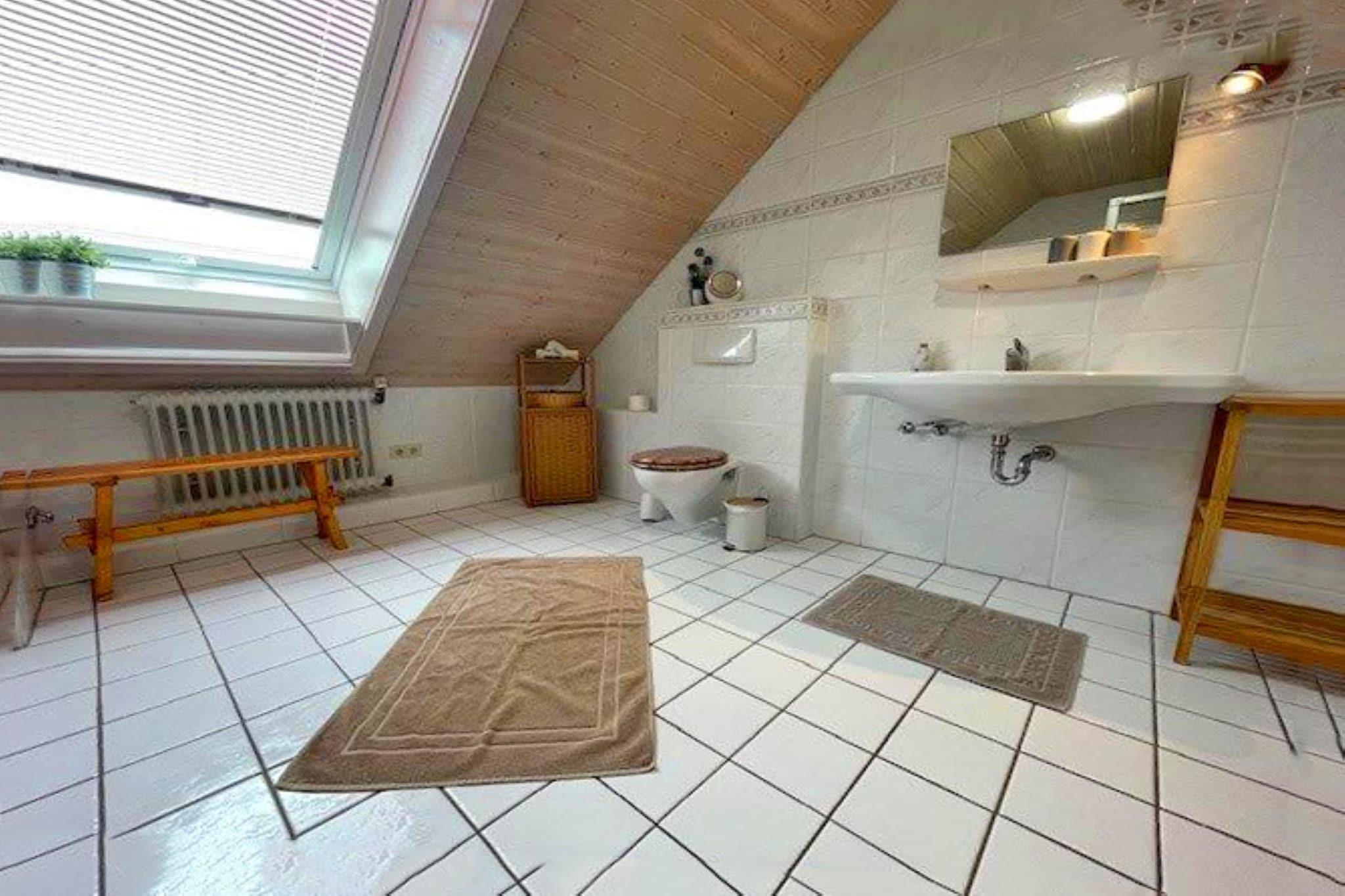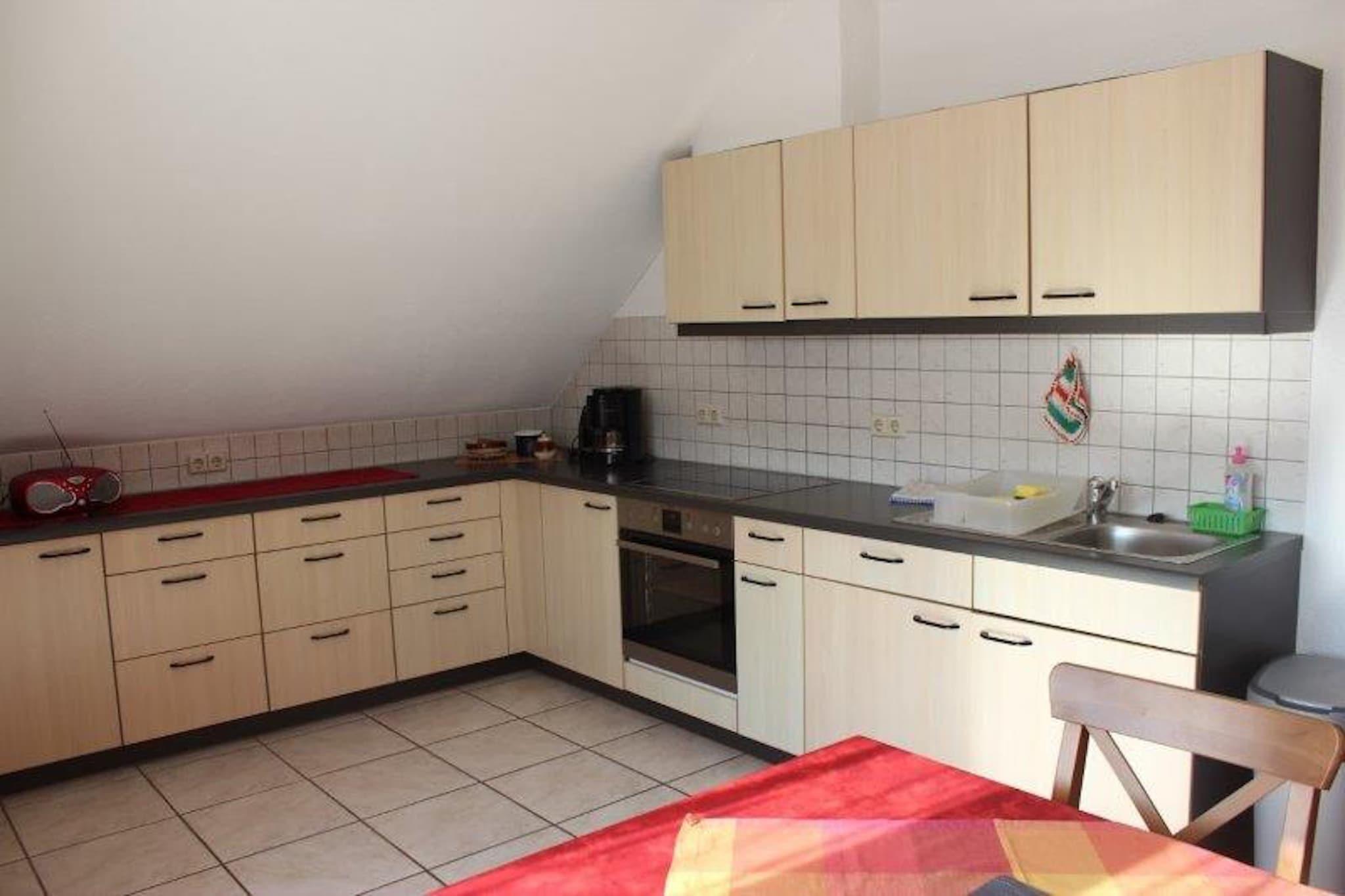 In der 1. Etage: (Wohnzimmer(Einzelbett, TV(Satellit, digital), Radio, Stereoanlage), Küche(Esstisch, Wasserkocher, Toaster, Kochherd(Ceranfeld), Kaffeemaschine(Filter), Backofen, Mikrowelle, Kühlschrank(+ Gefrierfach)), Schlafzimmer(Doppelbett(180 x 200 cm)), Badezimmer(Badewanne, Dusche, Waschbecken, Toilette)) Trockner(Gemeinschaftliche Nutzung mit dem Eigentümer, gegen Gebühr), Balkon, Heizung(Zentral), Garten(Gemeinschaftliche Nutzung mit dem Eigentümer), Gartenmöbel, Grill(Gemeinschaftliche Nutzung mit anderen Gästen, Holzkohle), Parkplatz, Liegestühle, Sonnenschirm, Spielgeräte, Tischtennisplatte, Kinderbett, Hochstuhl
