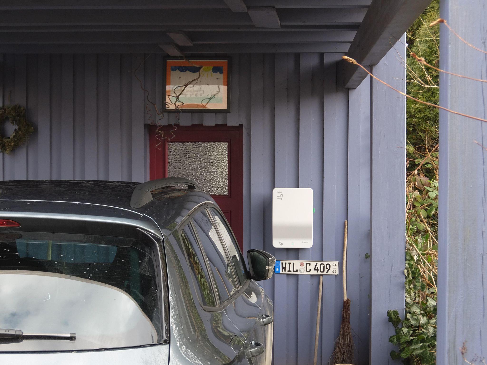 Ein bepflanztes Flachdach und eine Zisterne speichern Regenwasser. Dank einer am Haus installierten Wallbox lässt sich ihr Elektrofahrzeug schnell aufladen.
